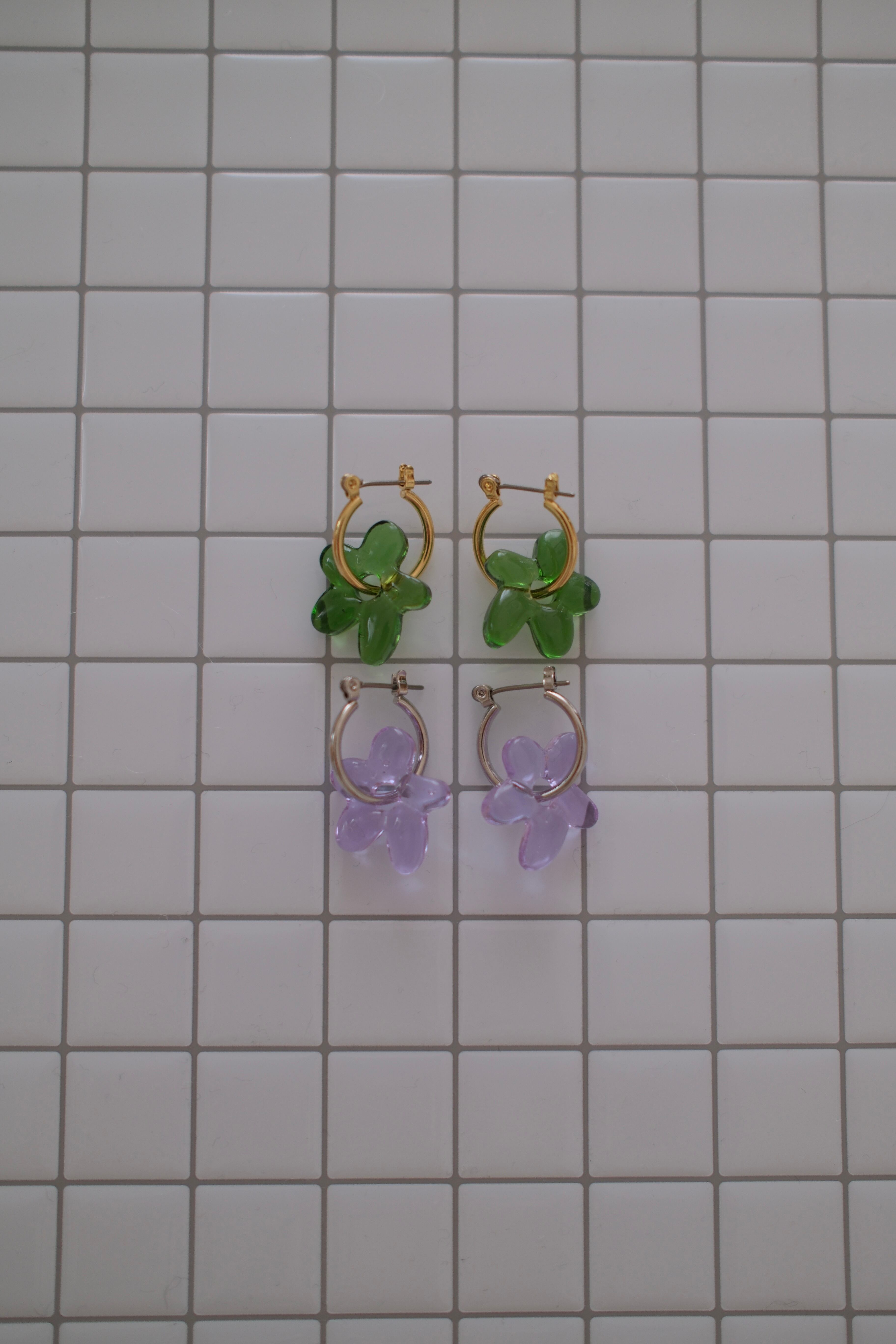 前回ご好評だったガラスでできたお花のパーツを使ったアクセサリーの新色が登場!