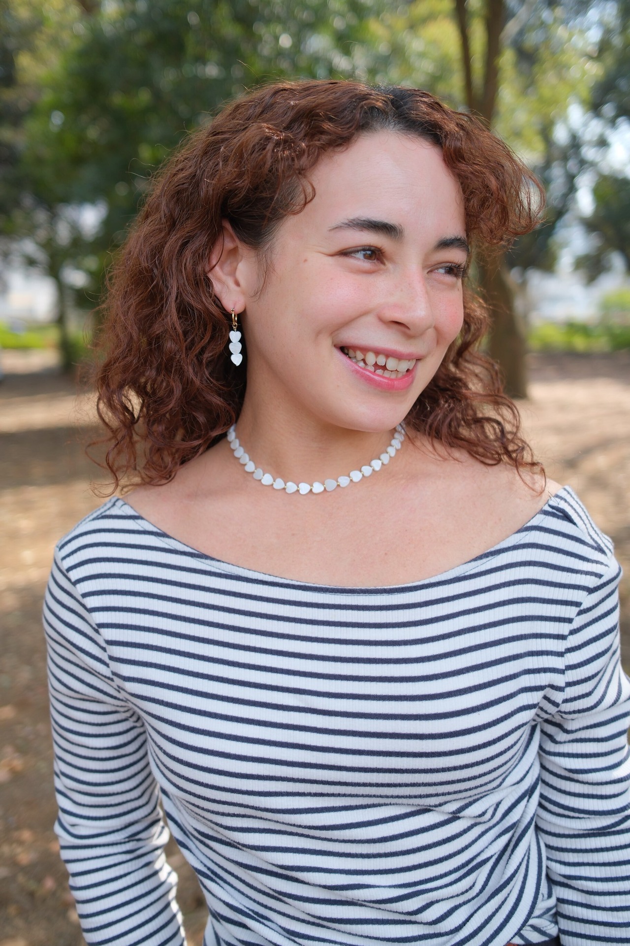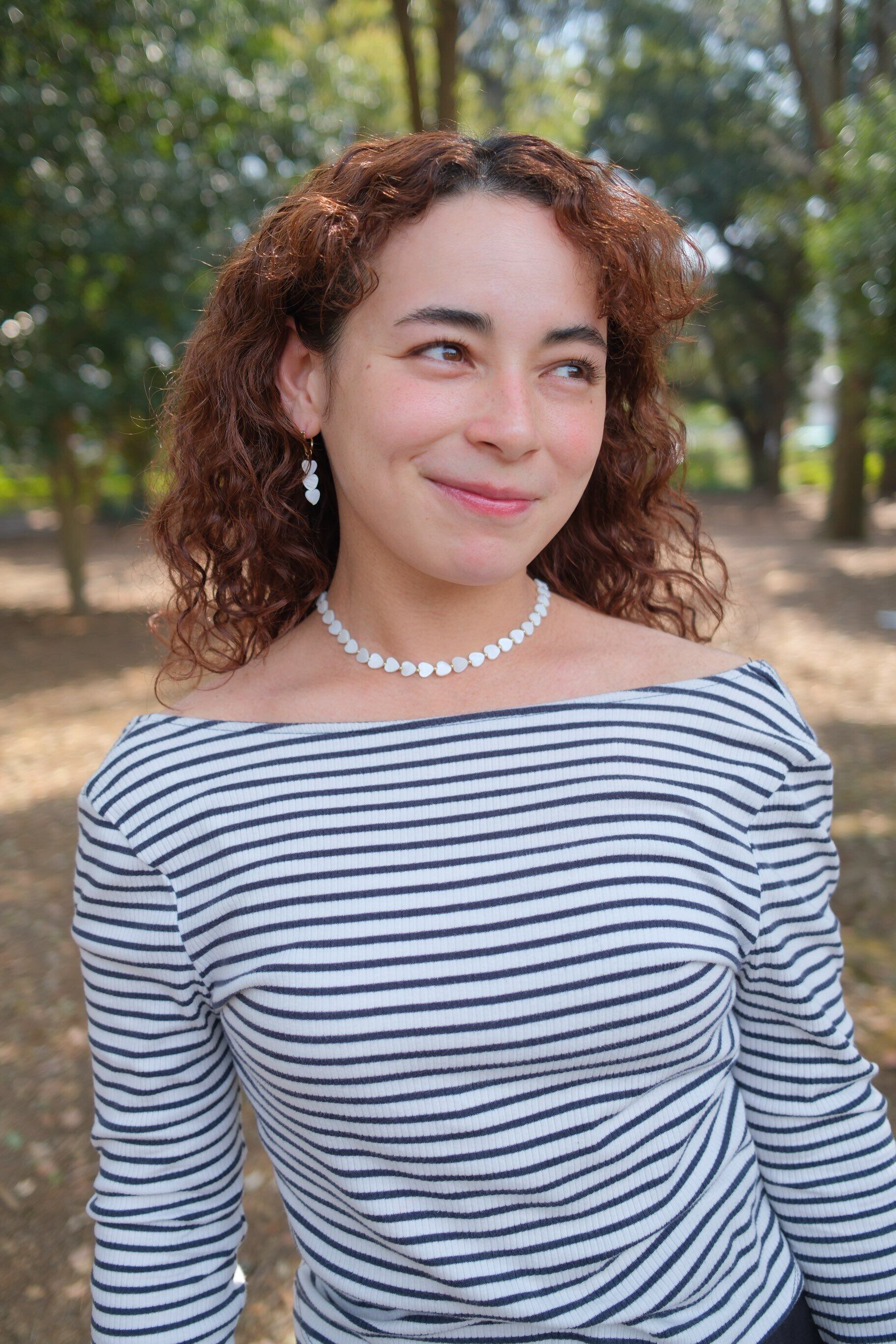 ハートのシェルパーツを使ったアクセサリー。