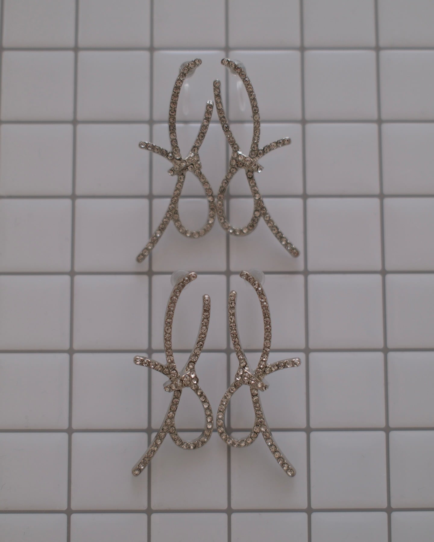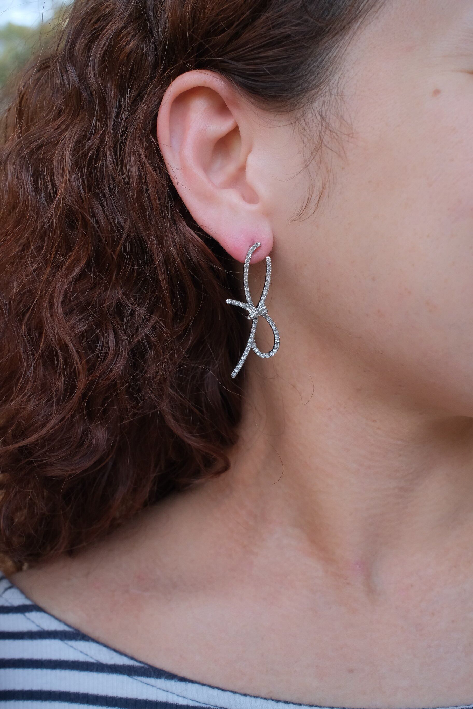 華奢なリボンモチーフに煌めくストーンを敷き詰めたエレガントなピアス。