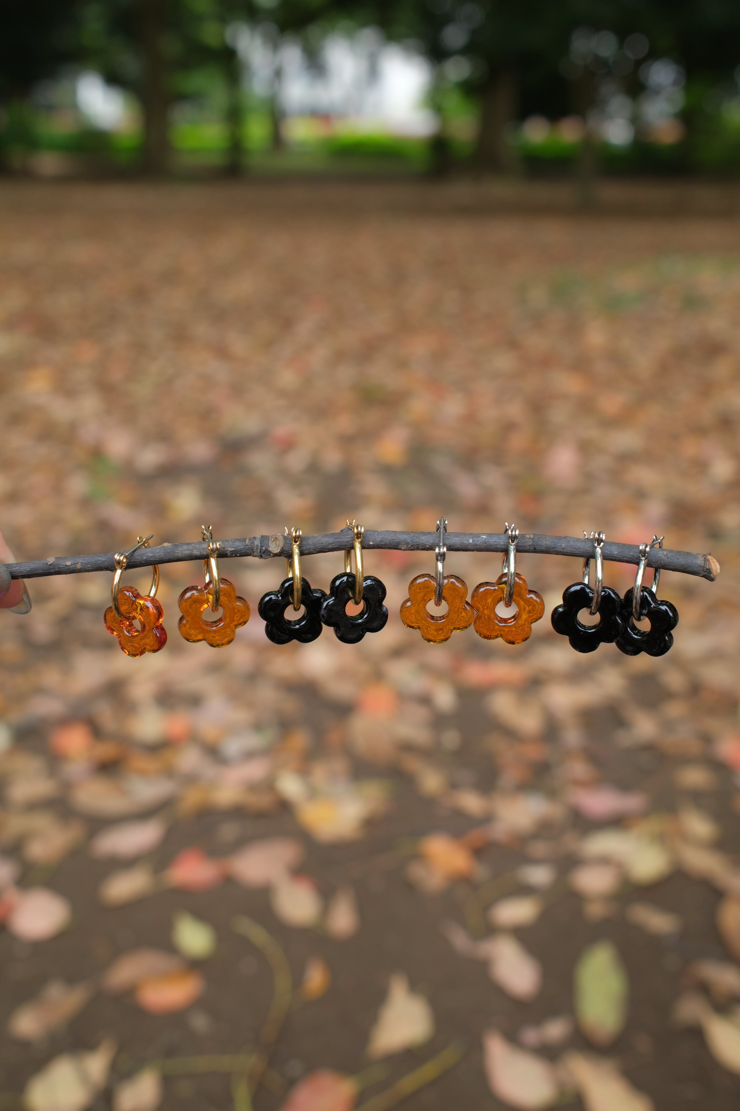 懐かしさと今っぽさが絶妙にミックスされた、レトロムード漂うフラワーモチーフのフープアクセサリー。