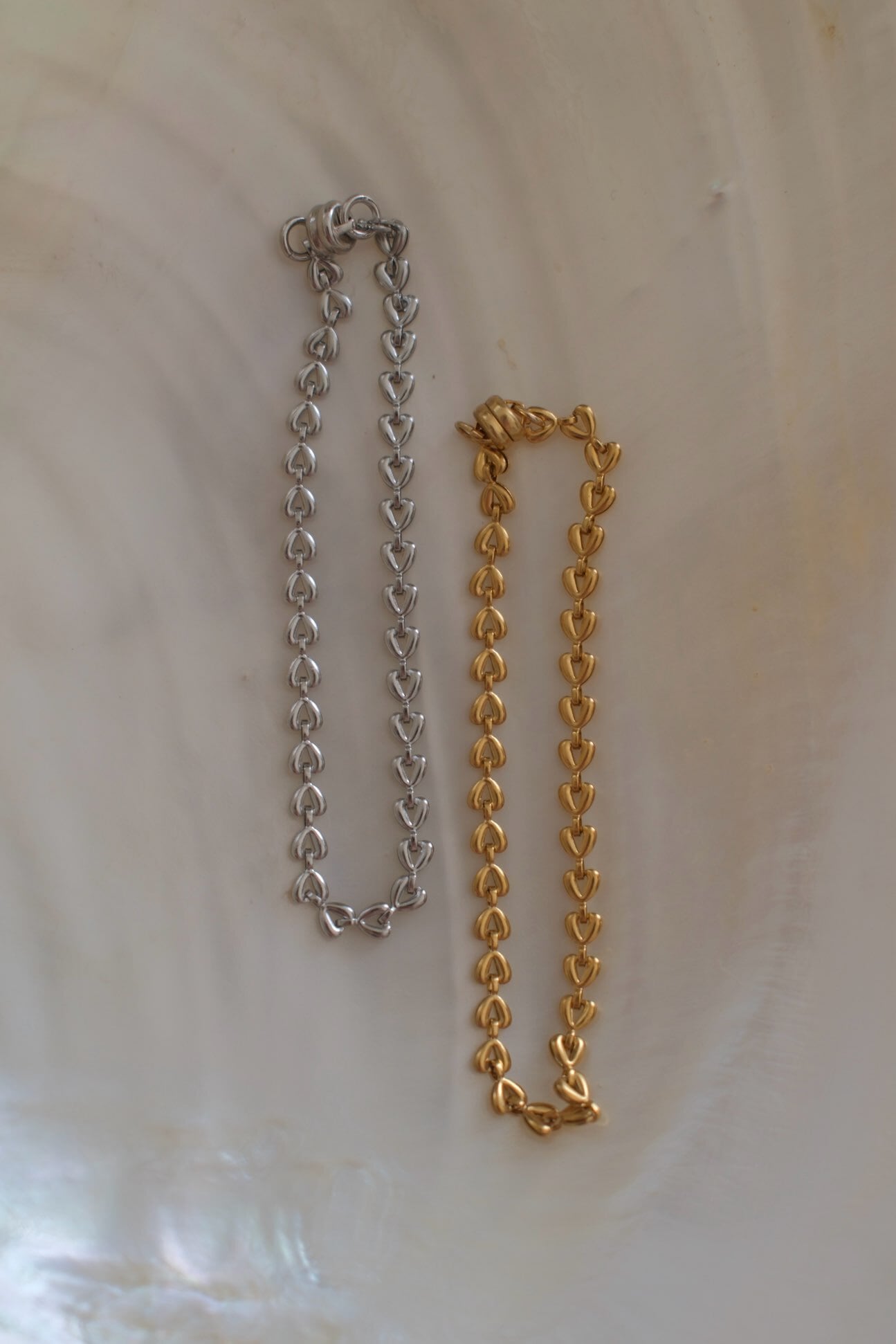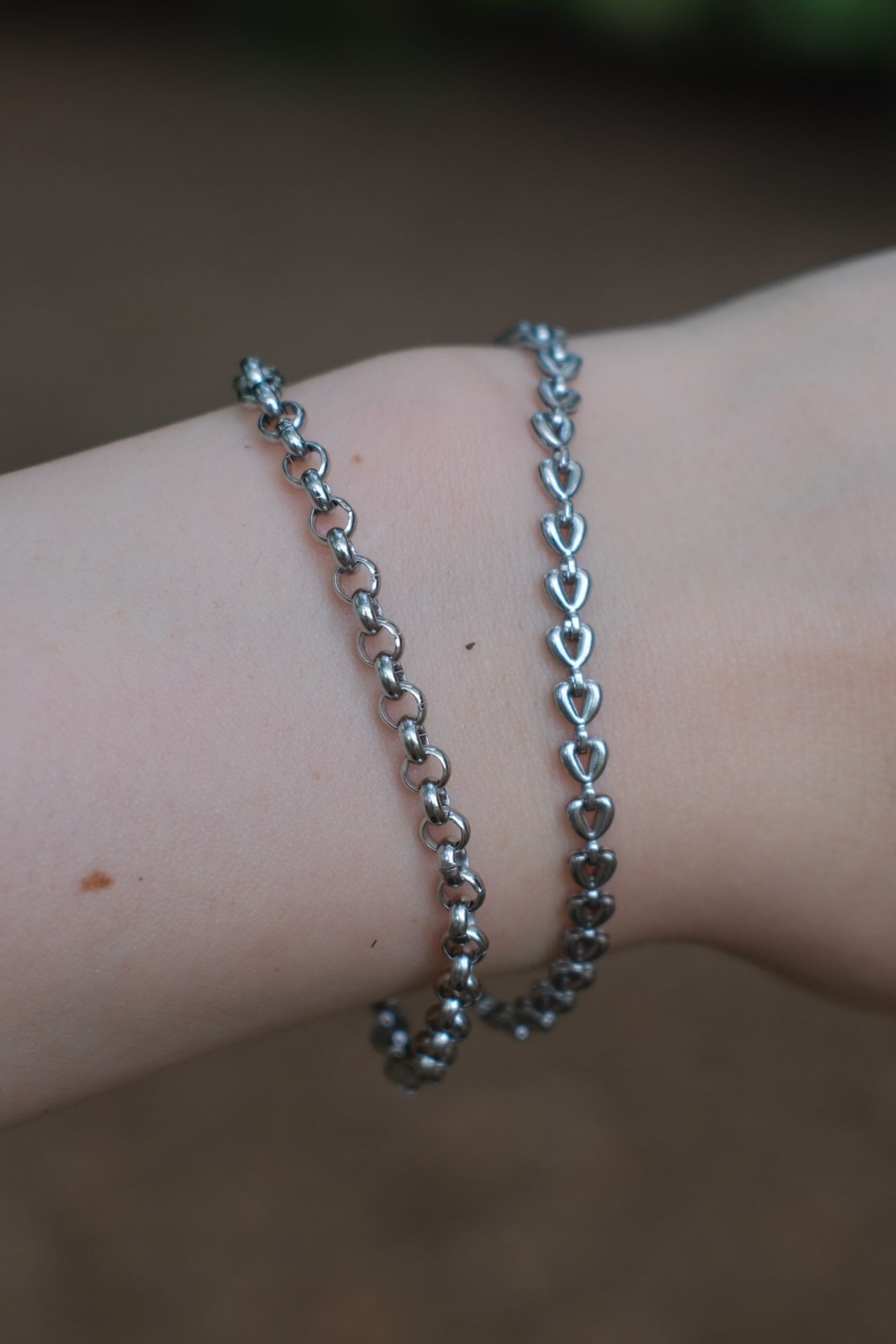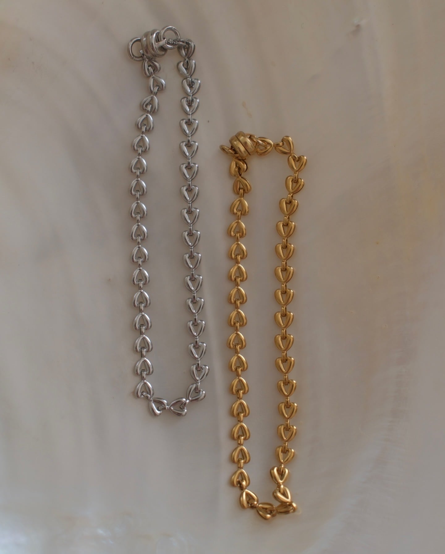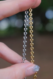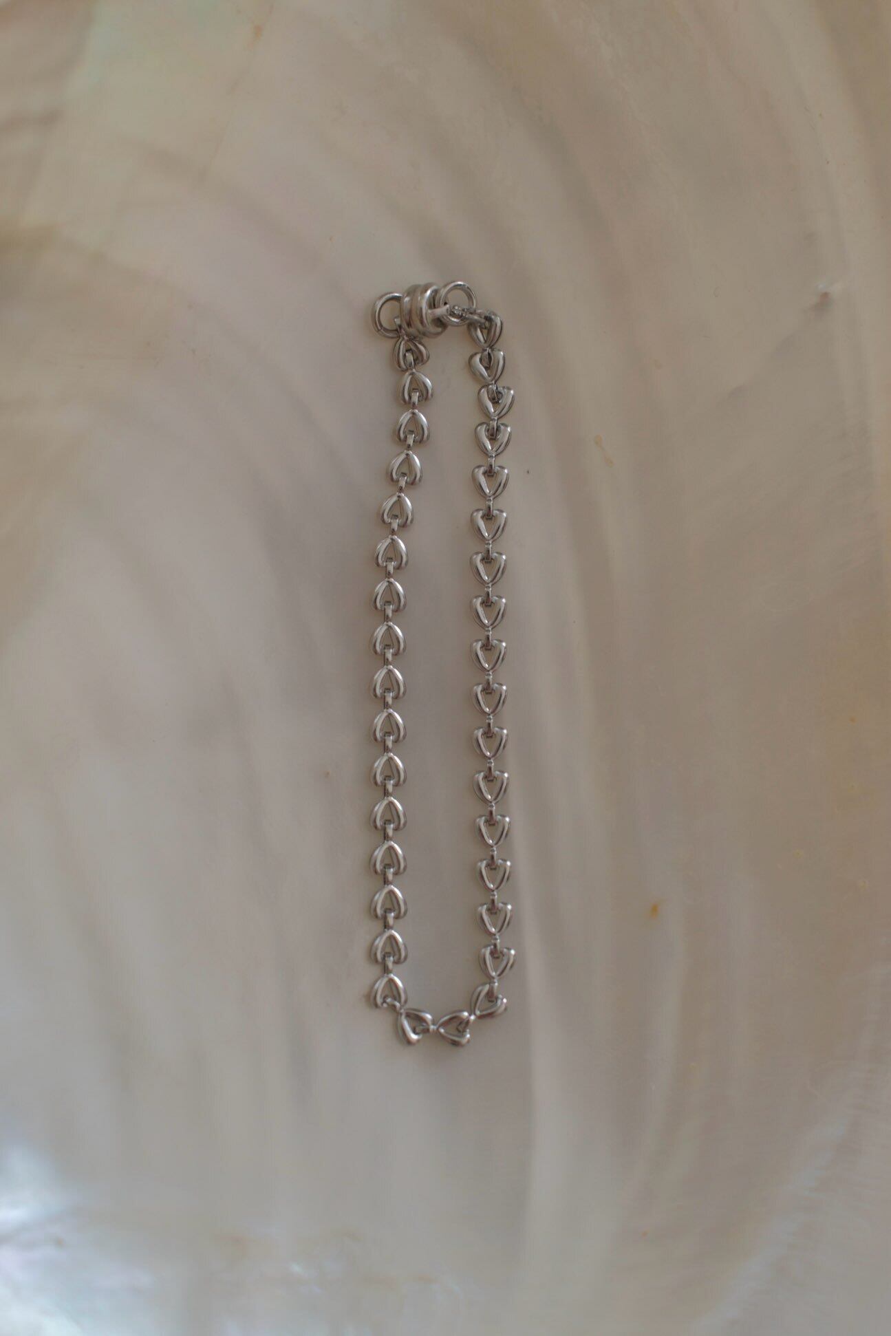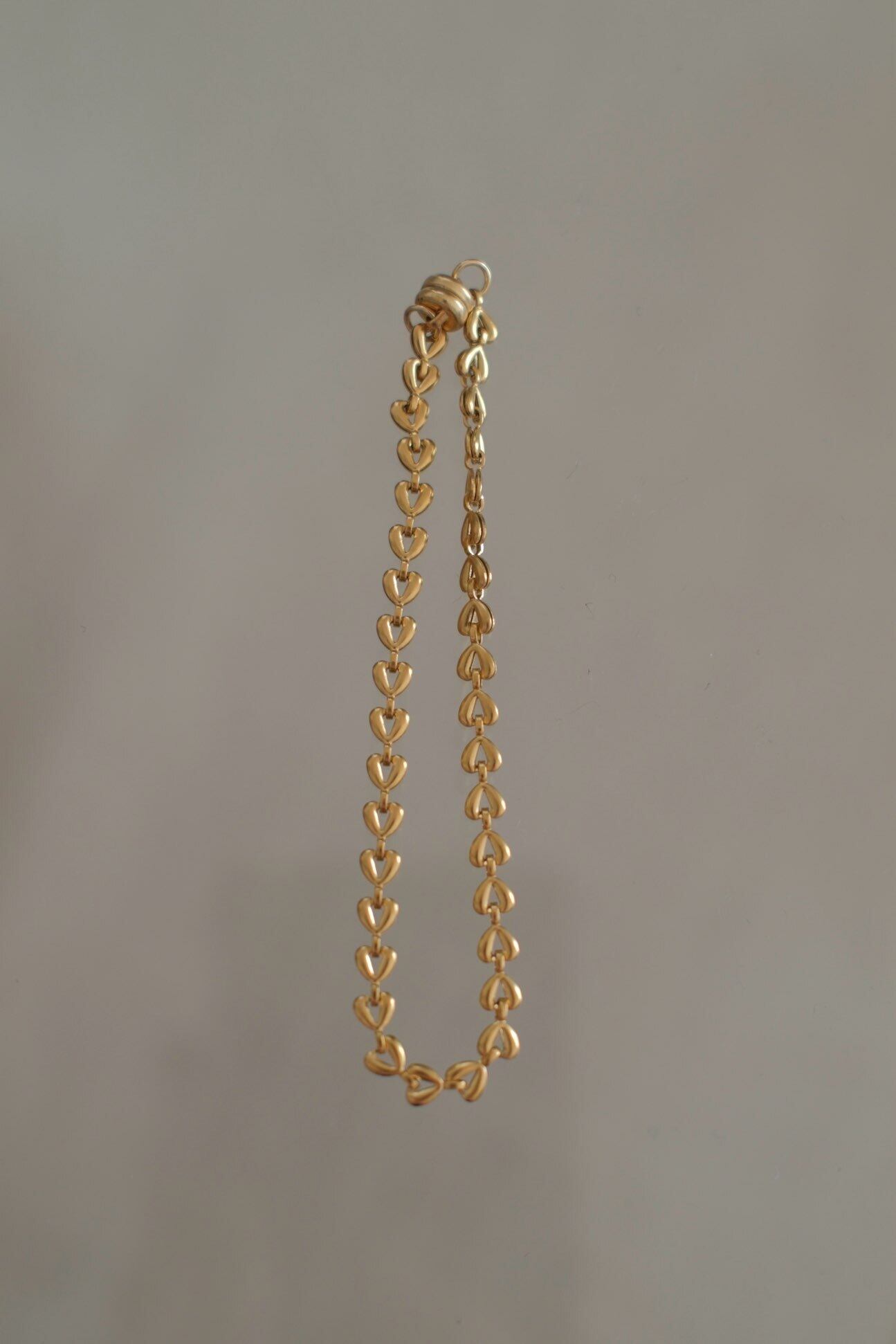 連なった小さなハートが手元でやさしく輝く、ハートチェーンブレスレット。華奢なラインが手首に馴染み、さりげなくも印象的な存在感を放ちます。甘さを抑えた大人可愛いデザインで、ひとつ着けるだけでコーディネートがぐっと垢抜けた印象に。カラーはゴールドとシルバーの2色からお選びいただけ、同シリーズのネックレスとセットで身につければ、さらに統一感のあるスタイリングが楽しめます。