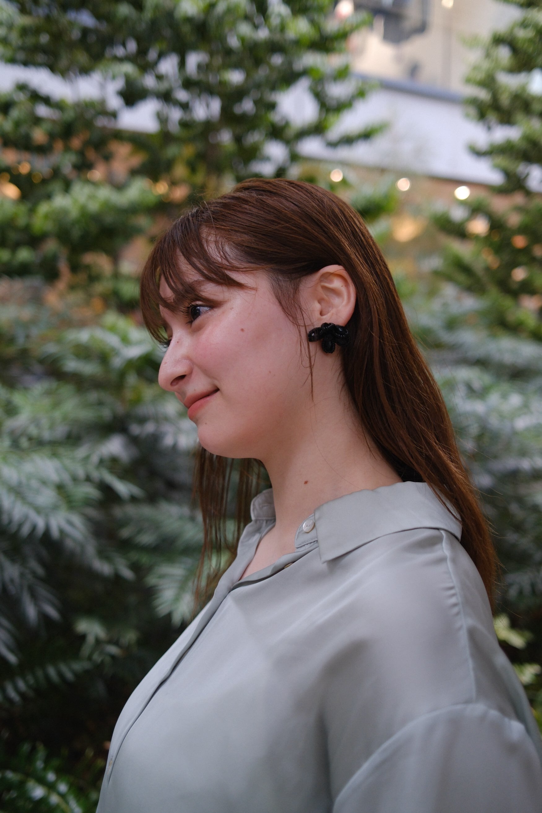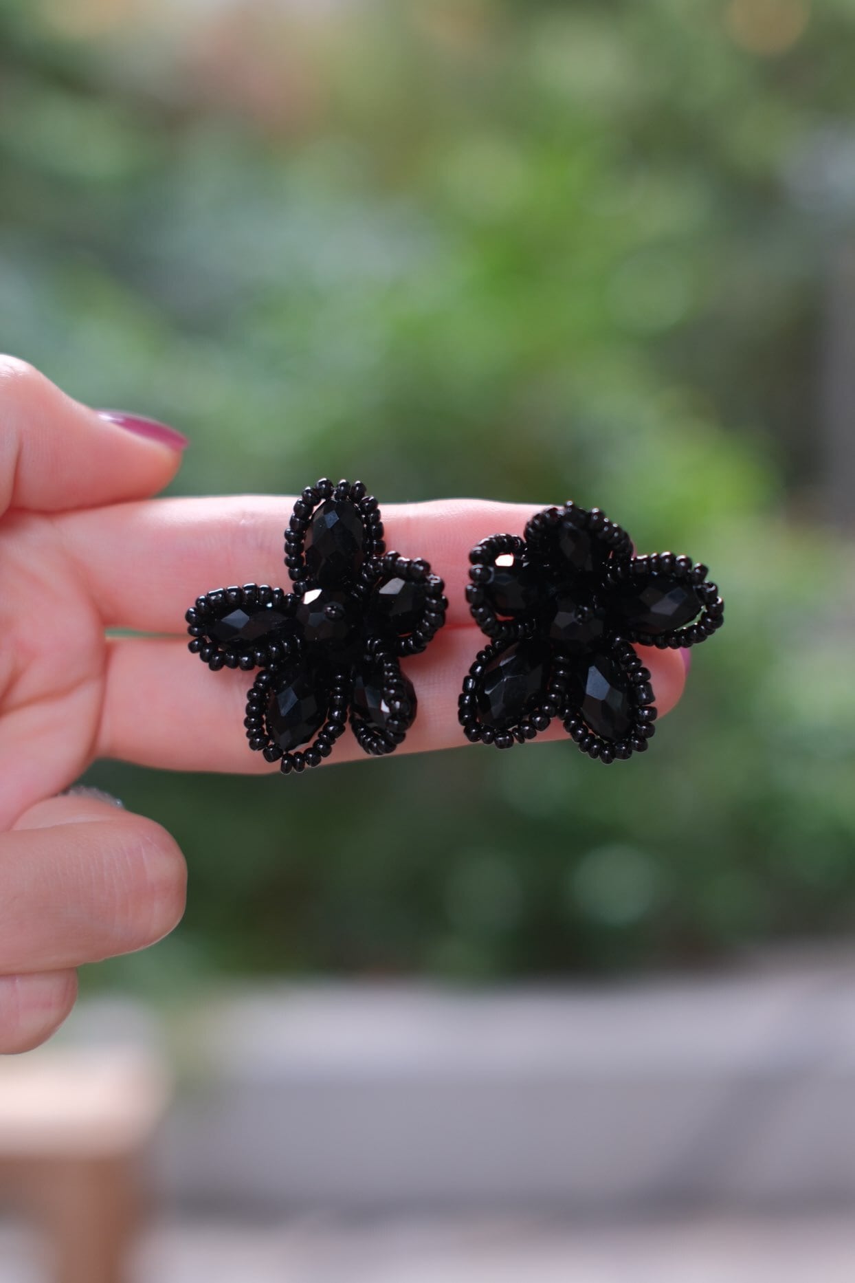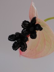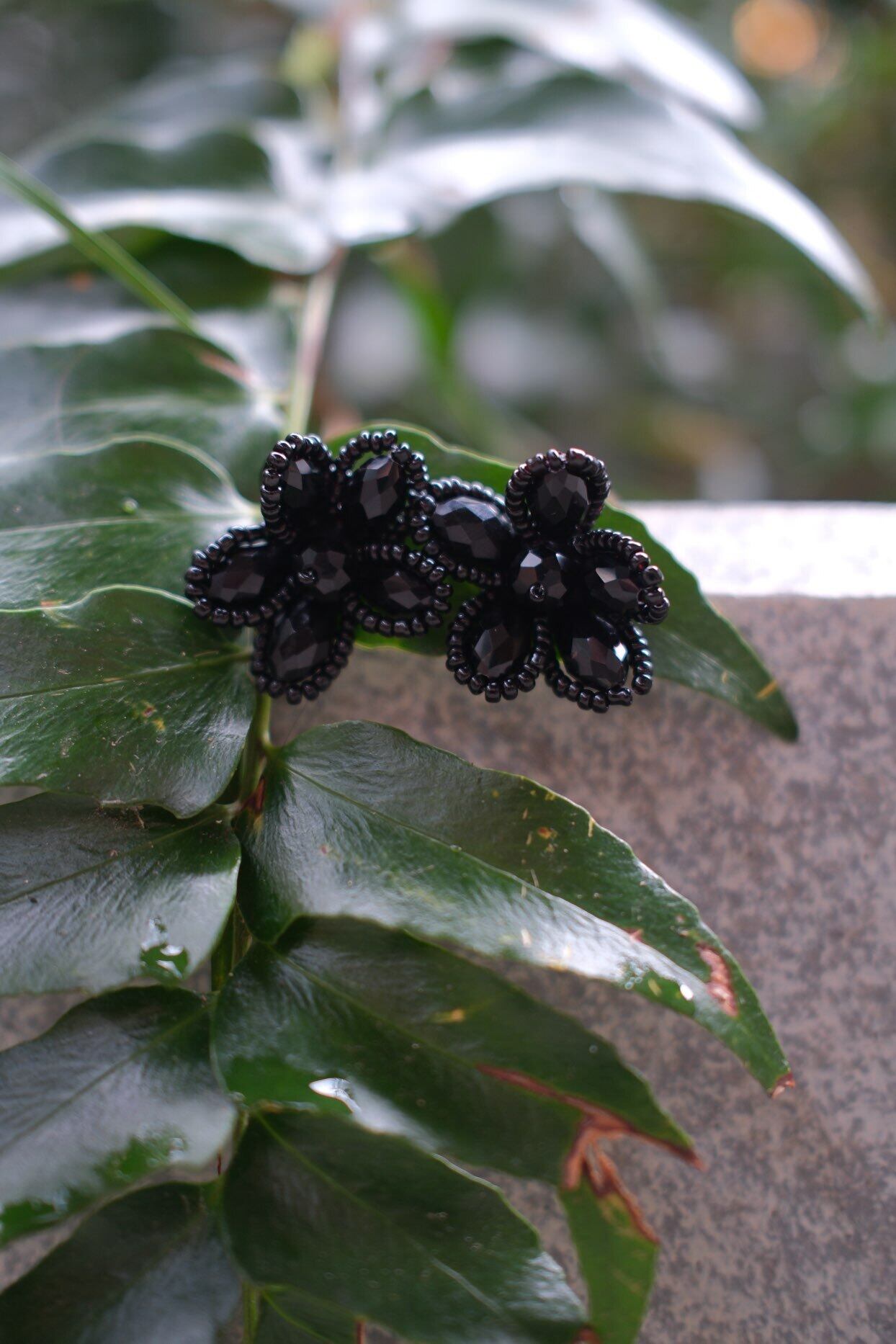 艶やかなブラックビーズを花びらのように重ねた、大人の華やかさを感じさせるデザイン。黒一色の奥行きが横顔を引き締め、シンプルなまとめ髪やアップスタイルに合わせると立体感がより際立ちます。モノトーンコーデに添えるとぐっとシックに、白シャツやジャケットに合わせると“きちんと感”にほどよい遊び心をプラス。甘すぎないフラワーモチーフだからこそ、日常にも特別な日にも選びたくなる存在です。ピアス・イヤリングどちらもご用意しています。