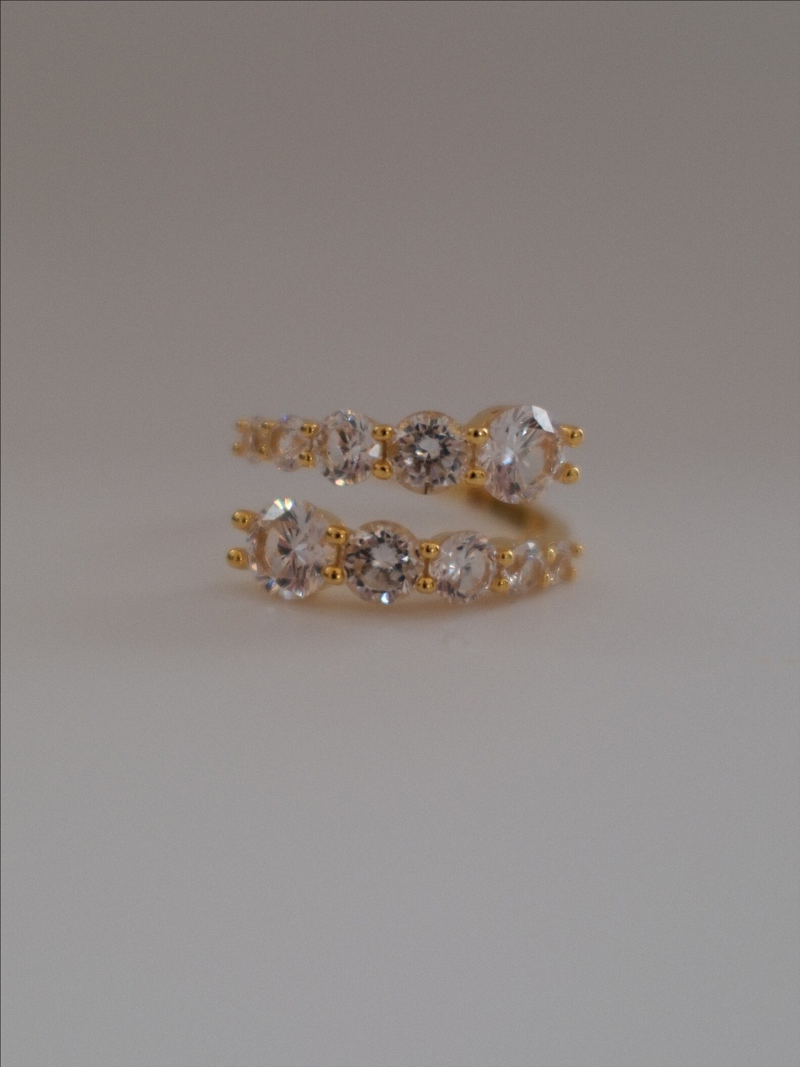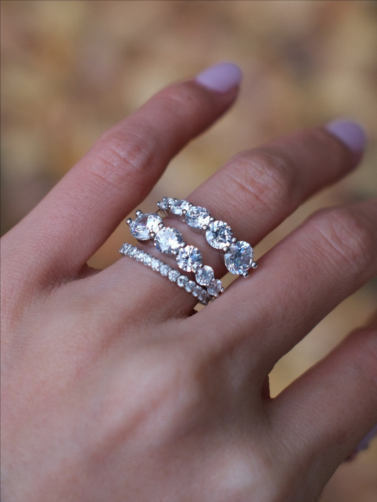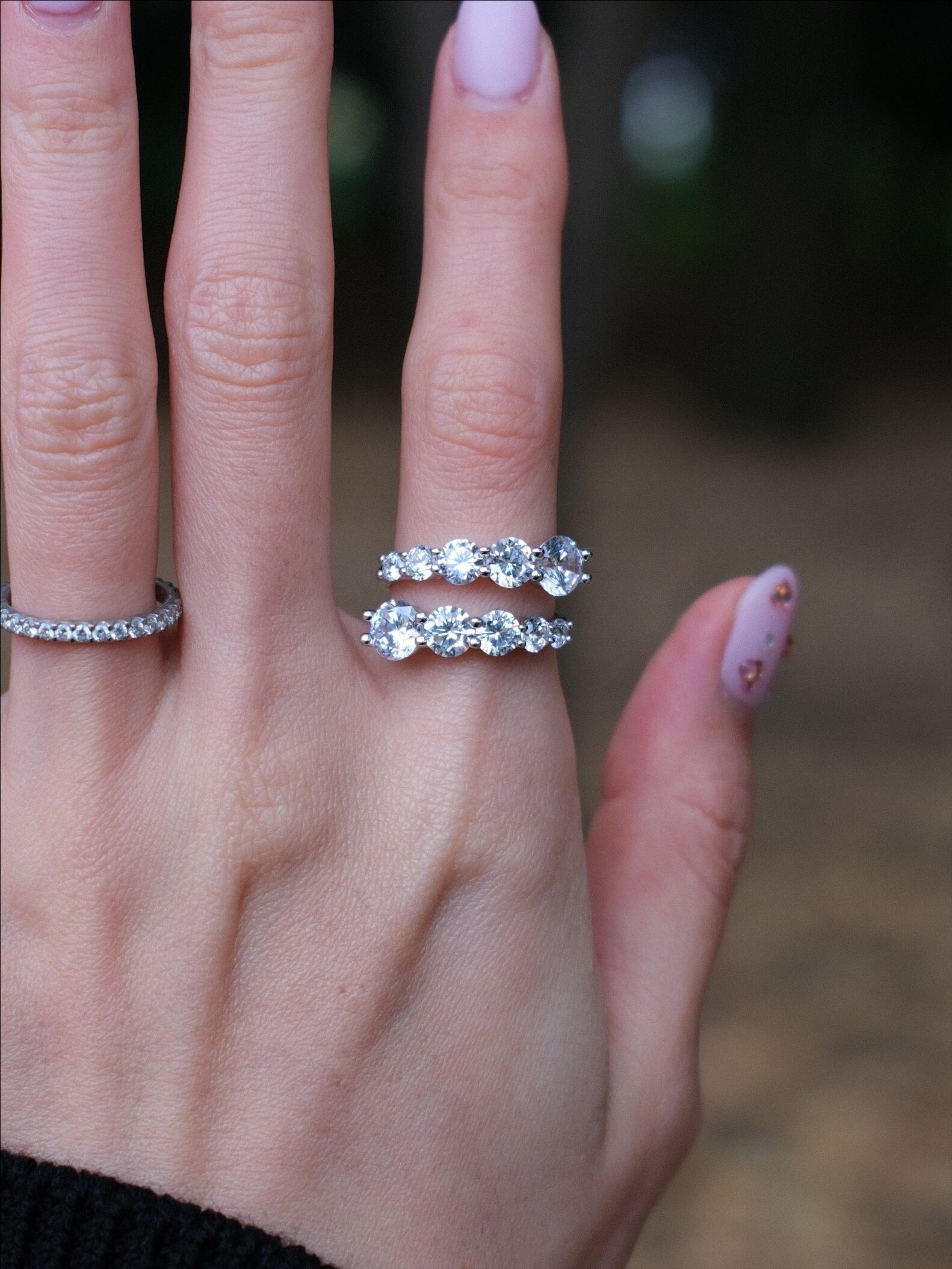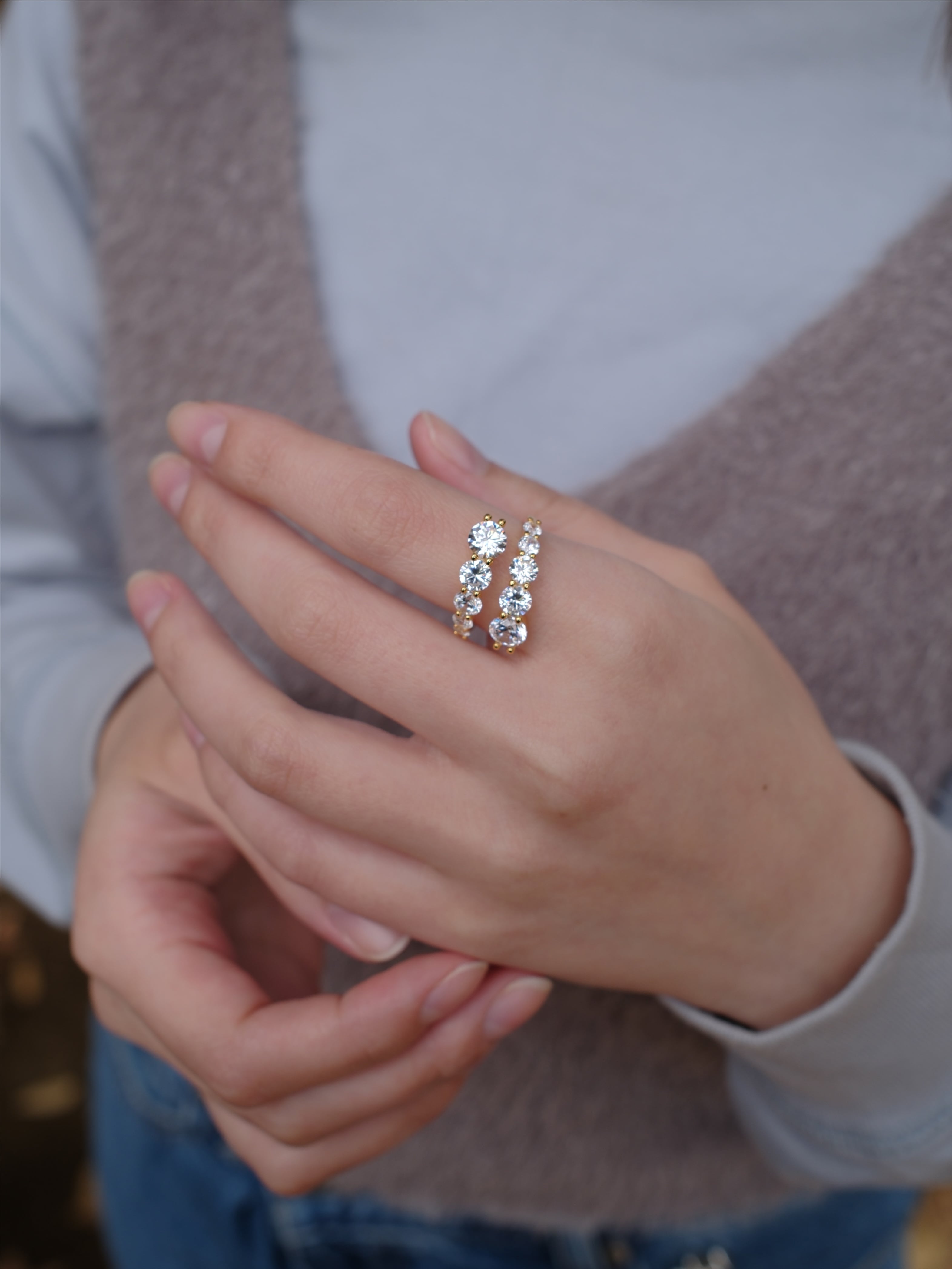 クリスタルのように澄んだ輝きを放つキュービックジルコニアを連ねた、光の帯のようなミニマルリング。