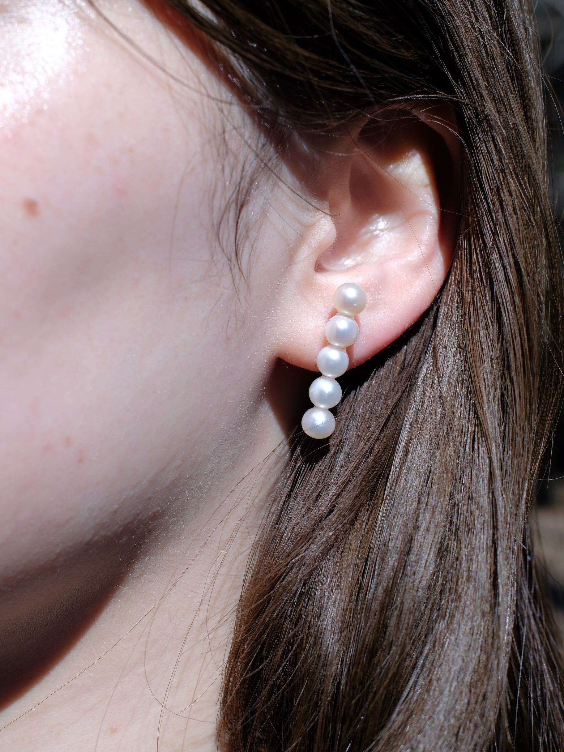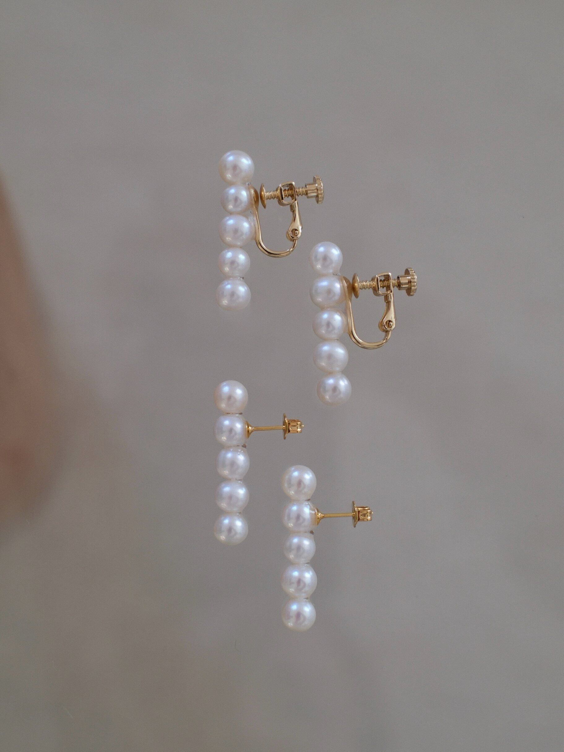 厳選した淡水パールを、すっきりと縦に連ねたミニマルなデザインのイヤリング/ピアス。