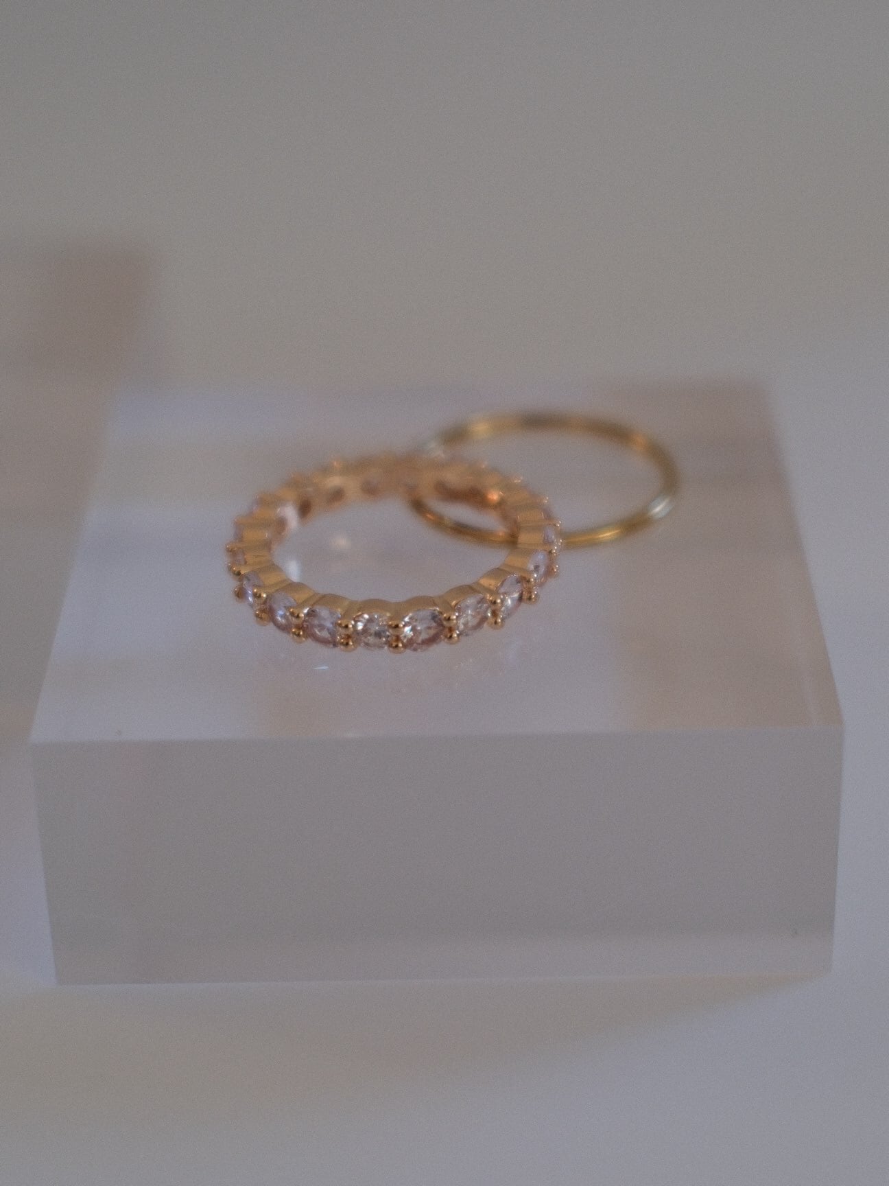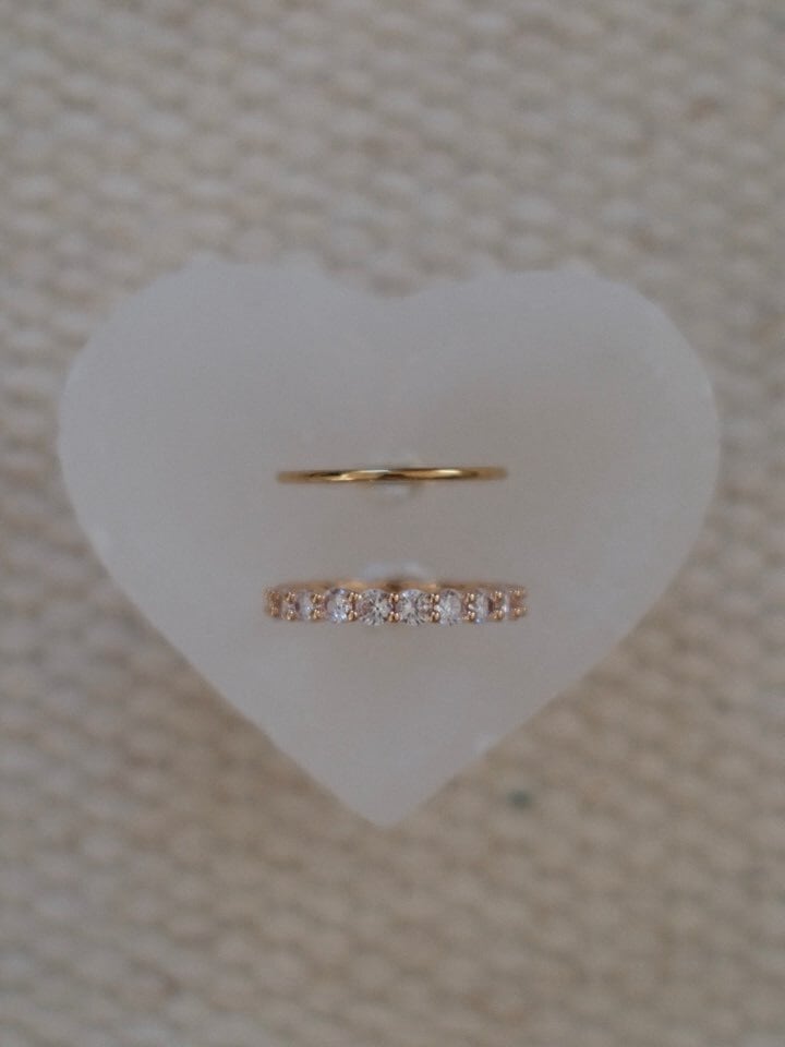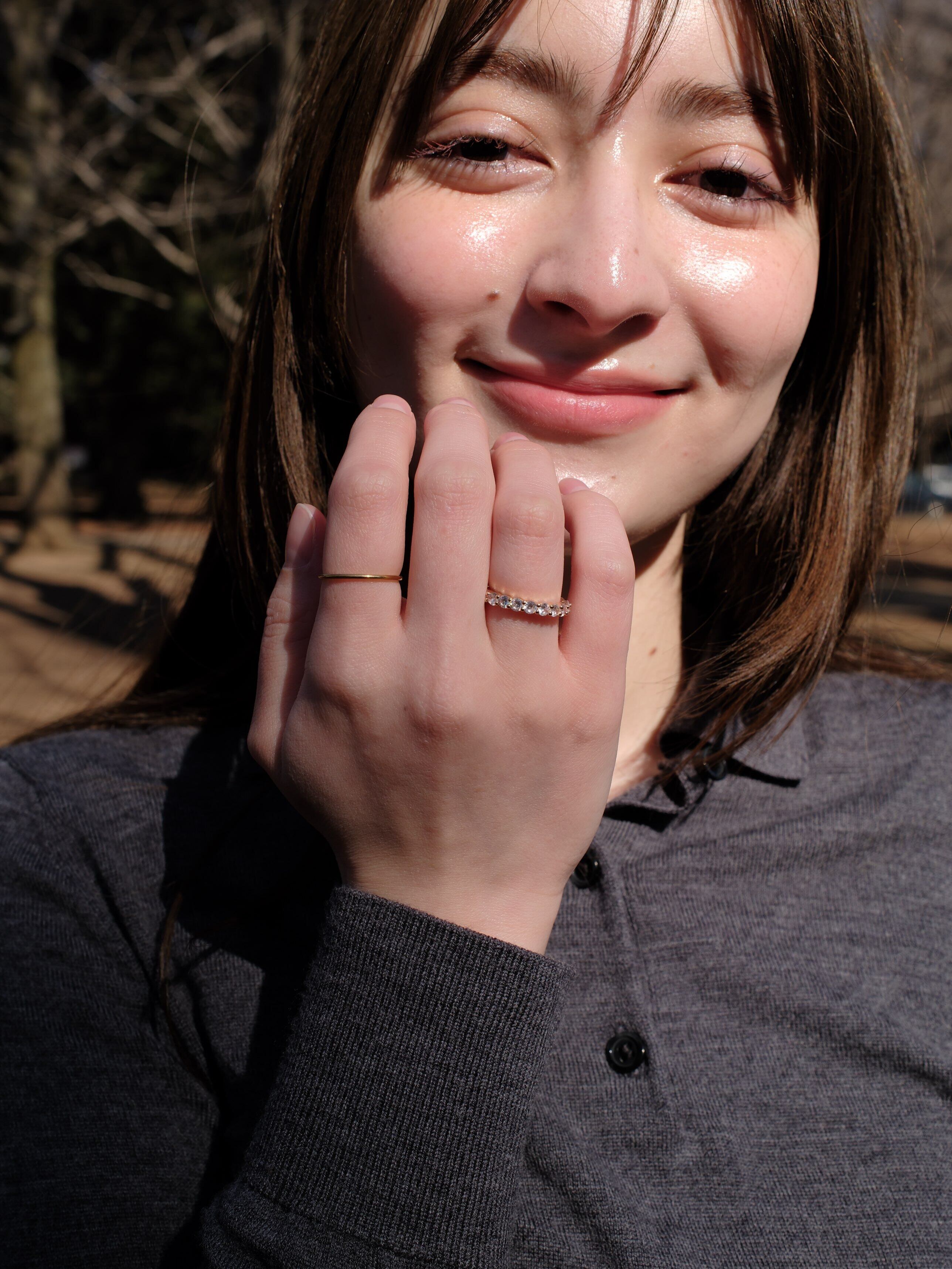 繊細なキュービックジルコニアを丁寧にセッティングしたリング。