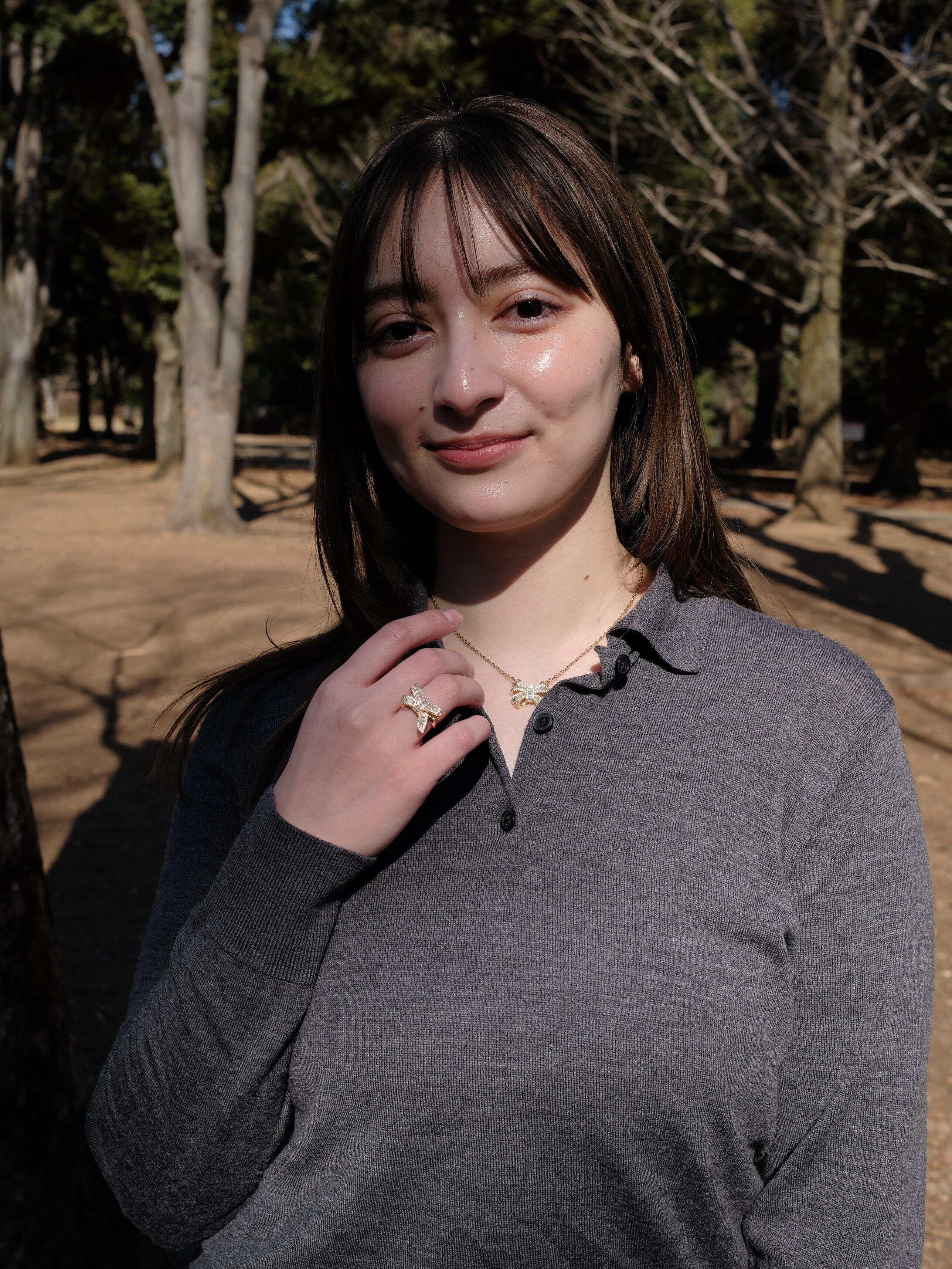 同シリーズの Ribbon Glow Ring と合わせて身につけることで、