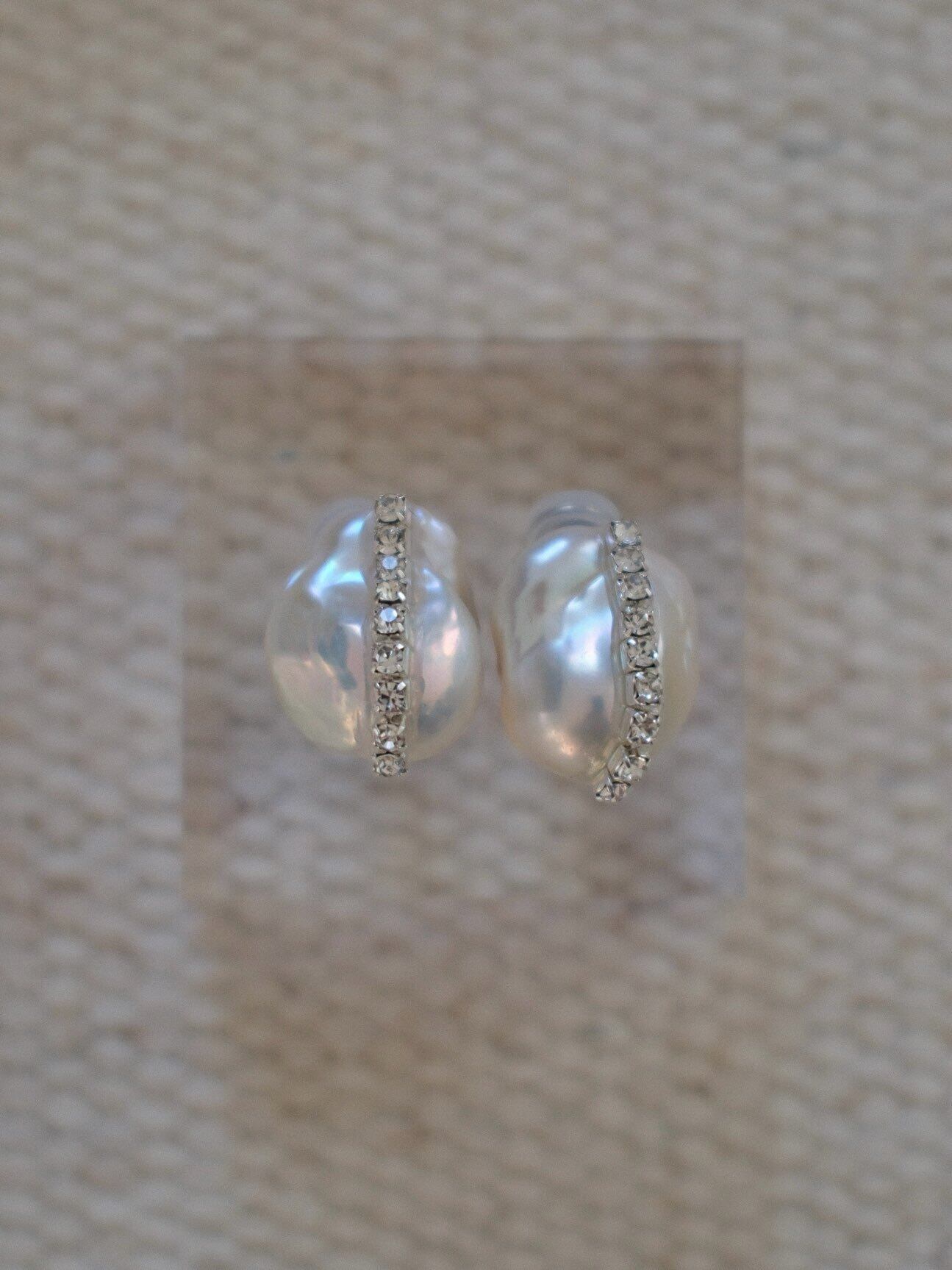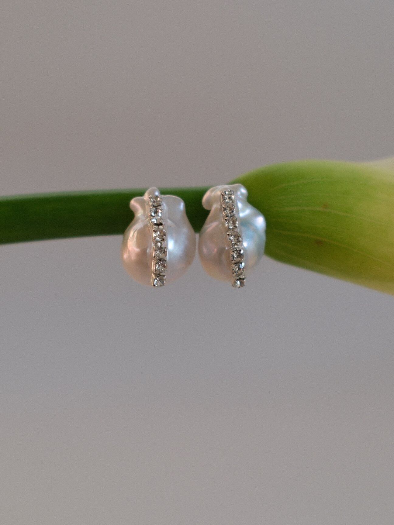 厳選した高品質の淡水パールを使用し、繊細なクリスタルラインを添えたイヤリング/ピアス。