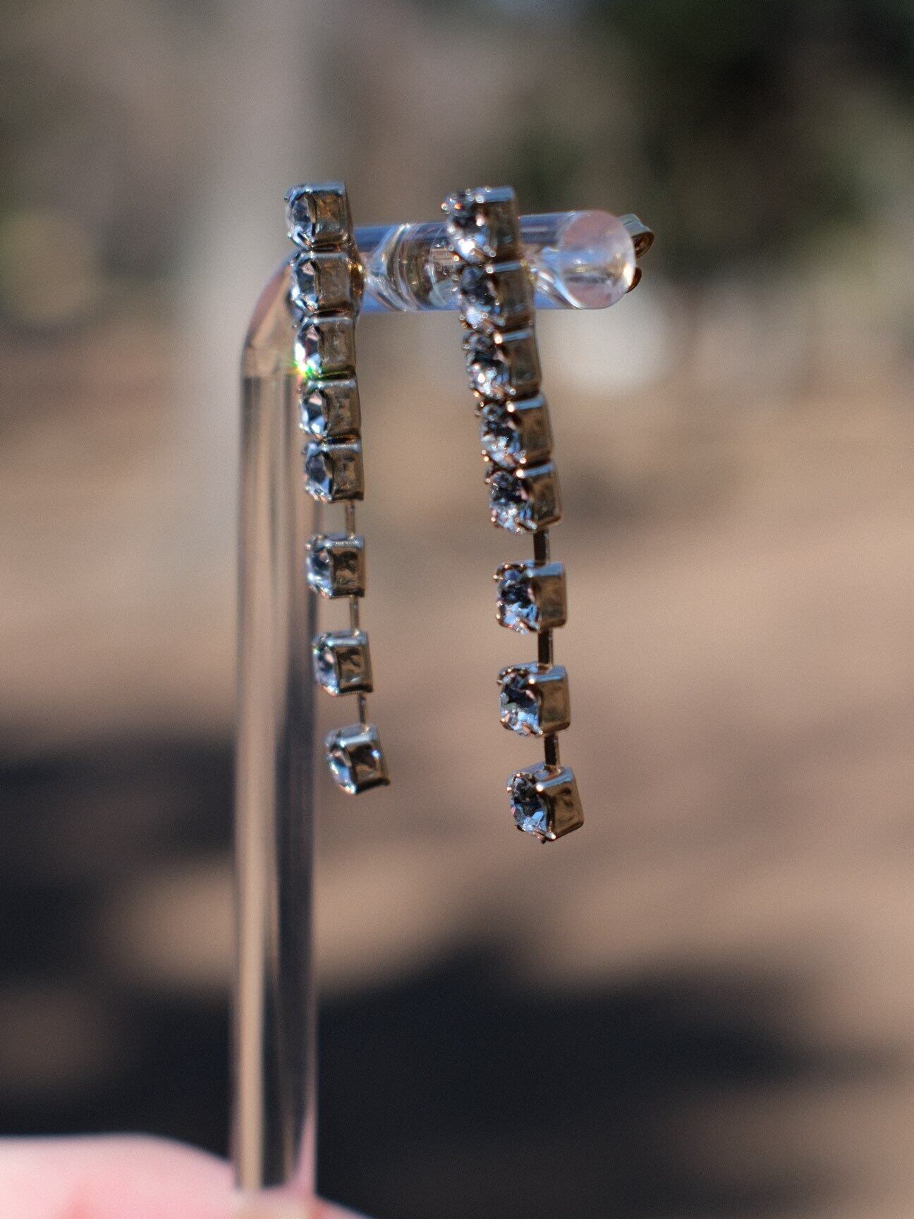 すっと縦に光を描くロングシルエットのイヤリング/ピアス。