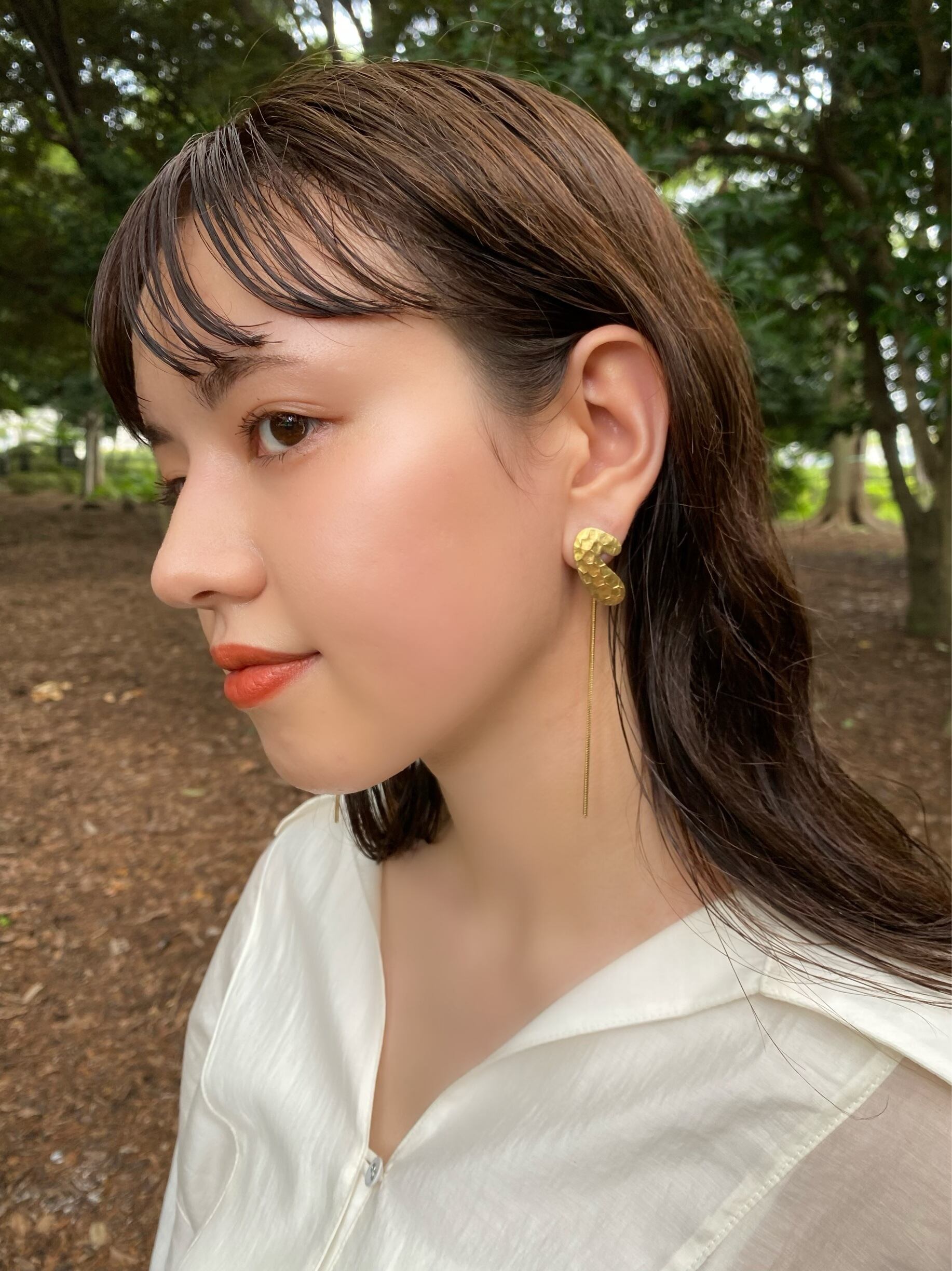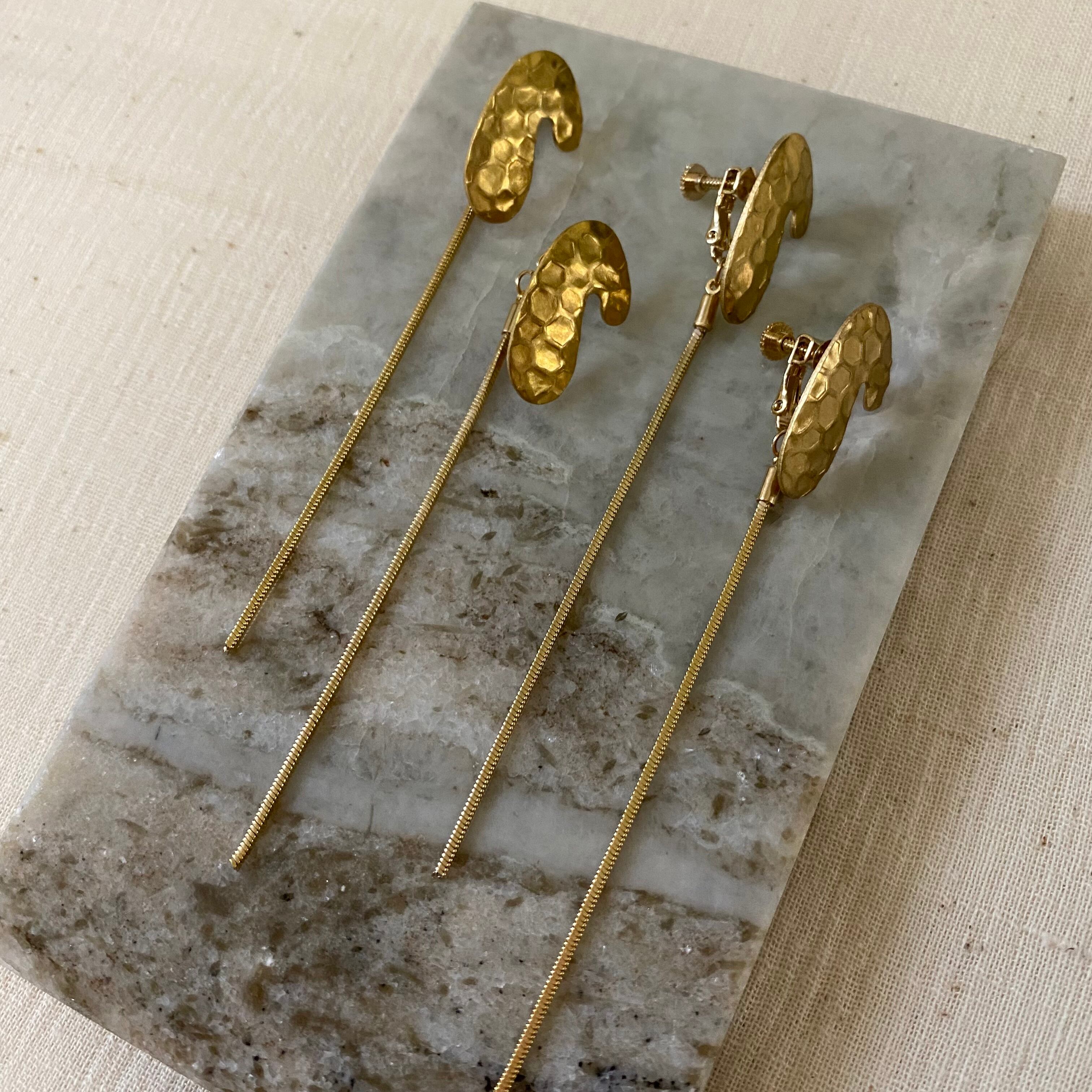 真鍮に鱗押しを施し、アクセントのあるデザインが特徴のアクセサリー。