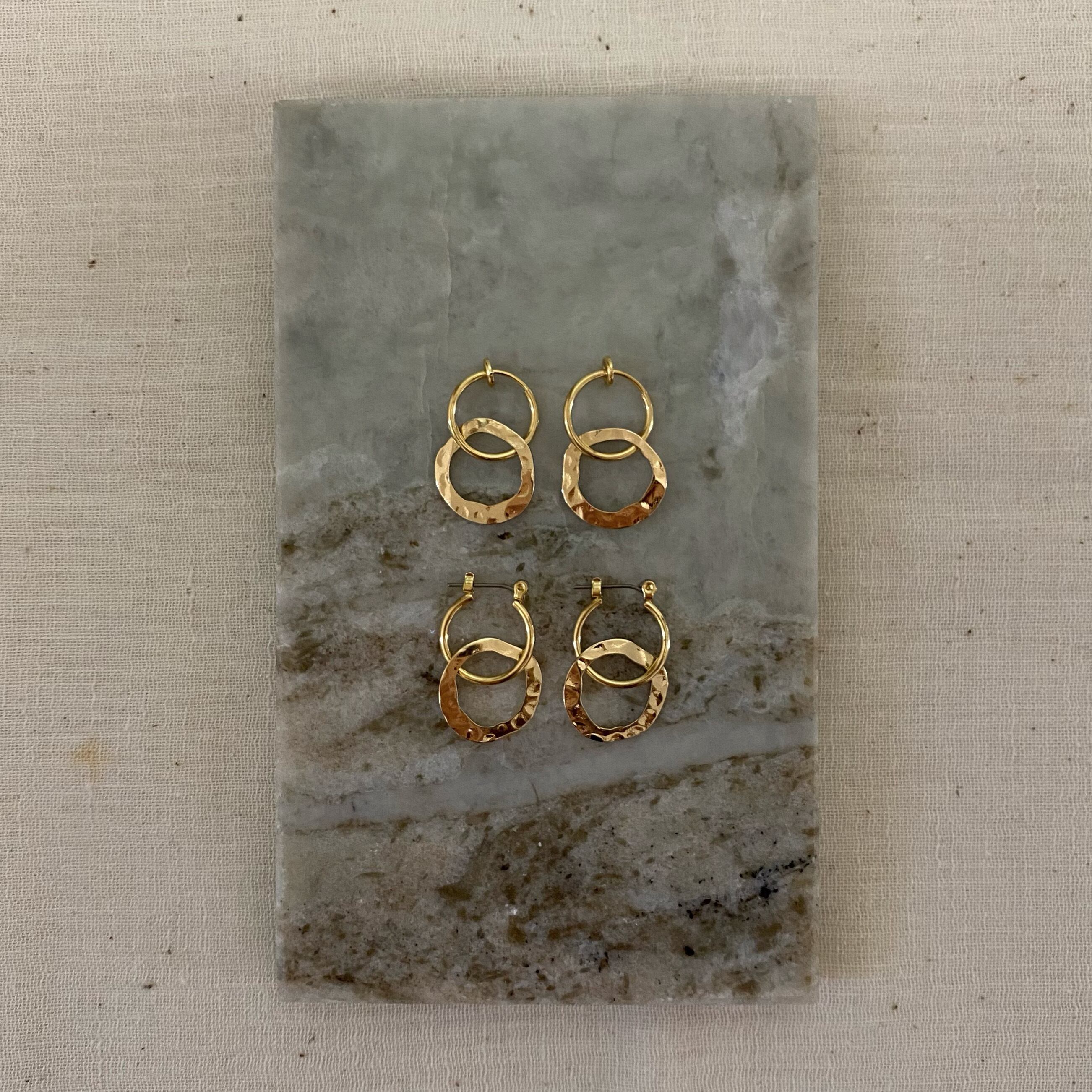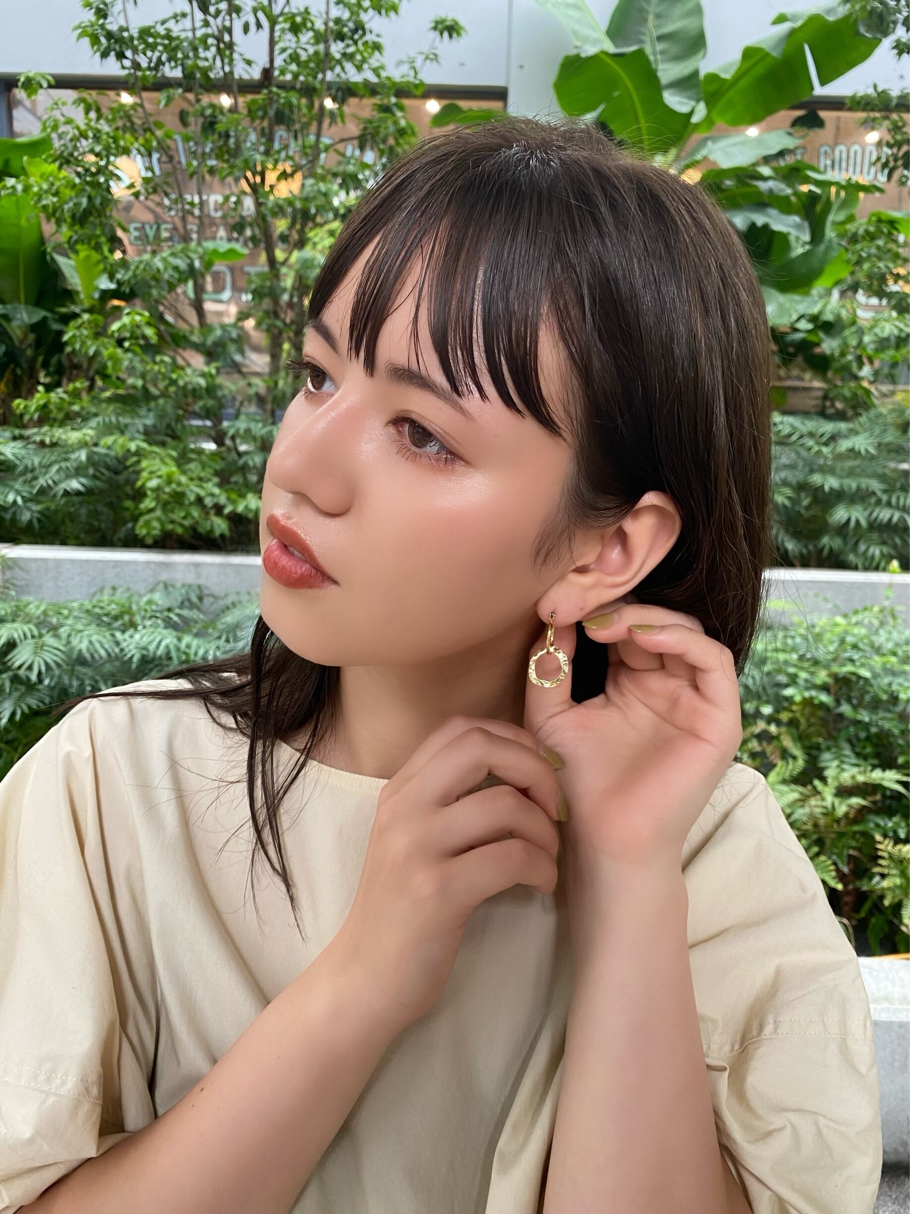 強い印象が与えられがちなゴールドメタル素材ですが、ちょこんとしたフォルムがカジュアルさをプラスしてくれ、肌馴染みのいいものへと仕上げております。
