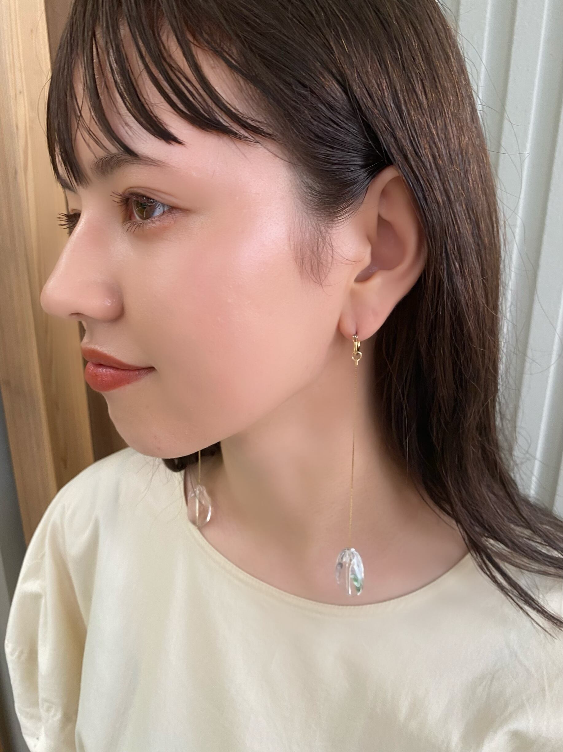 耳に直接当たる部分は、イヤリングはニッケルフリー、ピアスはチタン素材を使用しておりますので、金属アレルギーの方もお使いいただけます。
