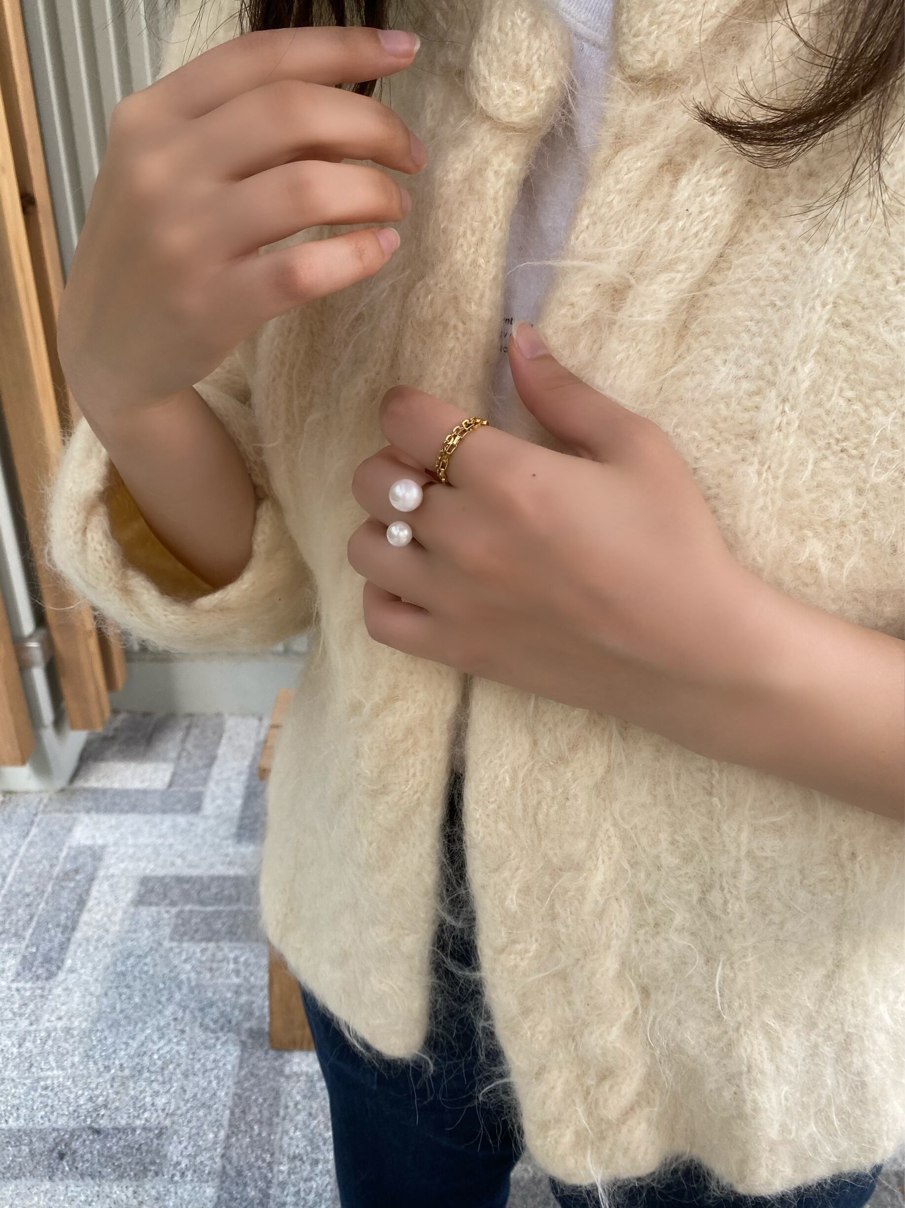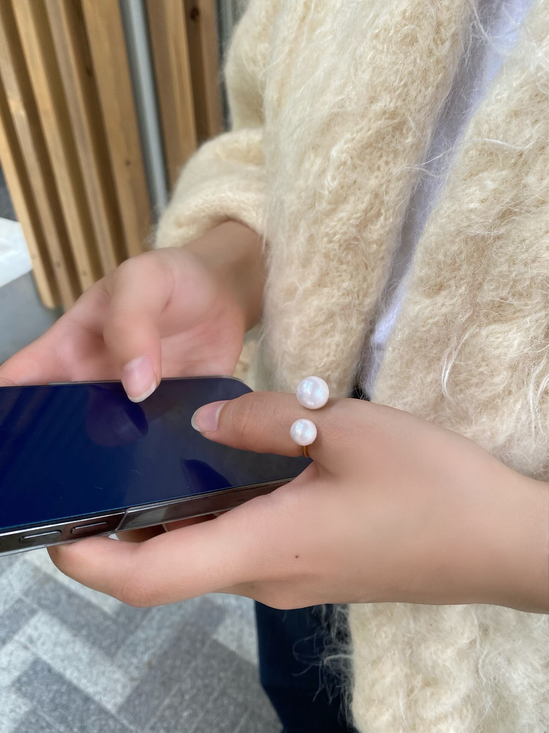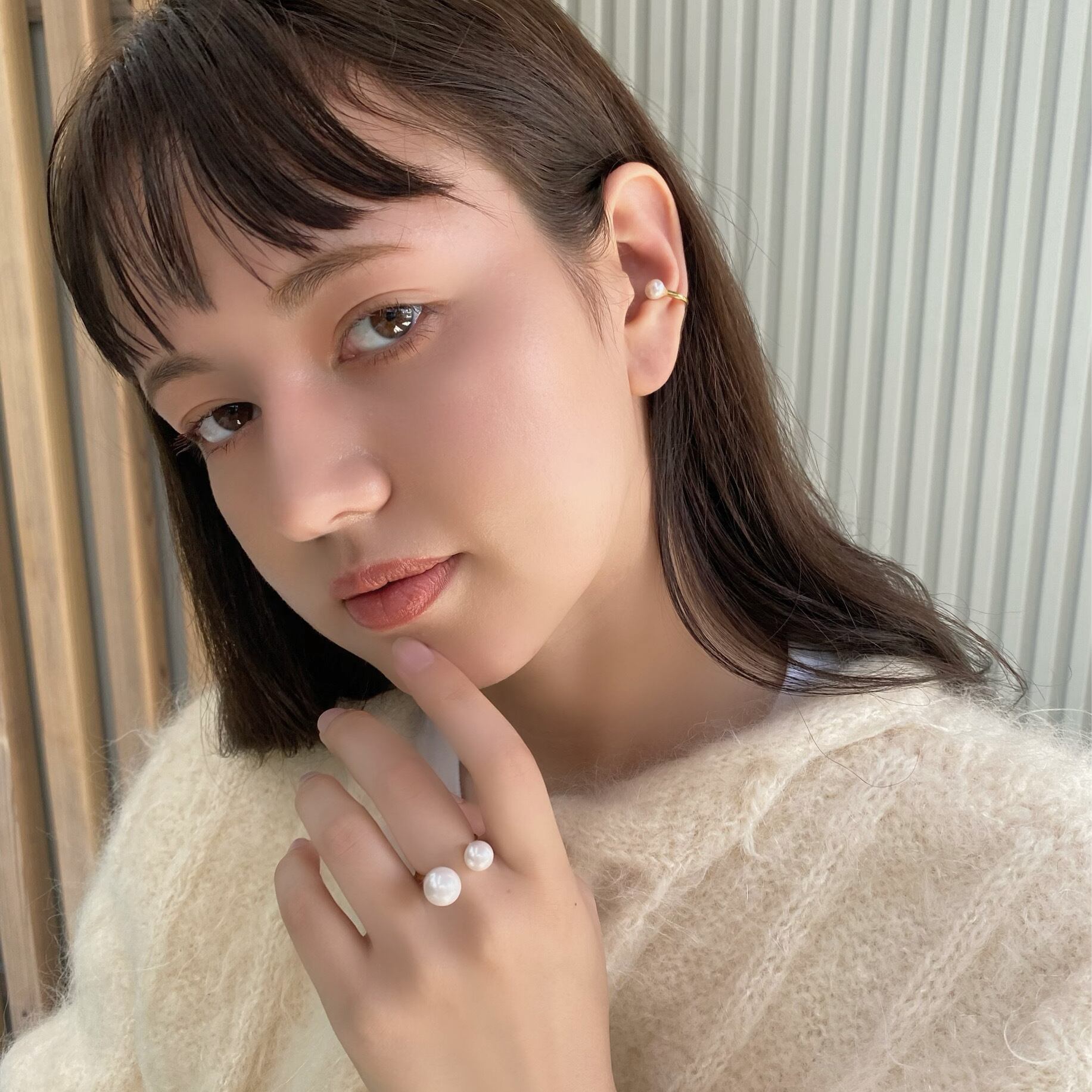 上品なパールを取り入れ、大きめサイズですので指を綺麗に見せてくれる効果がございます。