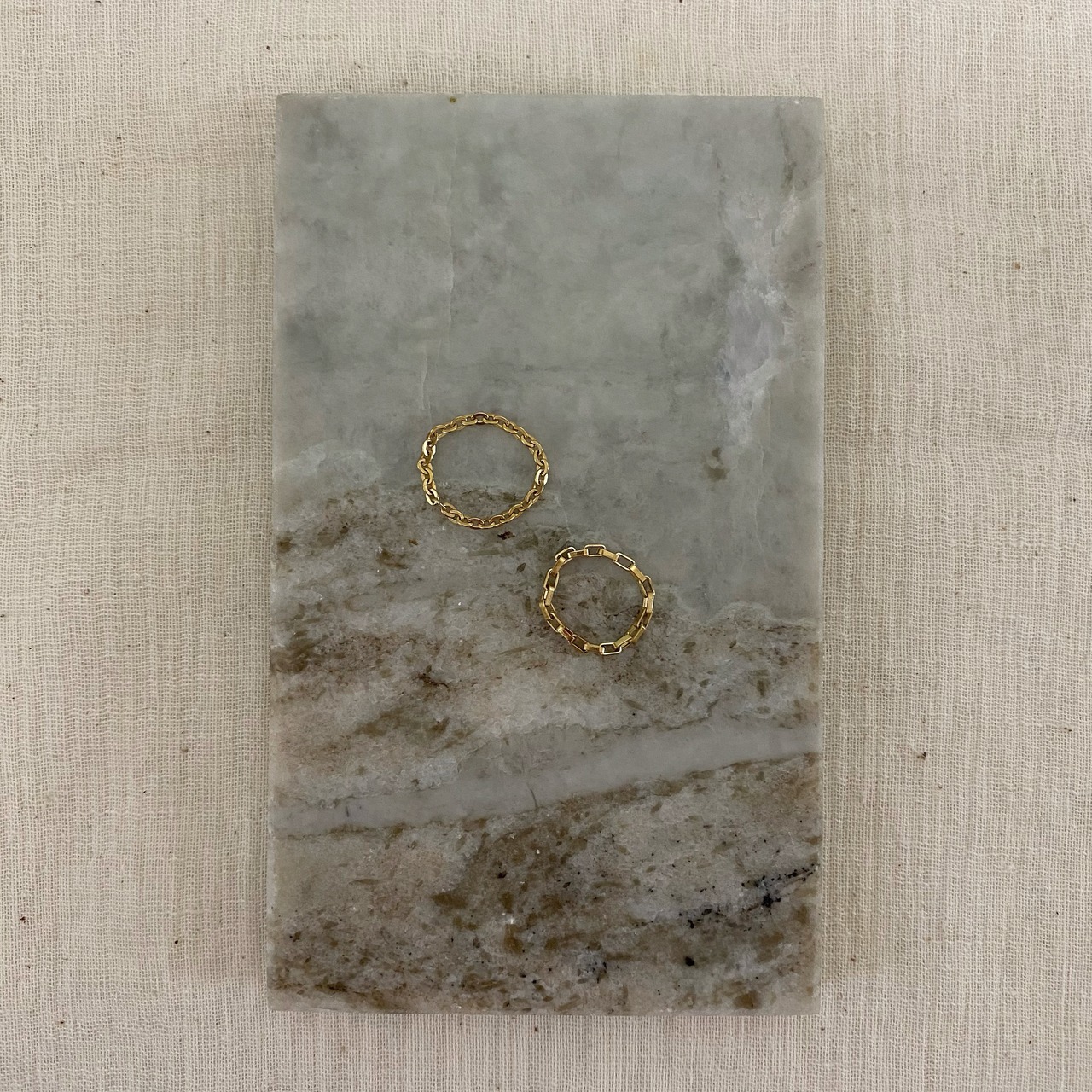 こちらはベネチアンチェーンとアズキチェーンの2タイプのリングをセットにいたしました。