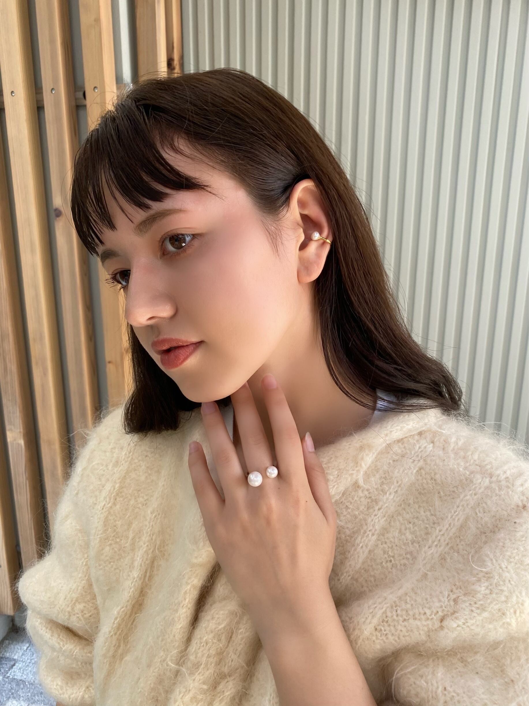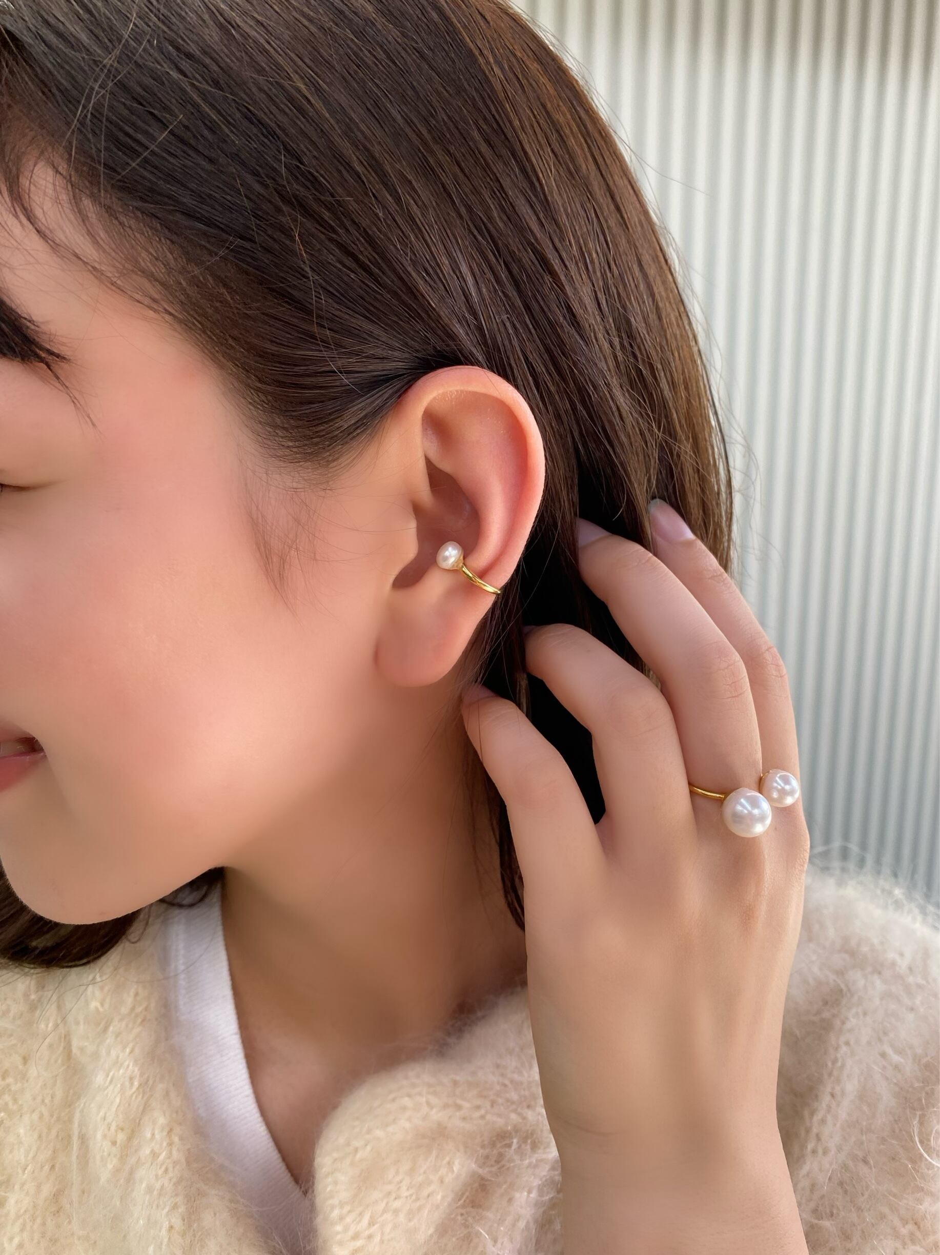 淡水パールを使用したイヤーカフ。