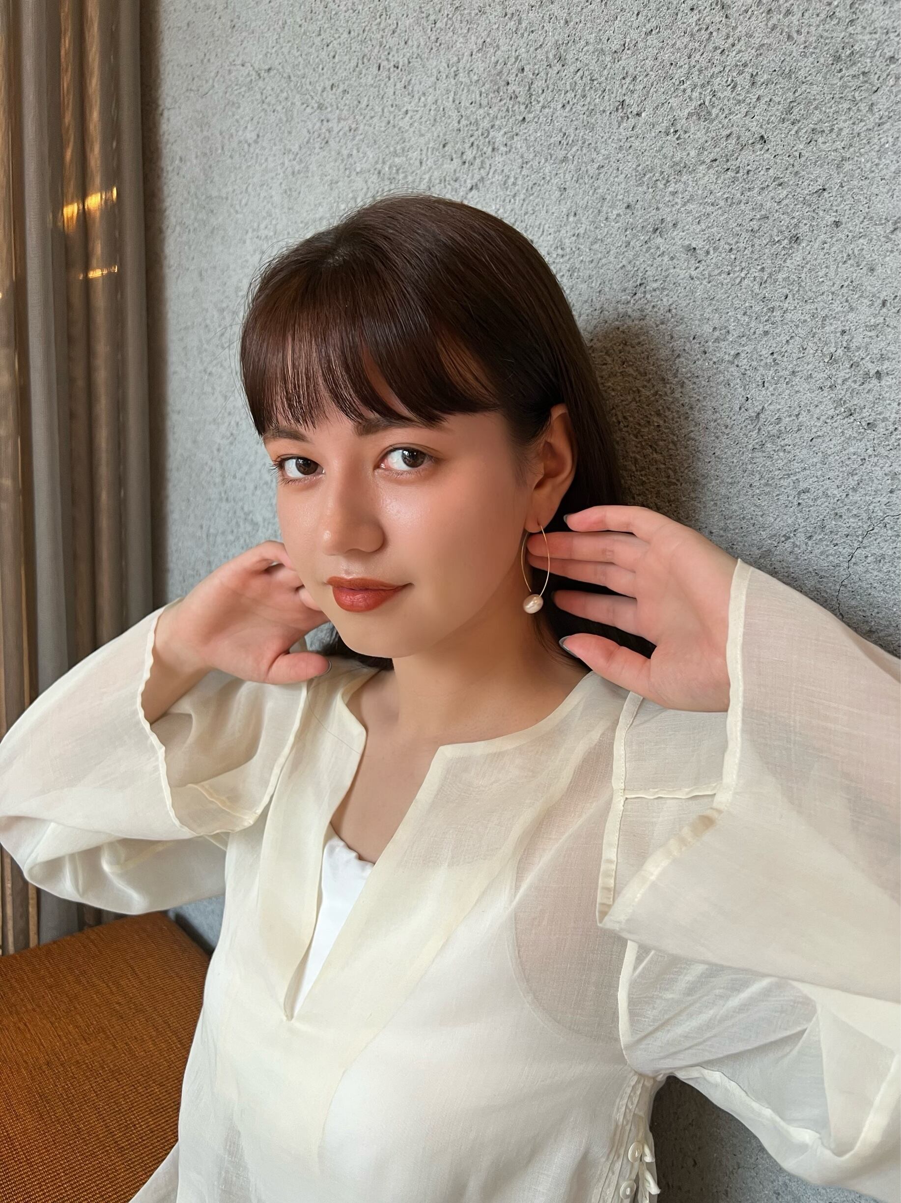 細めのワイヤーが華奢な印象を与えてくれ、大ぶりながらも上品な大人らしいひとつに仕上げました。