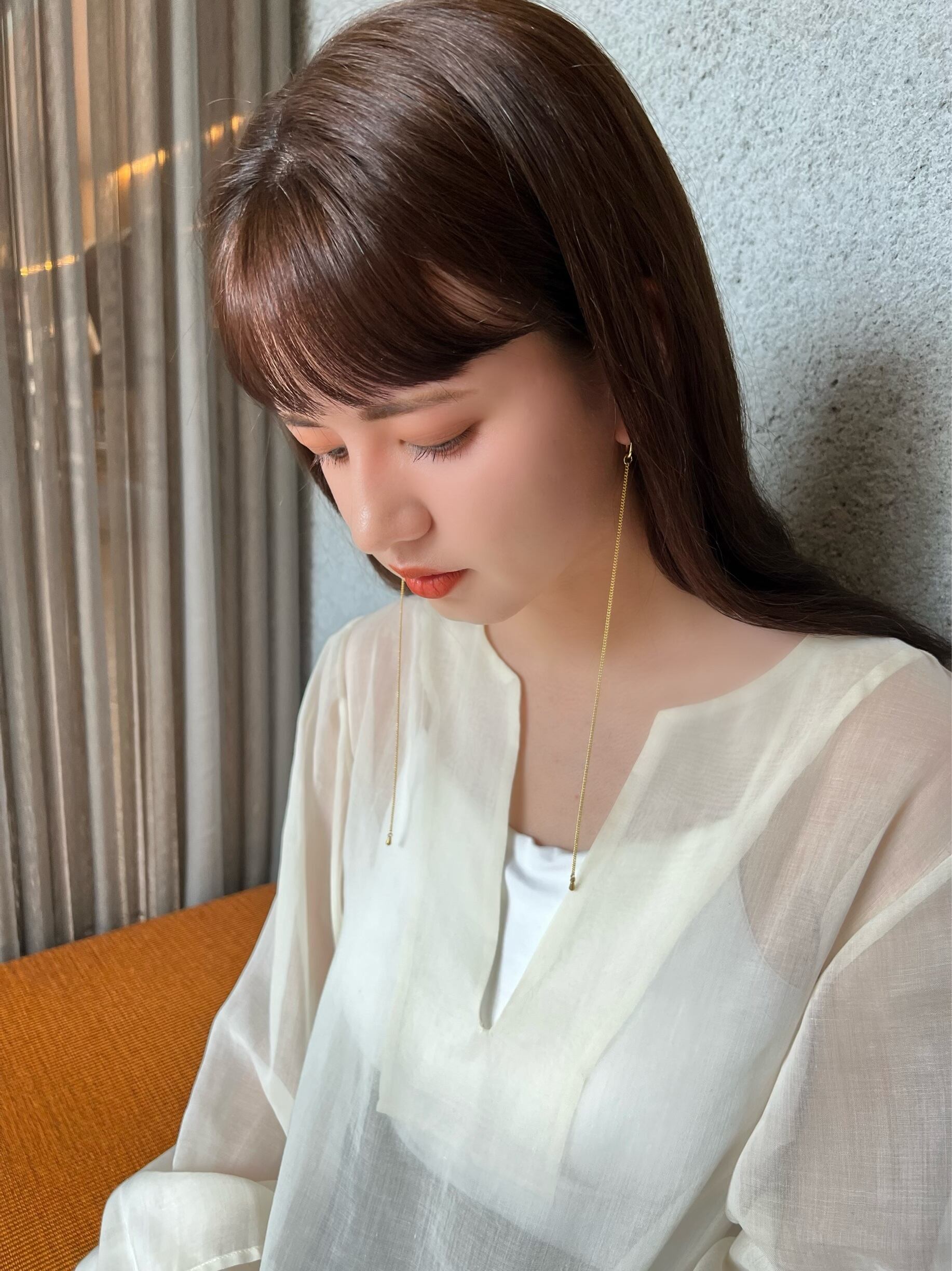 ロングデザインですが、細めのチェーンを使用しておりますので、派手すぎず落ち着いた印象になります。
