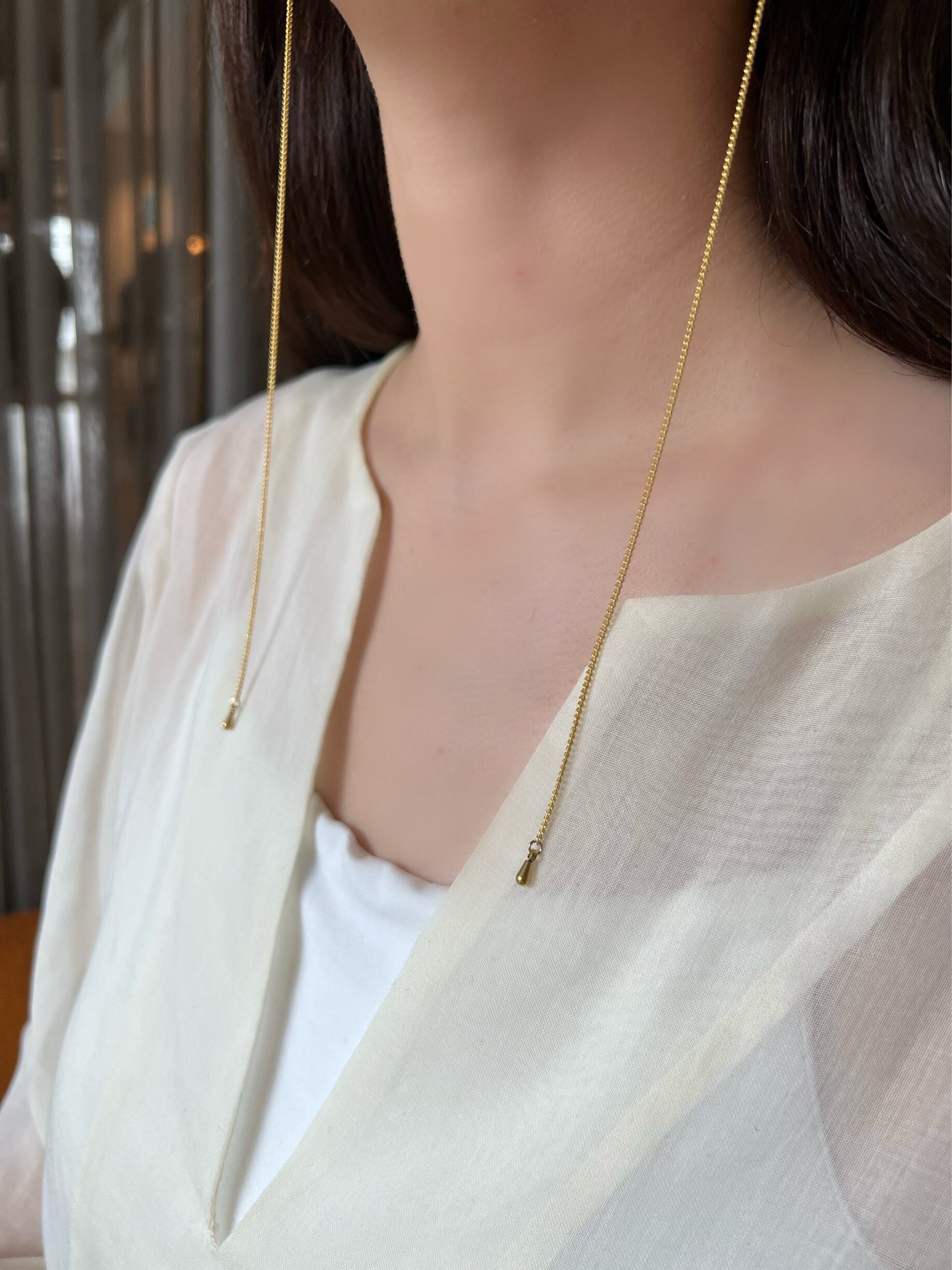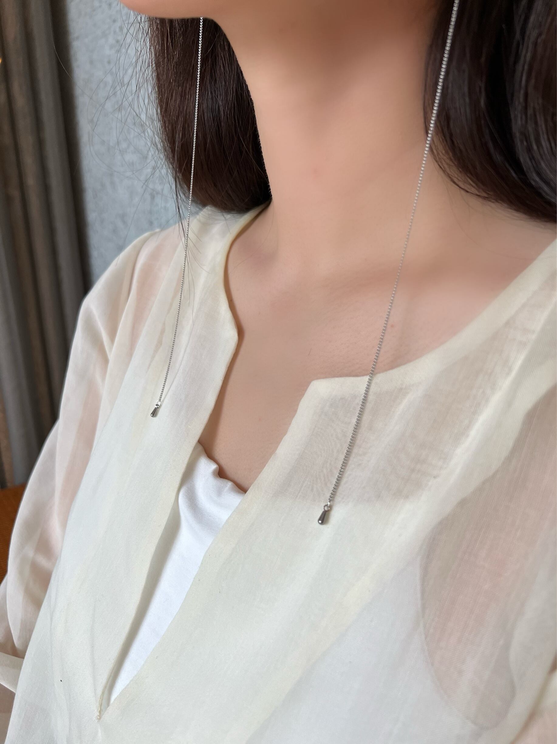 とてもロングなチェーンの先端にちょこんとした雫のついたアクセサリー。