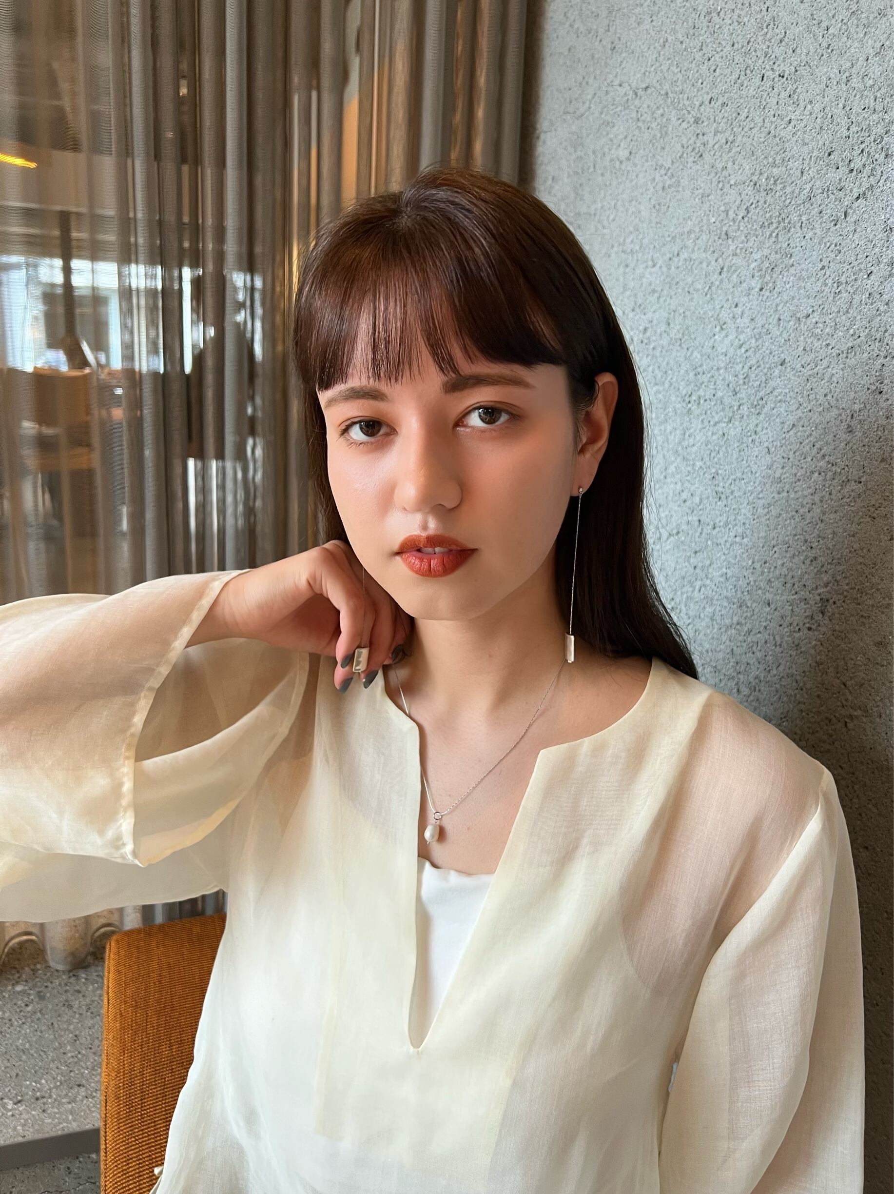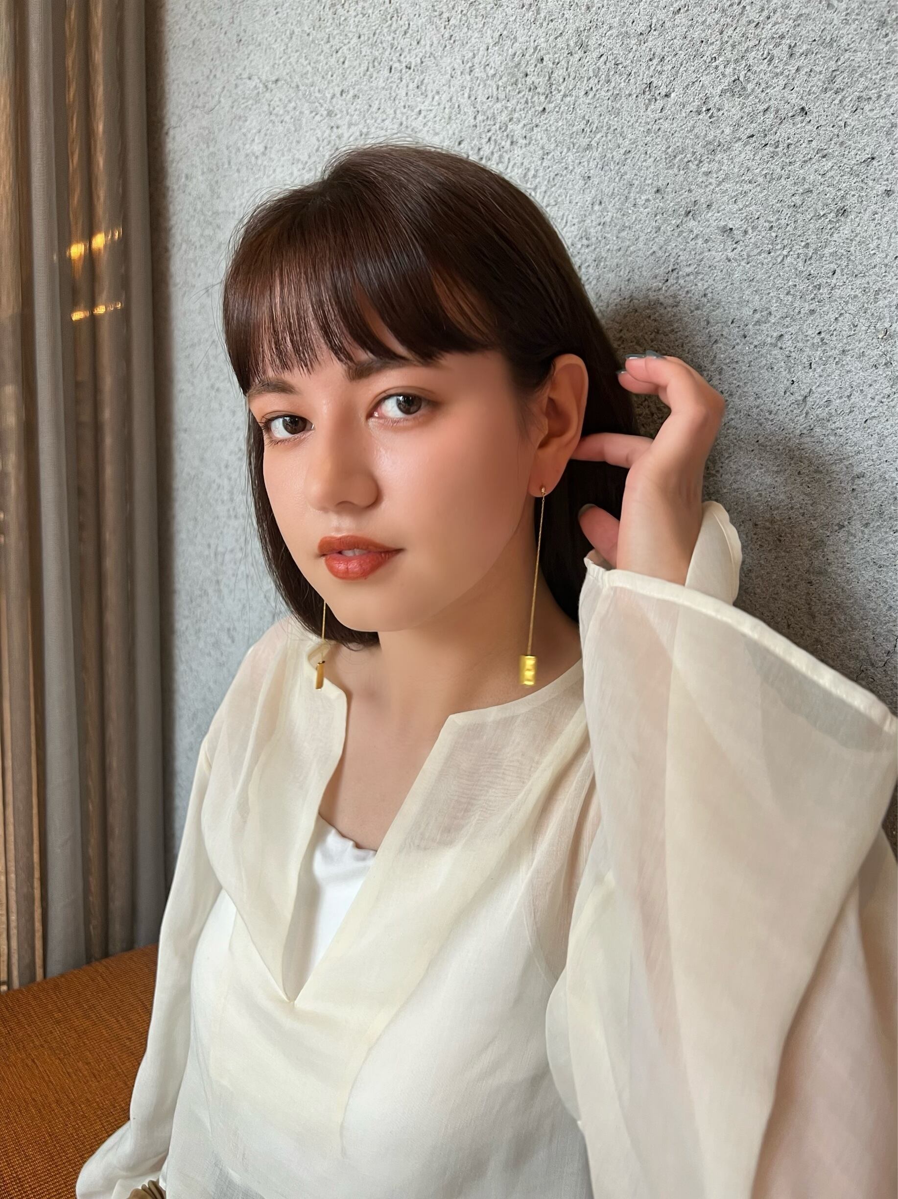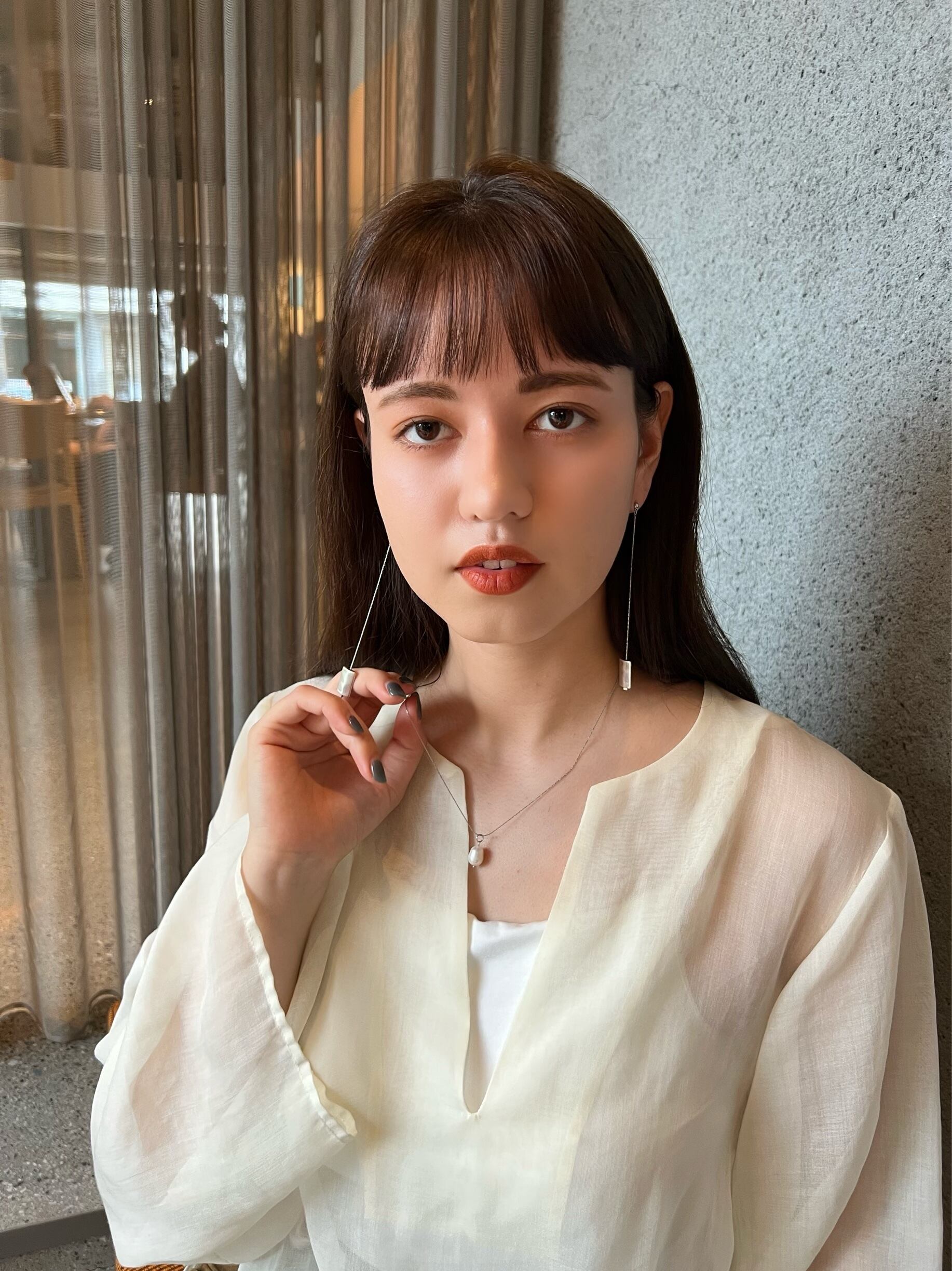 重厚感を持たせつつも、華奢なチェーンで顔に馴染みやすいバランスで仕上げました。