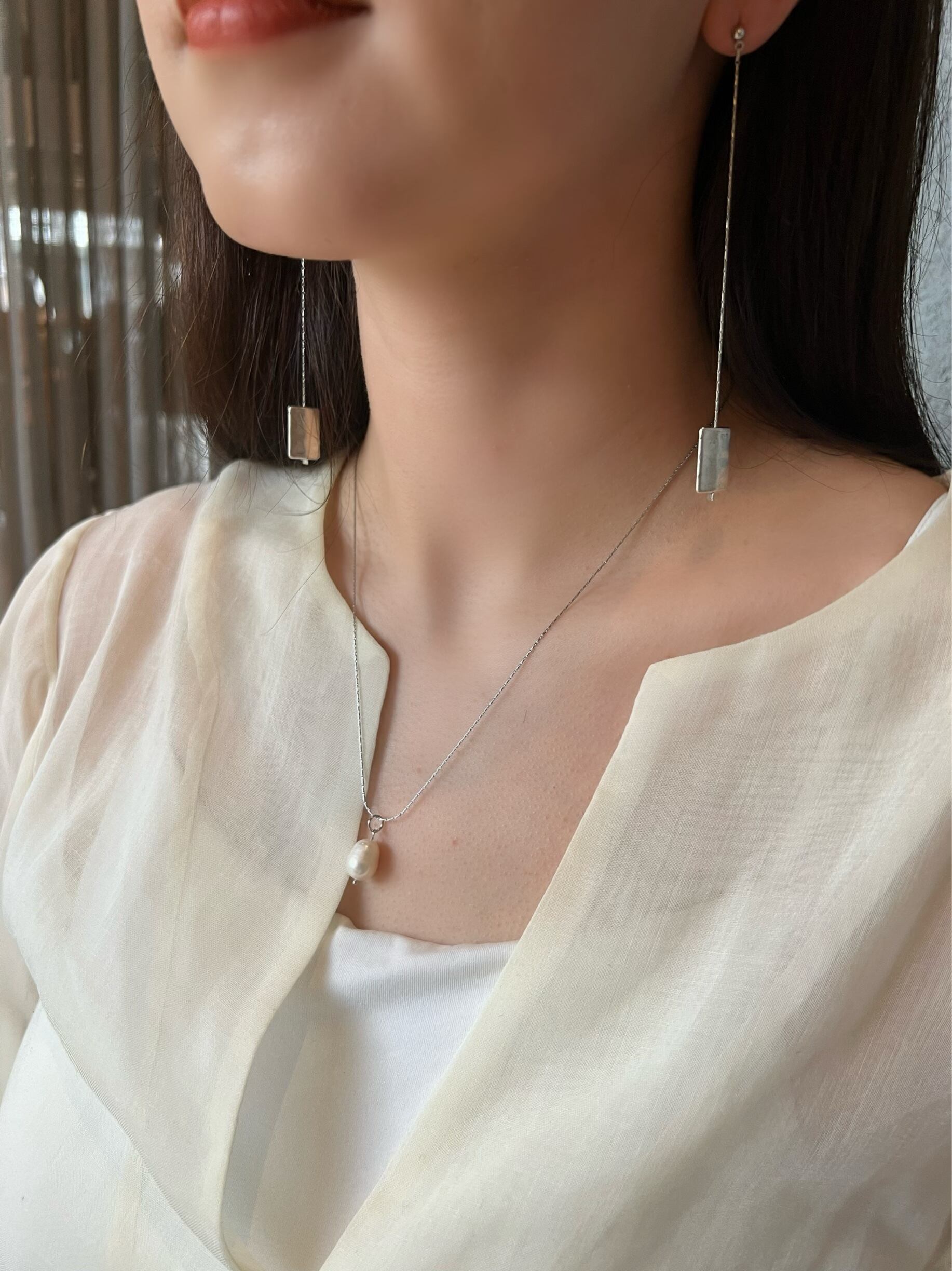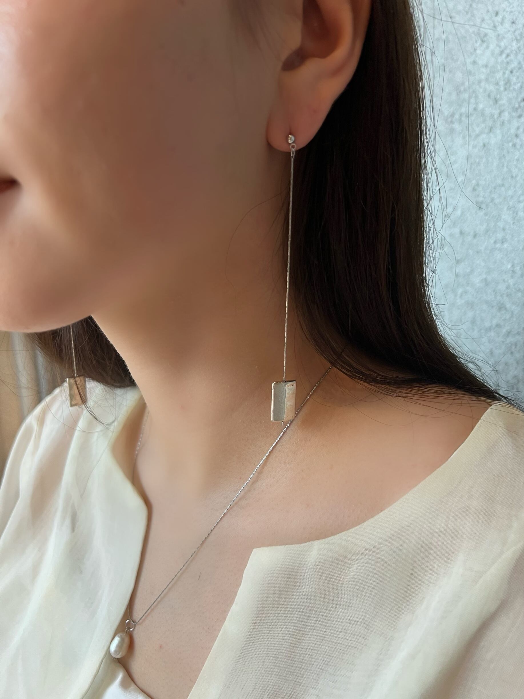 少し長めのチェーンで、大きく揺れるデザインが特徴。