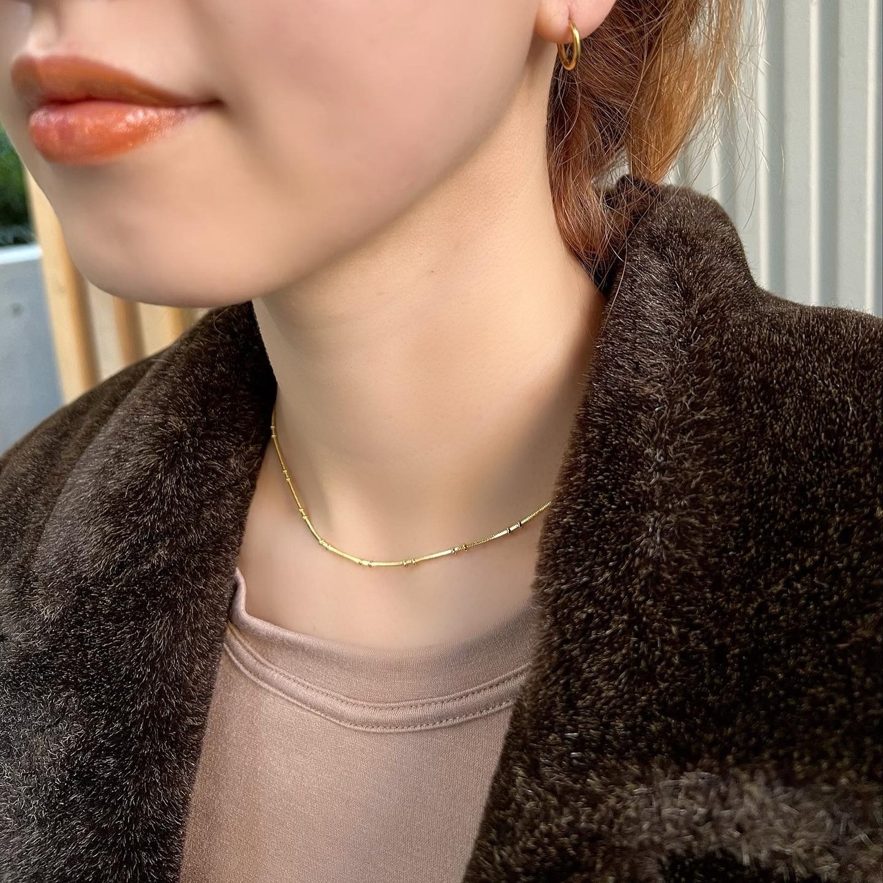 重厚感のある18KGPのゴールドとさりげないドットが首周りに花を添えてくれます。