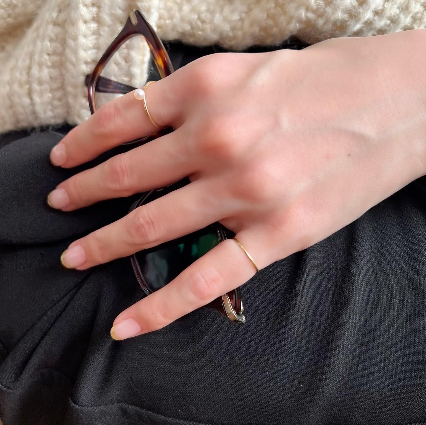 細めで華奢なデザインなので、単品使いはもちろん、お手持ちのリングとの相性も抜群。