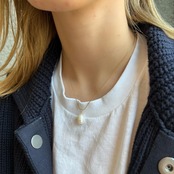 こちらもちょこんとした一粒淡水パールがポイントのネックレス。