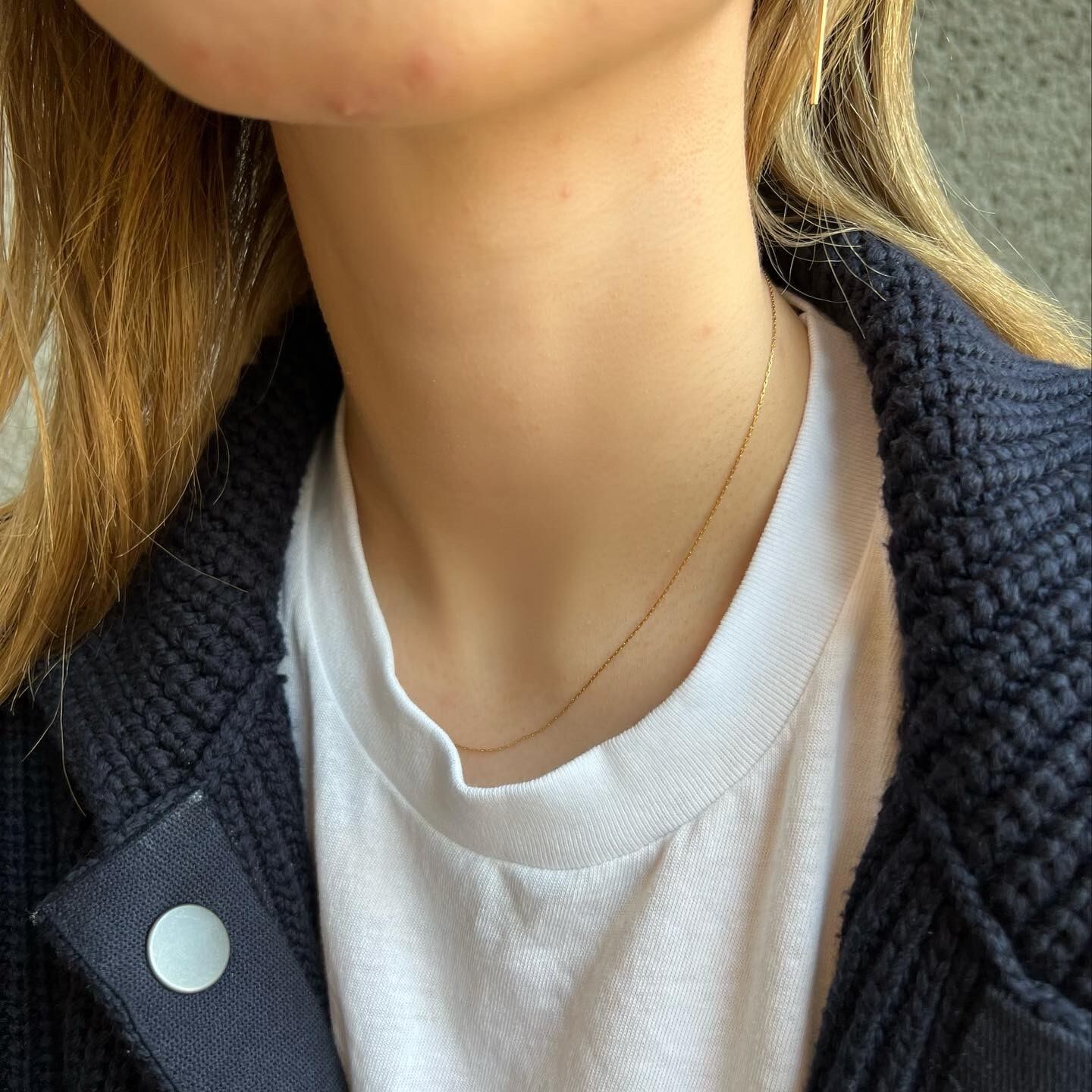 華奢できらっと輝くチェーンがシンプルながらも首元を綺麗に見せてくれ、デコルテを美しく見せてくれる効果があります。