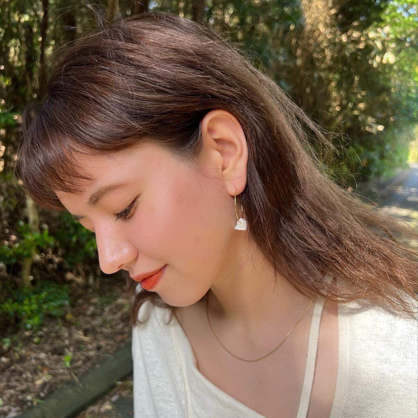 細めのワイヤーフープに天然石を通し、シンプルながらも石の輝きを最大限に発揮できるデザインに。