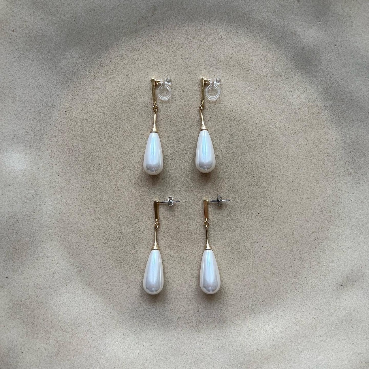 雫が滴ったようなエレガントなデザインのパールアクセサリー。