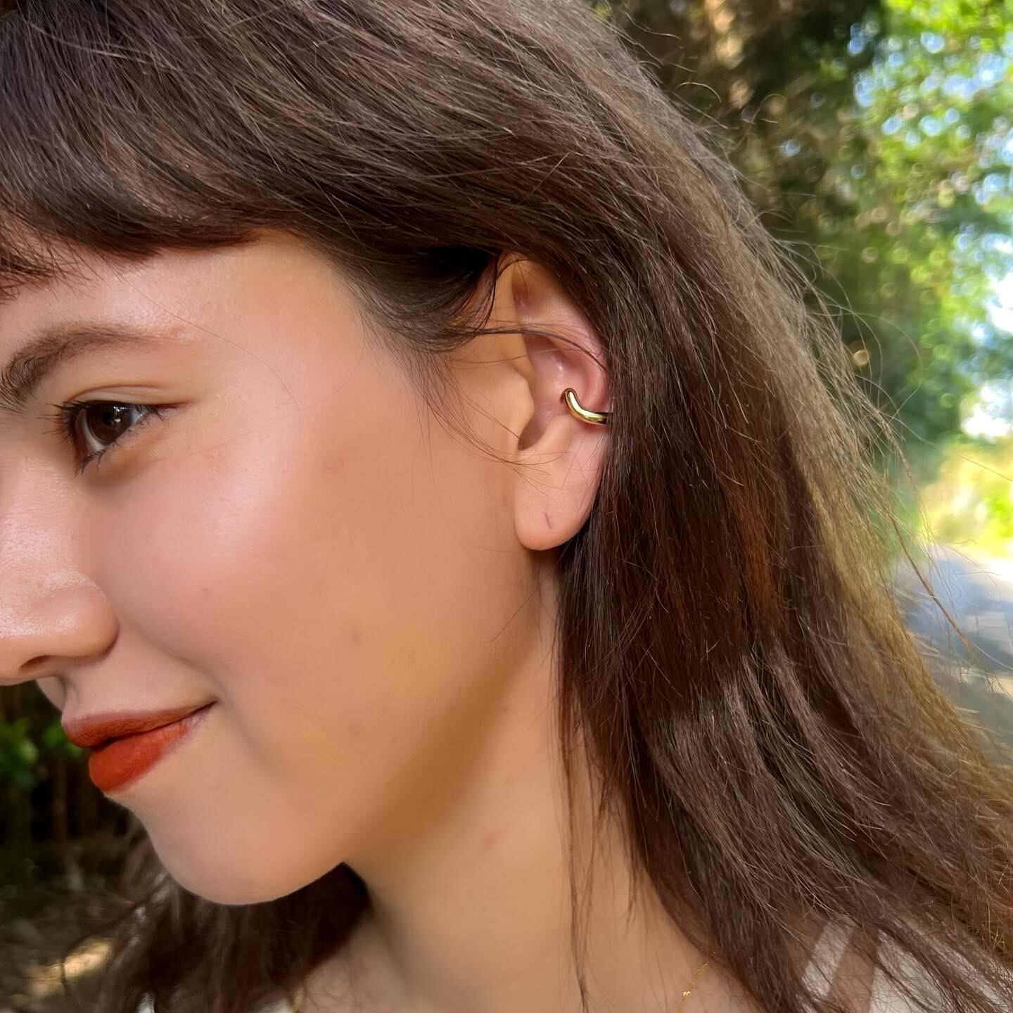 ピアスやイヤリングと重ね付けもおすすめで、どんなアクセサリーとも合わせやすい万能イヤーカフです。