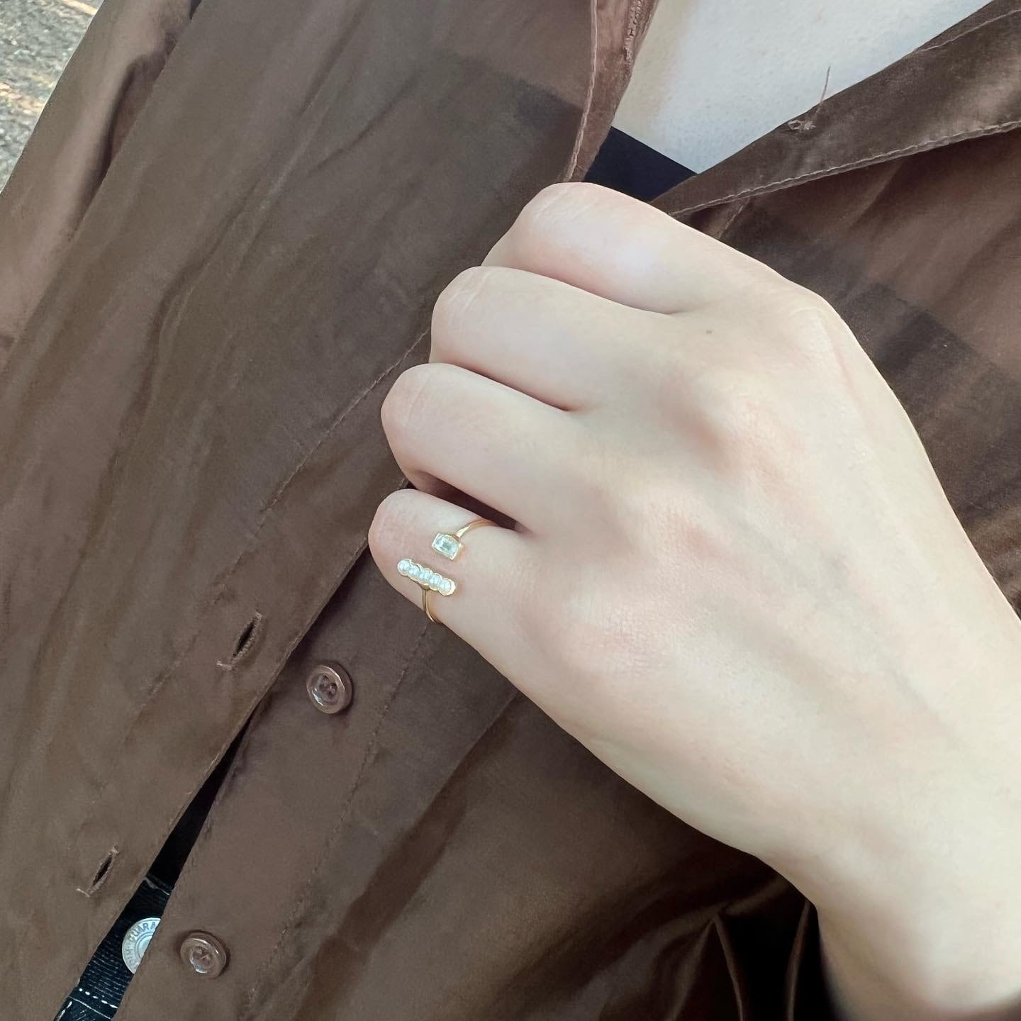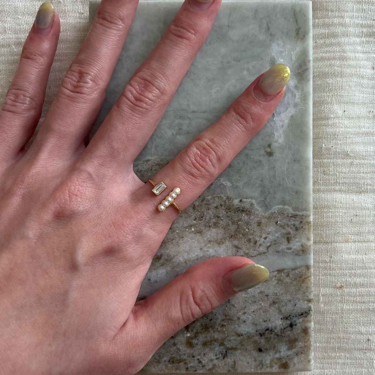 華奢なフォークリングと小さめサイズのパール、クリスタルが指先を美しく魅せてくれるアイテムです。