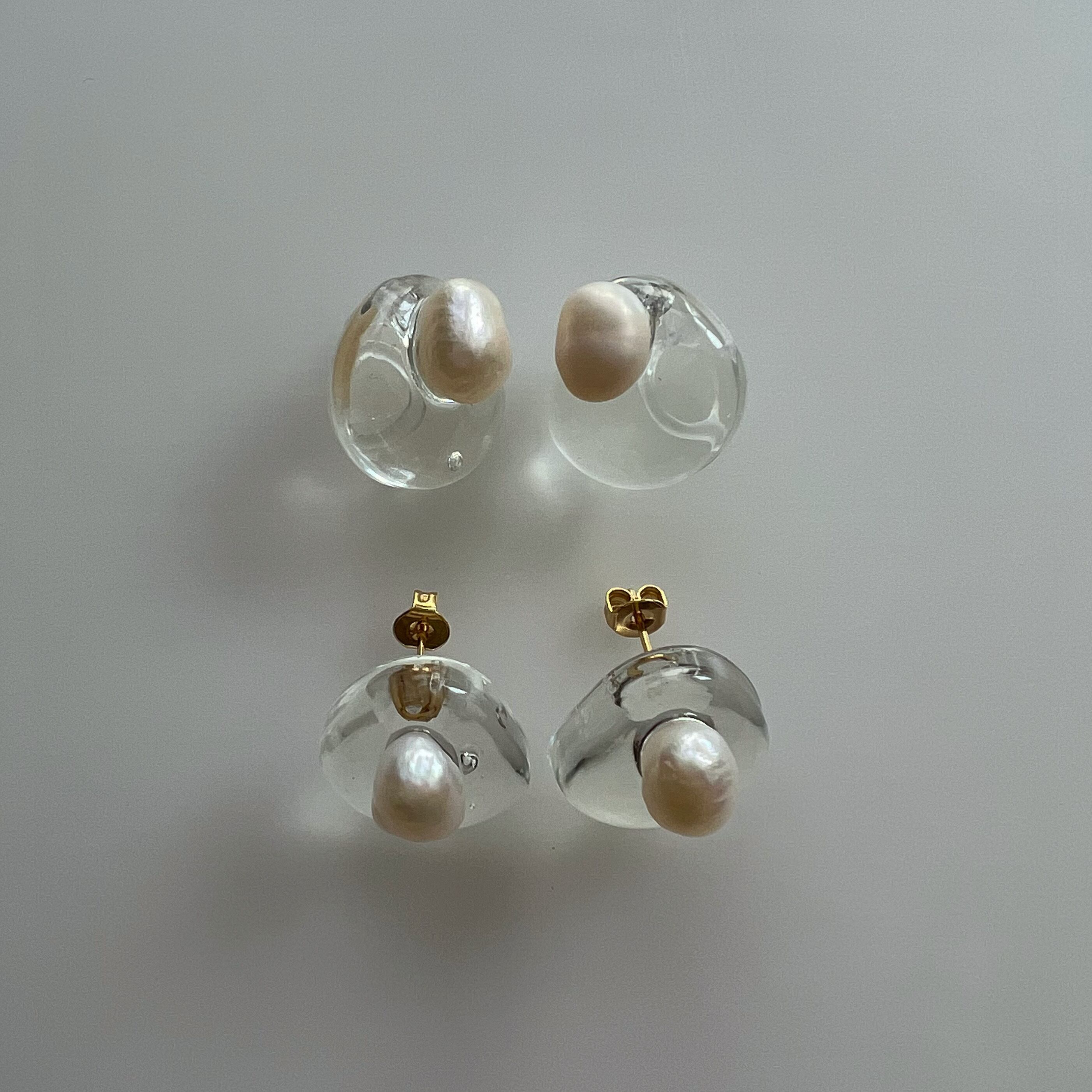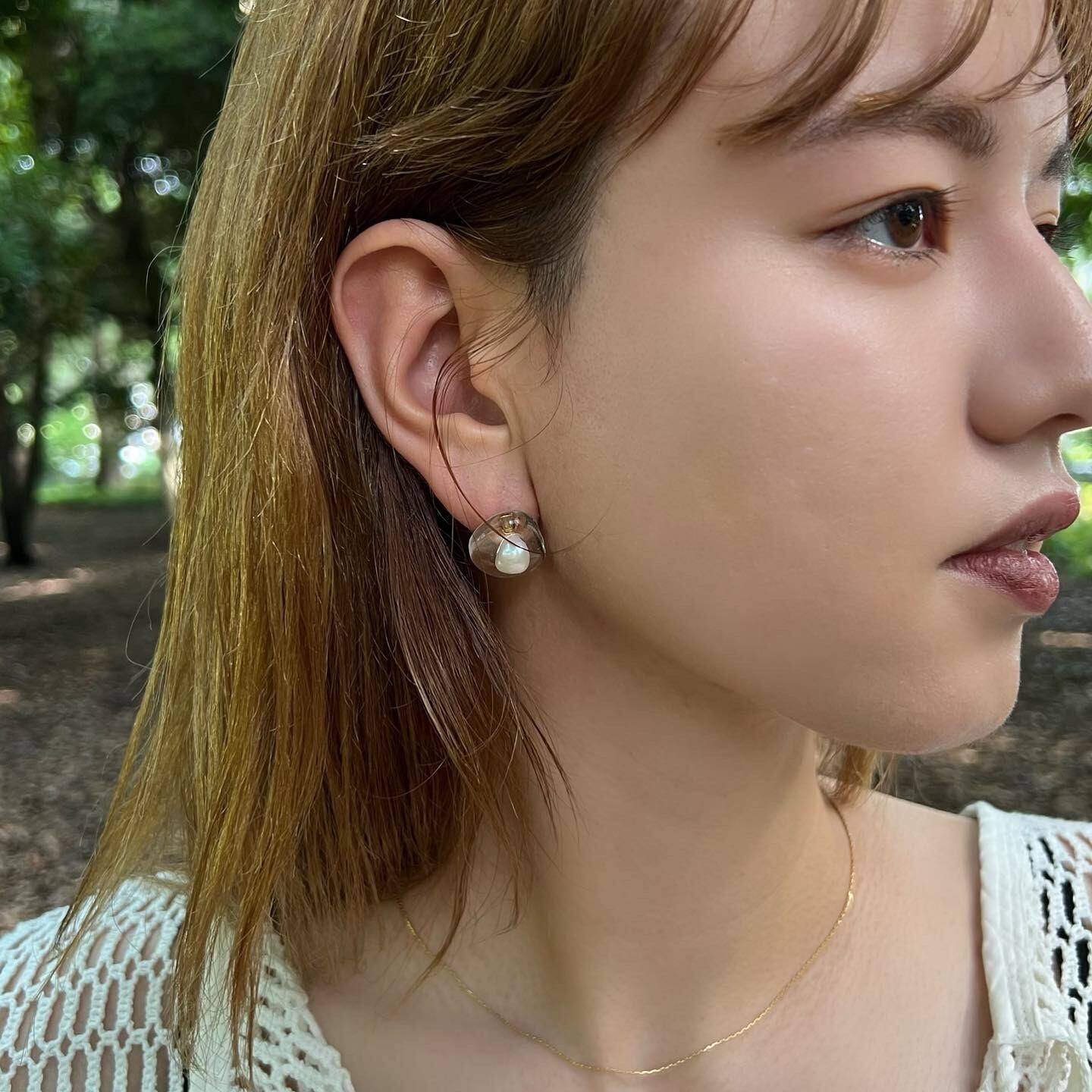 耳元でコンパクトにまとまりつつも、クリア素材とちゅるんとした淡水パールで夏らしい爽やかさも演出いたしました。