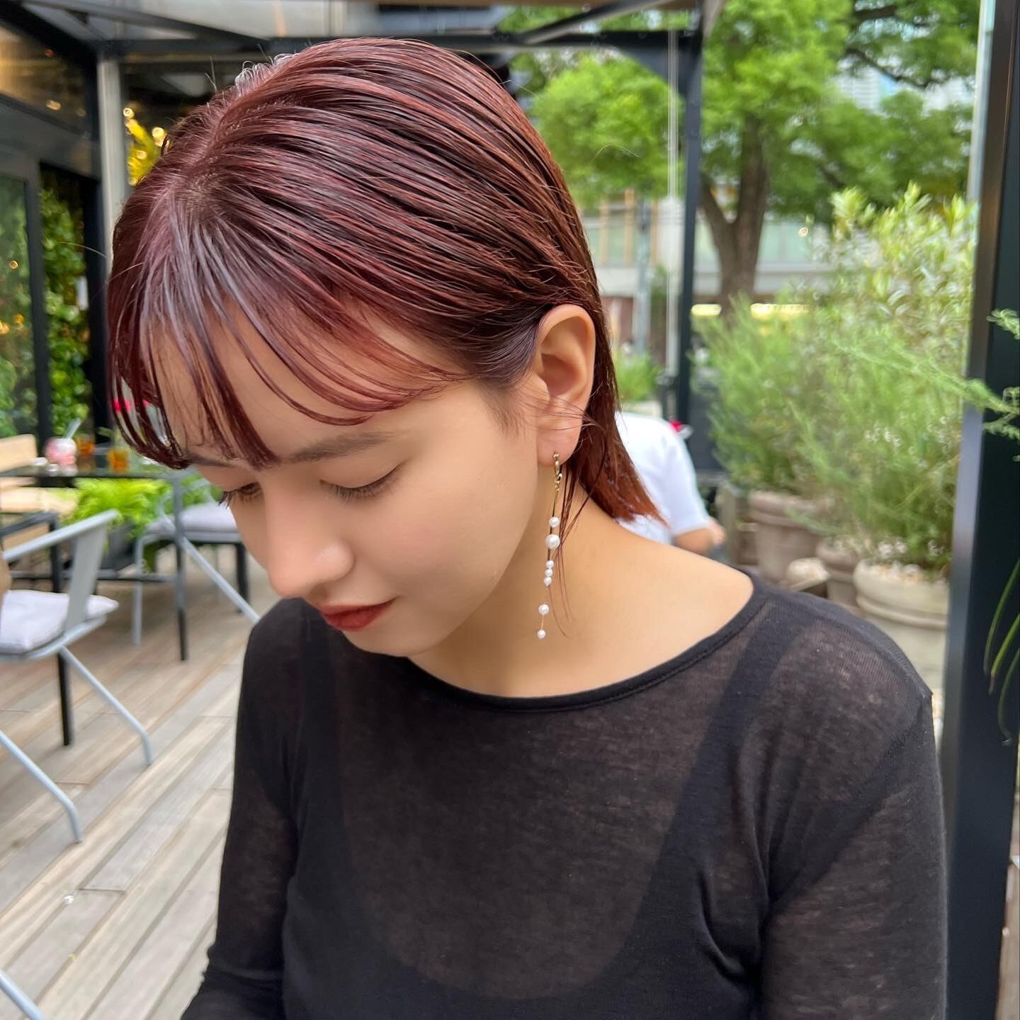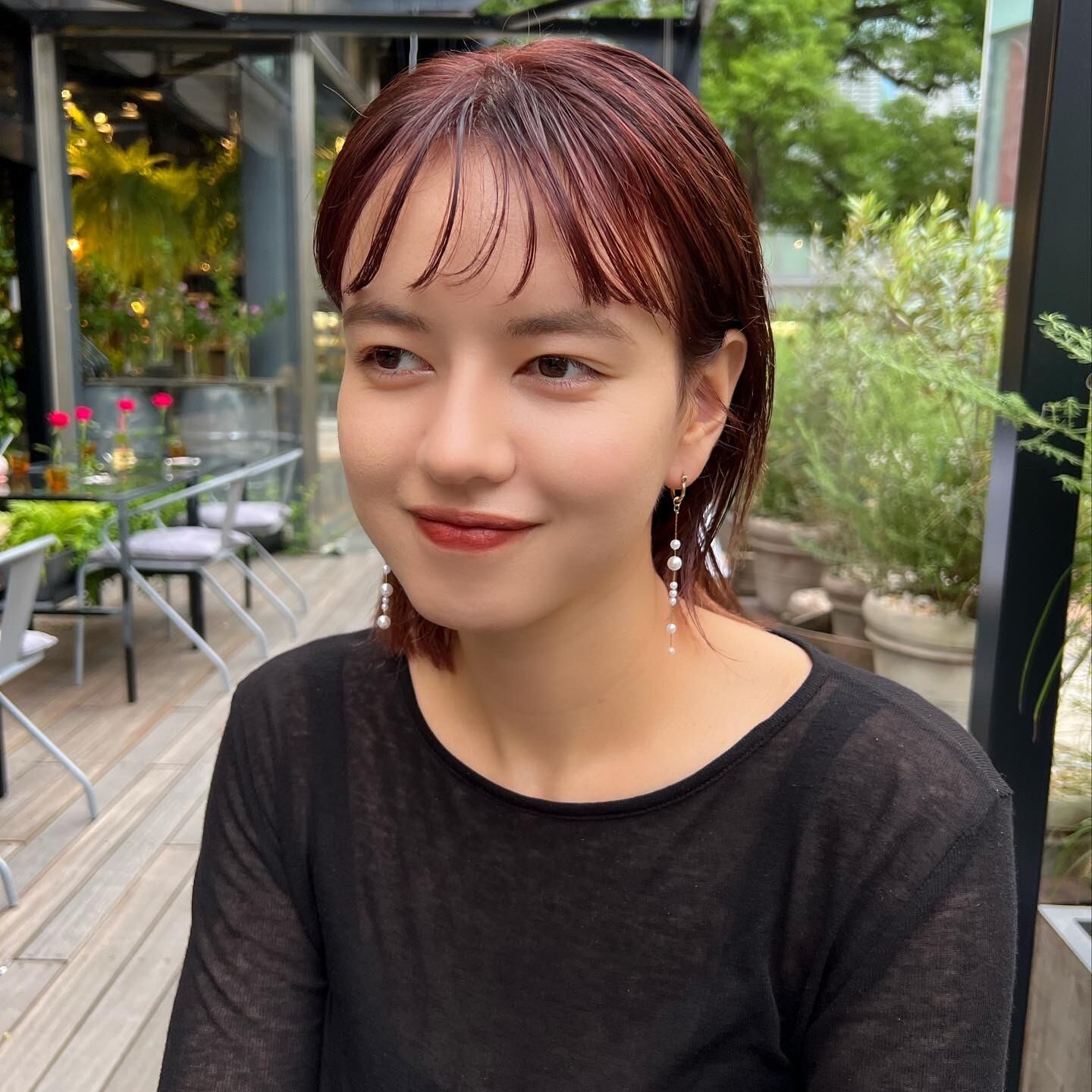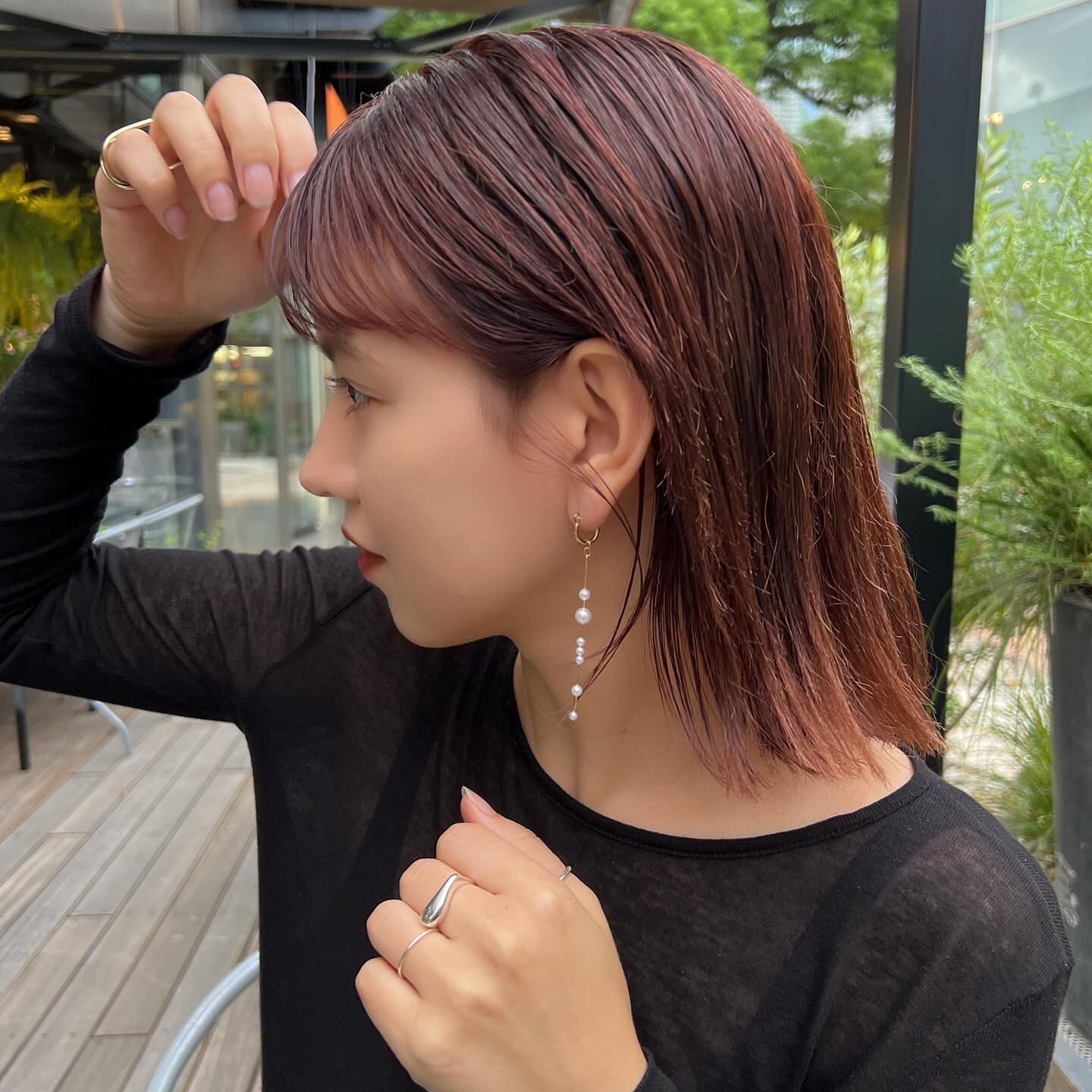 耳たぶの部分はフープになっており、モードな印象もプラスしました。