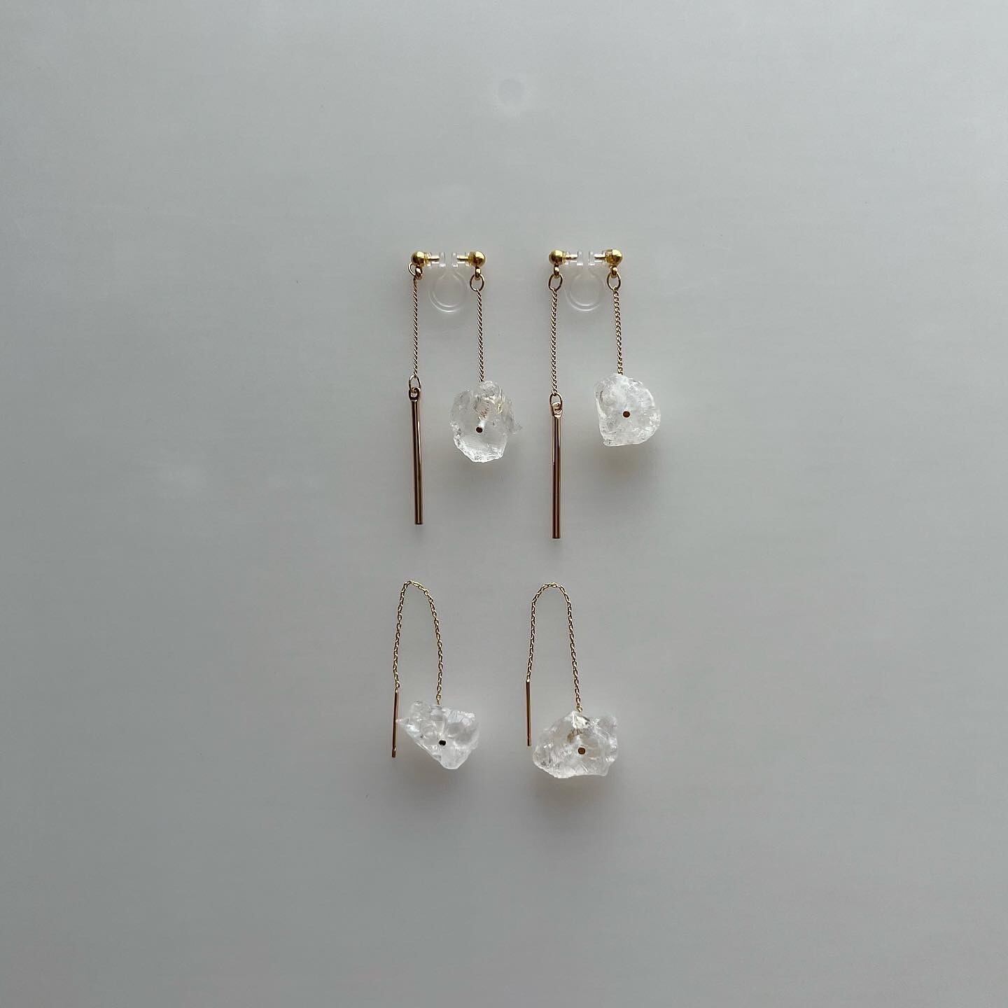 素材: イヤリング/水晶、真鍮(K18コーティング)、樹脂