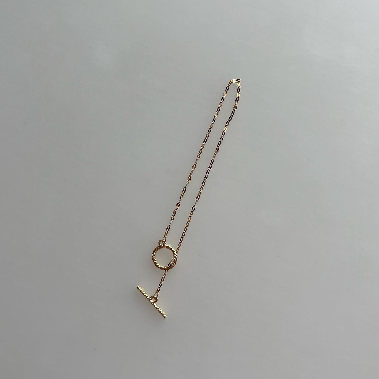 角度によってきらっと輝くチェーンは、小ぶりでシンプルなデザインながらも光で印象をプラスしてくれます。
