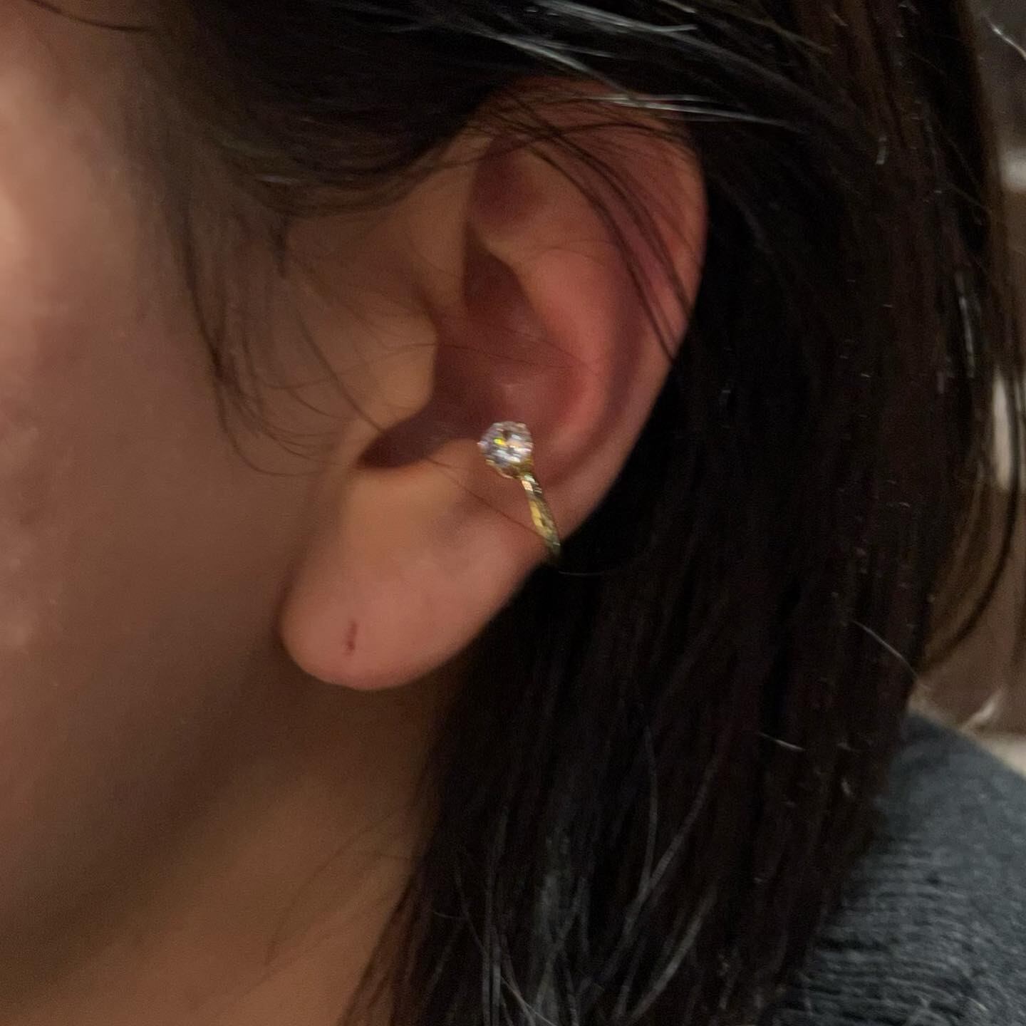 光に当たると輝くのはもちろん、少し暗めな場所でもしっかり輝きを放ってくれるので、ディナーデートなどにも是非お召しいただきたいイヤーカフです。
