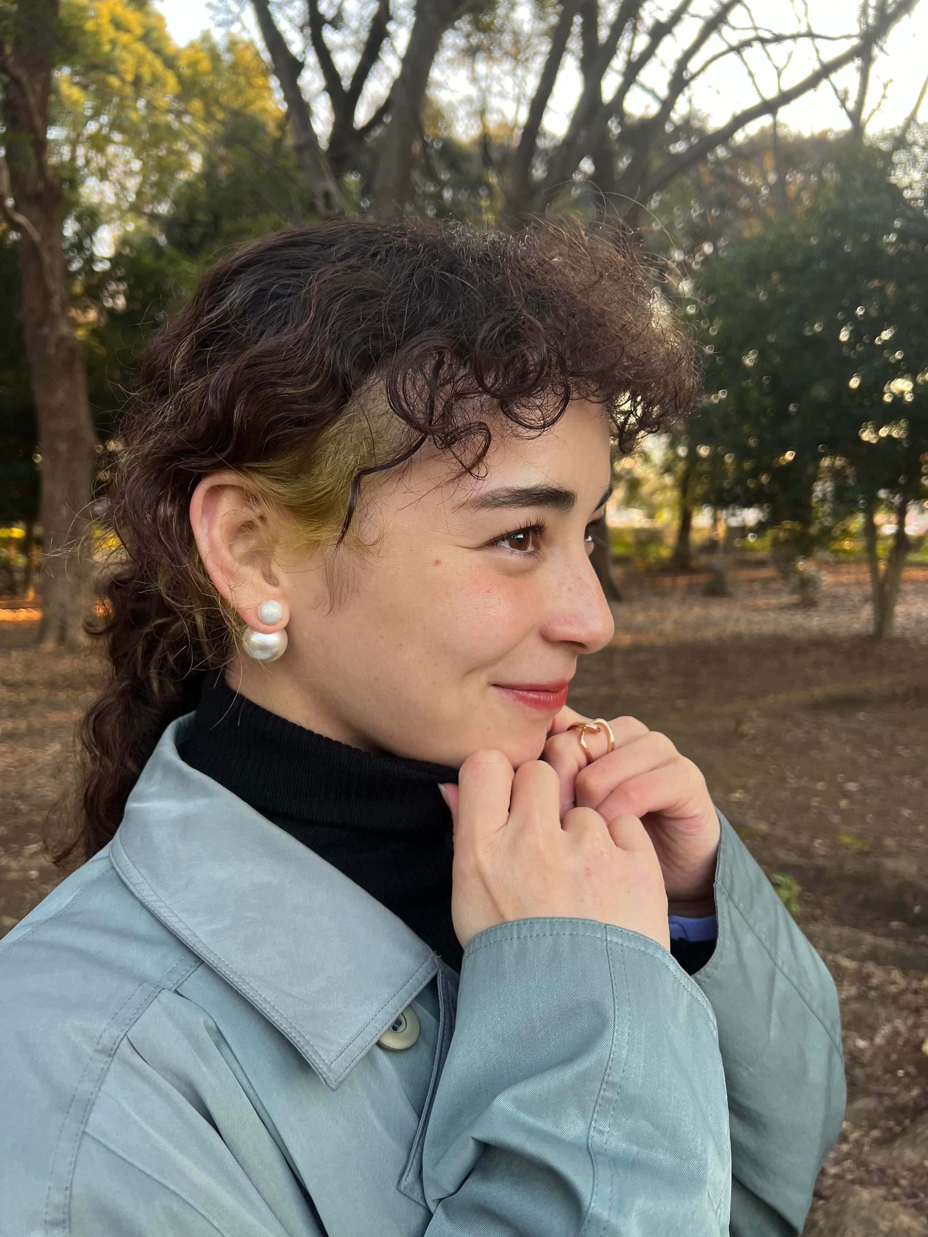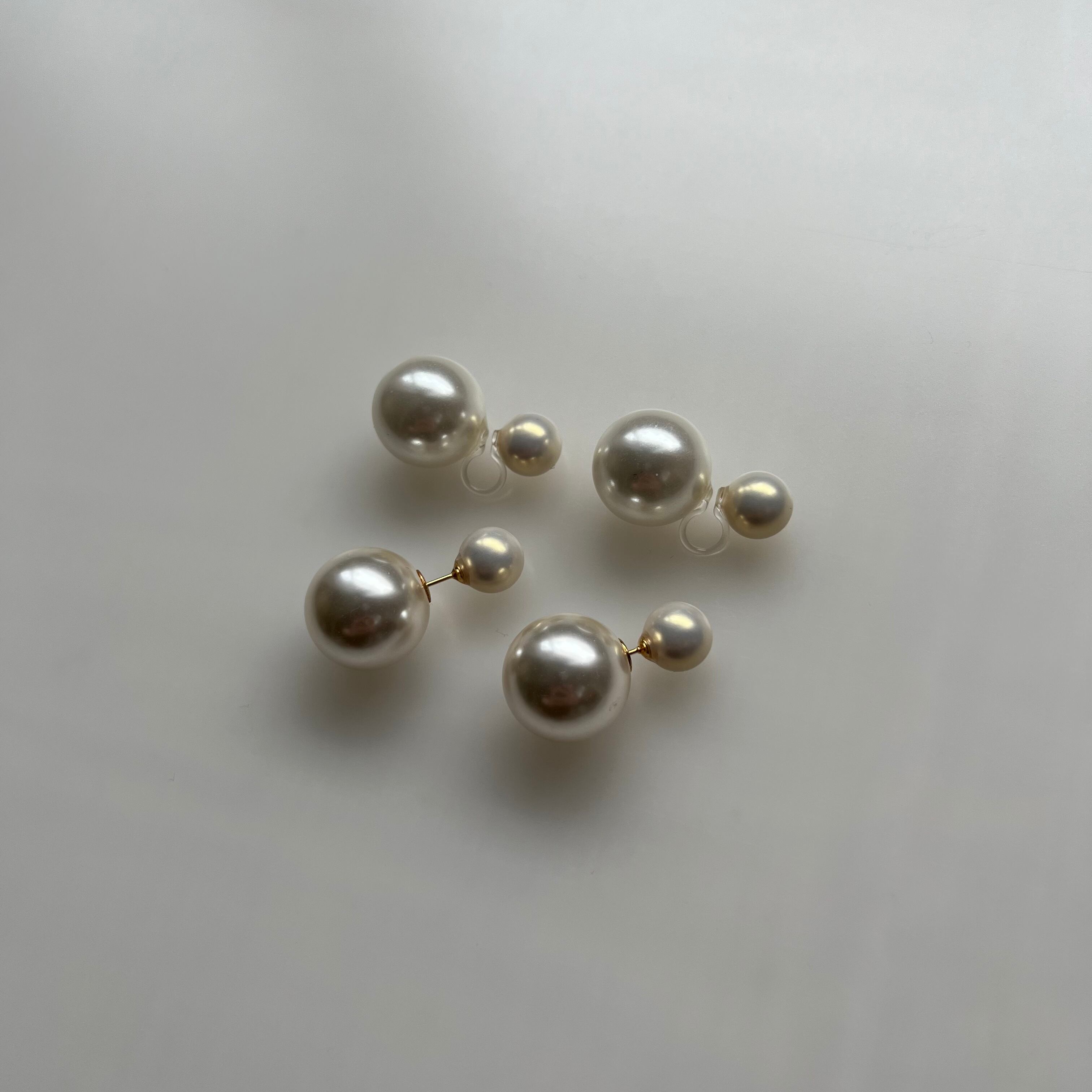 前後左右どこから見てもパールの華やかさを魅せることができ、気分によって前後のパールのサイズを使い分けすることができます。
