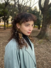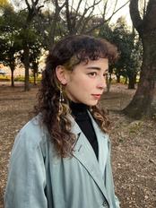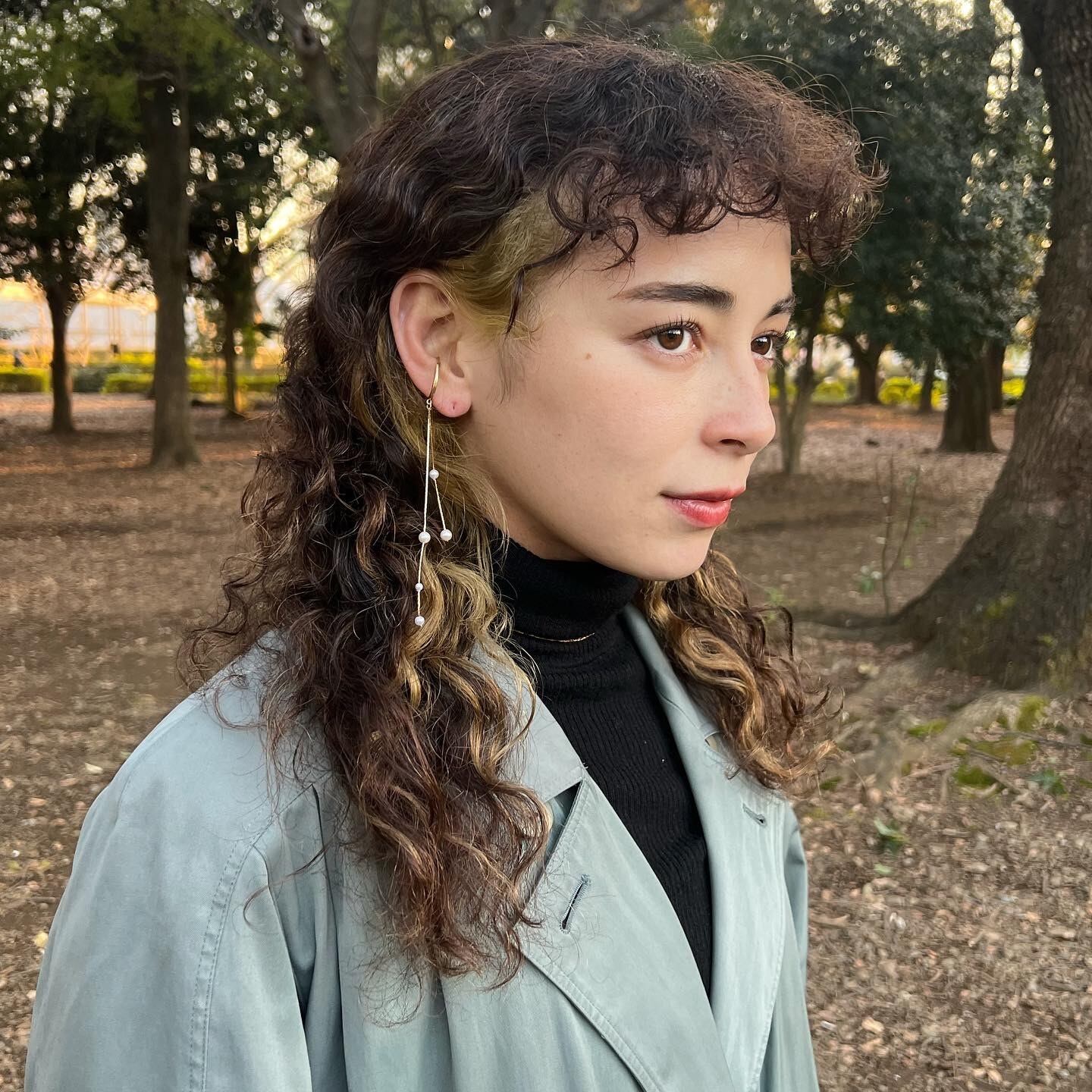 耳から髪の毛に沿って垂れ落ちる上品なイヤーカフ。
