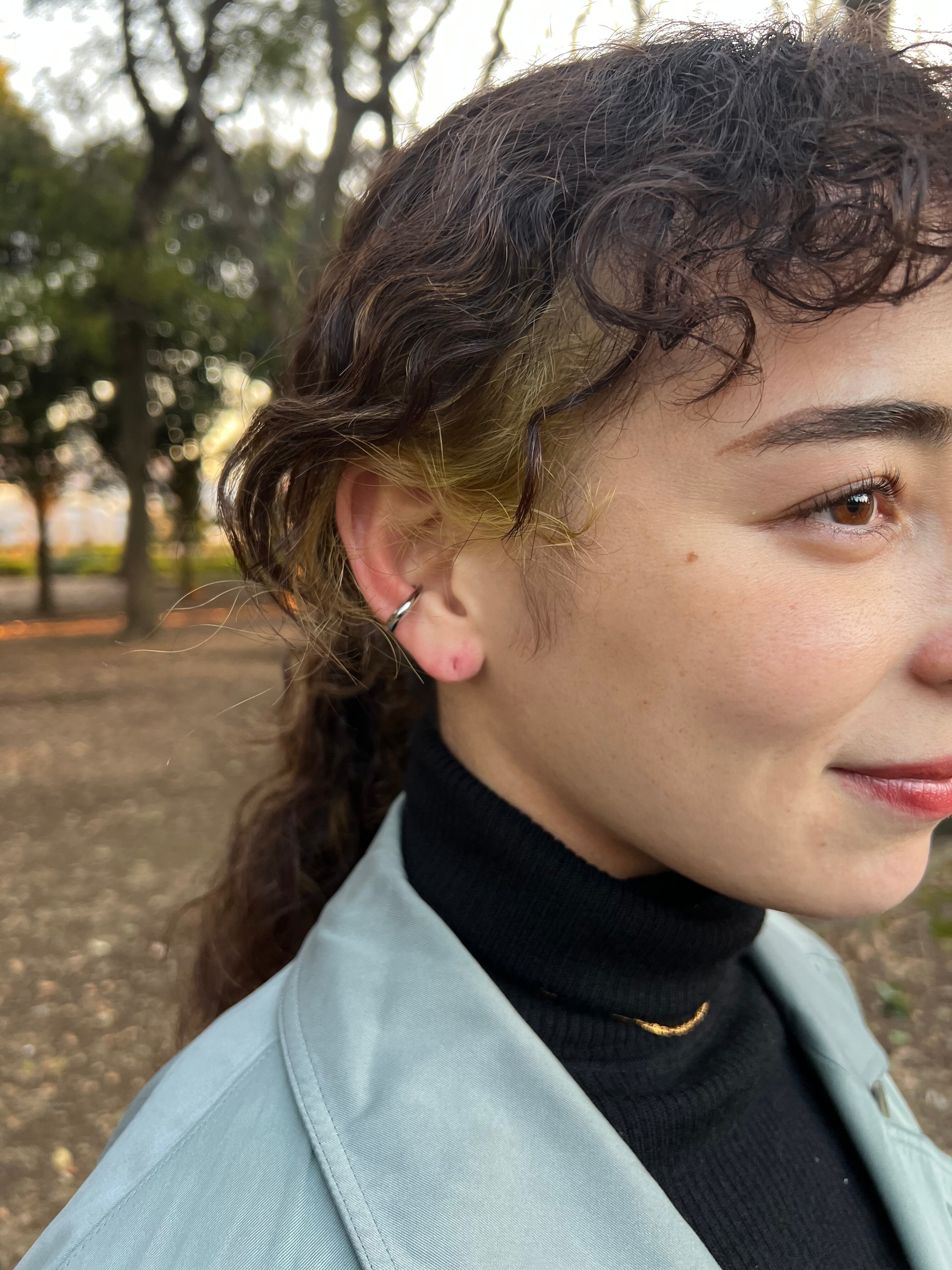 シンプルでどんなコーディネートとも合わせやすいイヤーカフ。