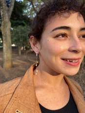 素材: イヤリング/樹脂、淡水パール、真鍮(K24コーティング)