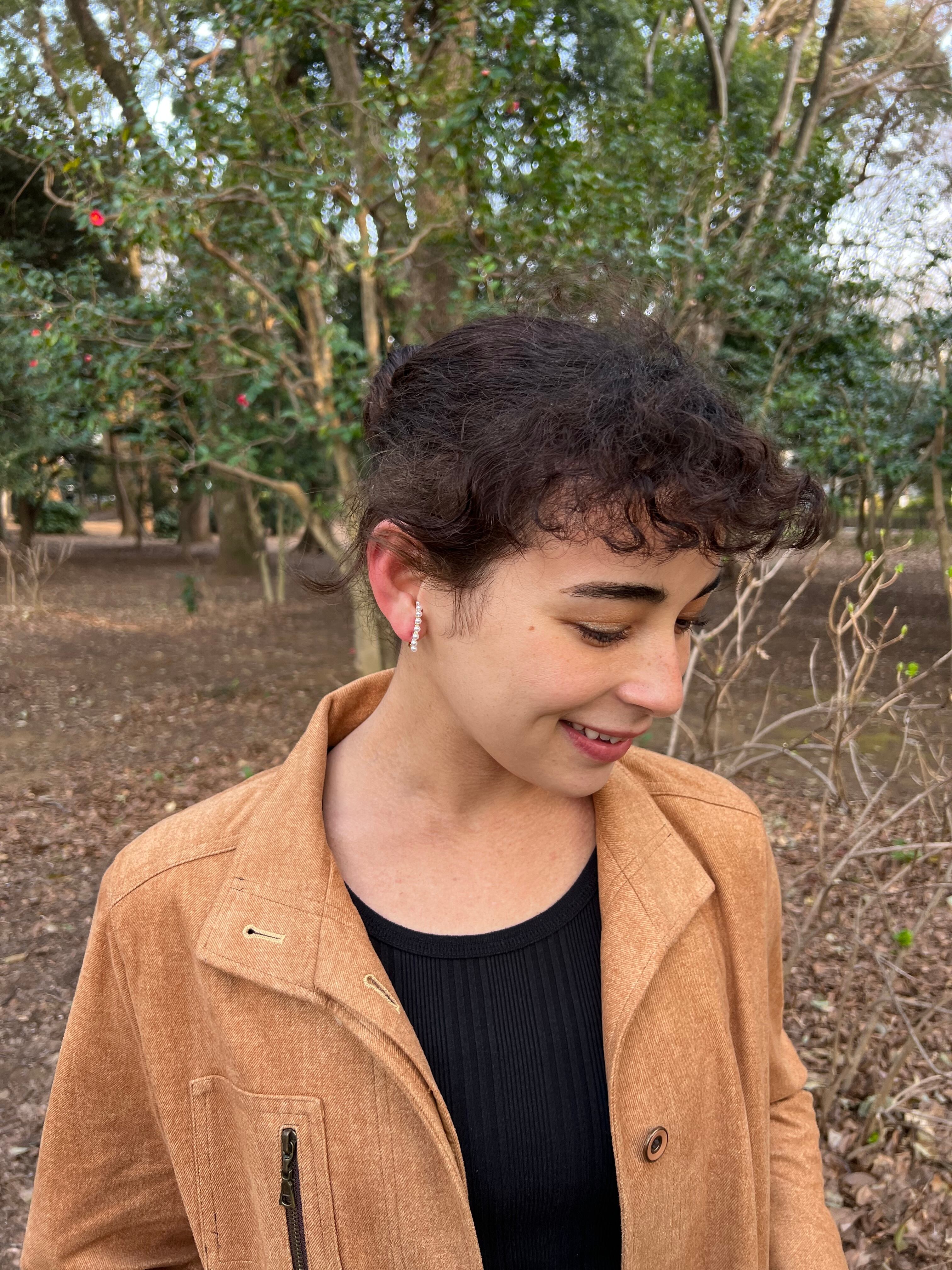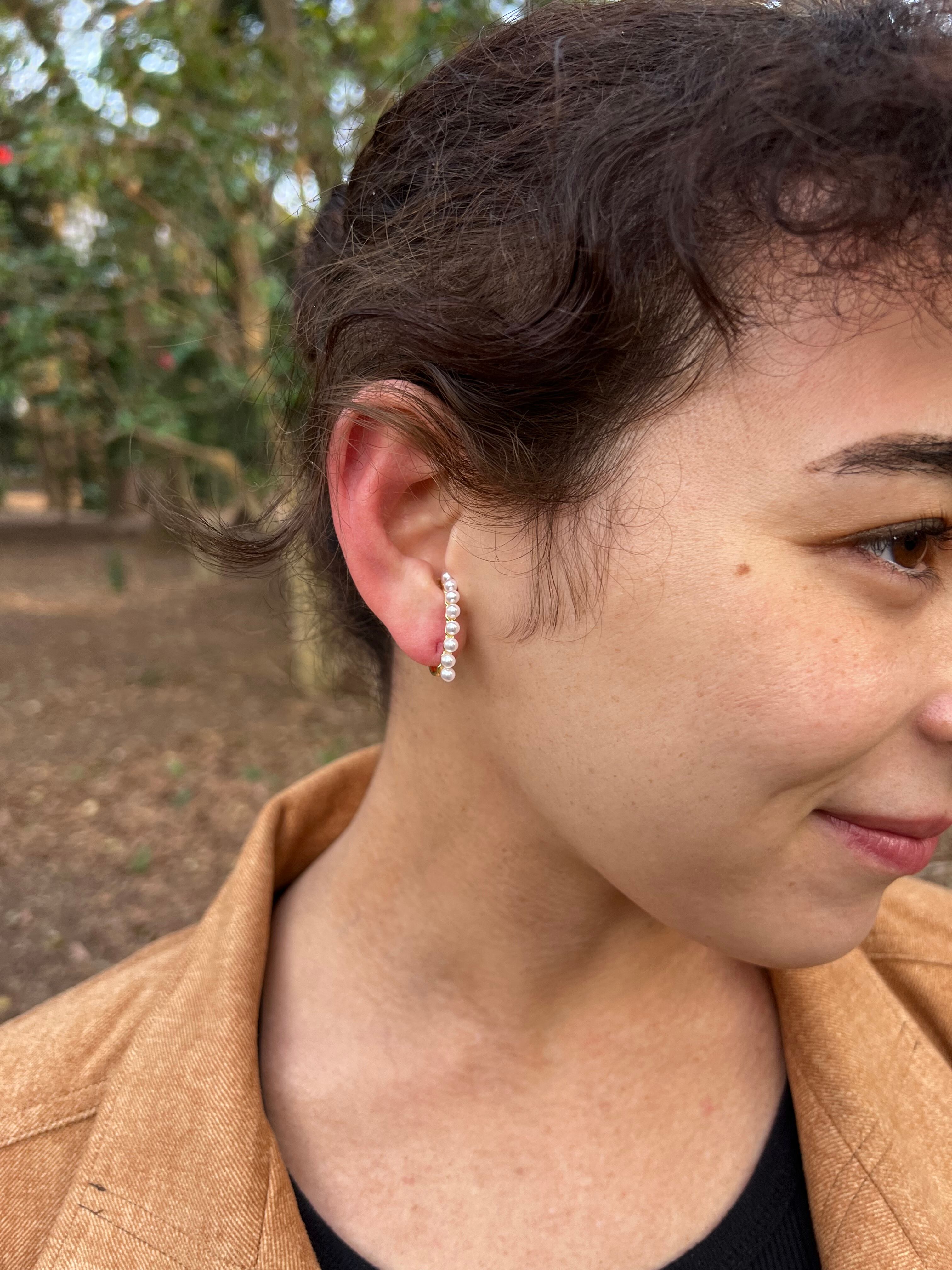 パールが縦に連なった耳に引っ掛けるタイプのイヤークリップ。