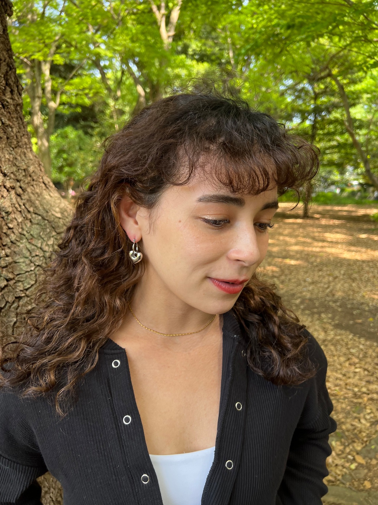 ヘアをアップスタイルにしても顔まわりで存在感を出してくれ、ちょっぴりキュートな印象に♡