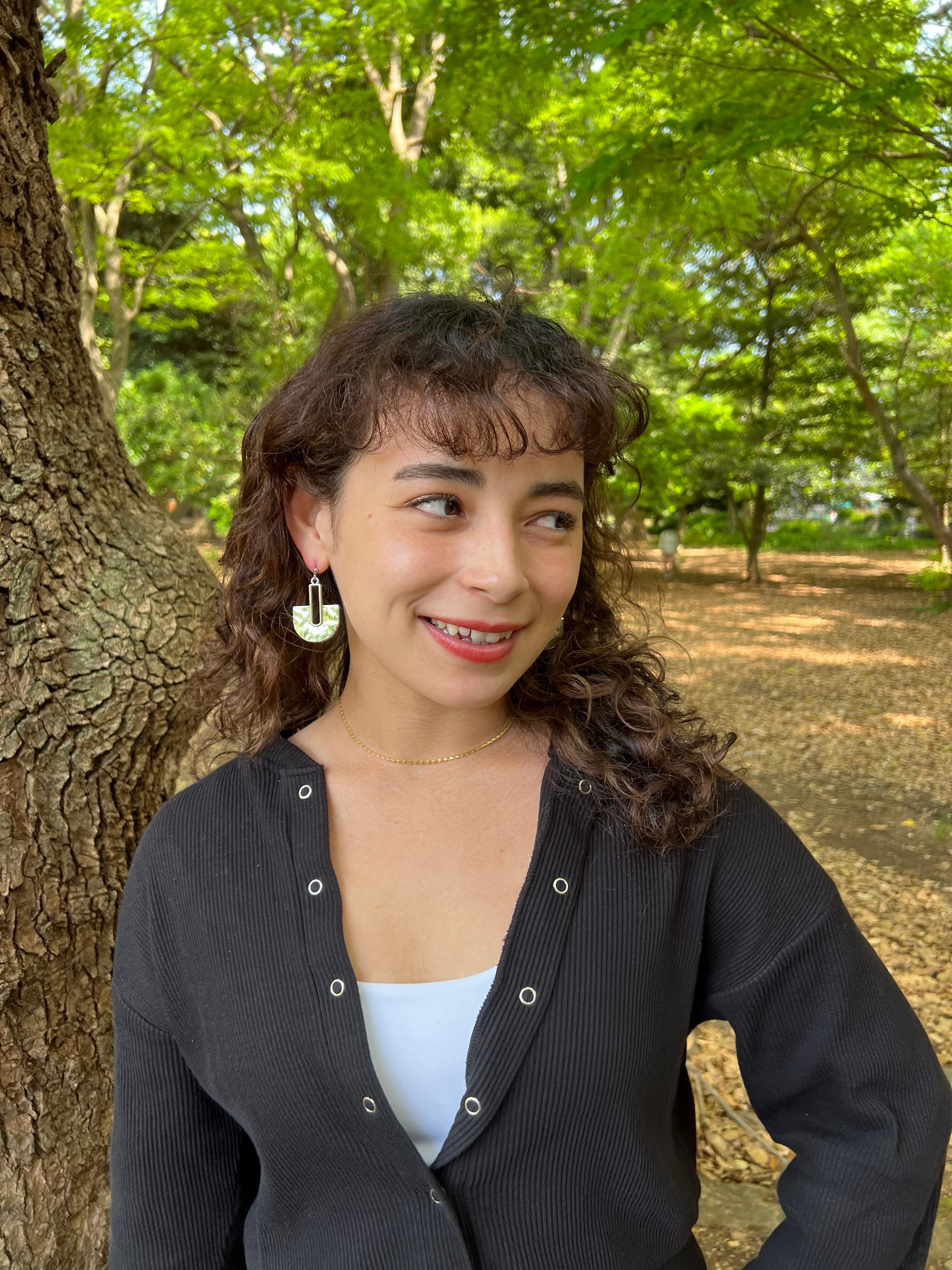 大ぶりながらも耳元に収まるサイズ感で、コーディネートのアクセントとなること間違いありません!