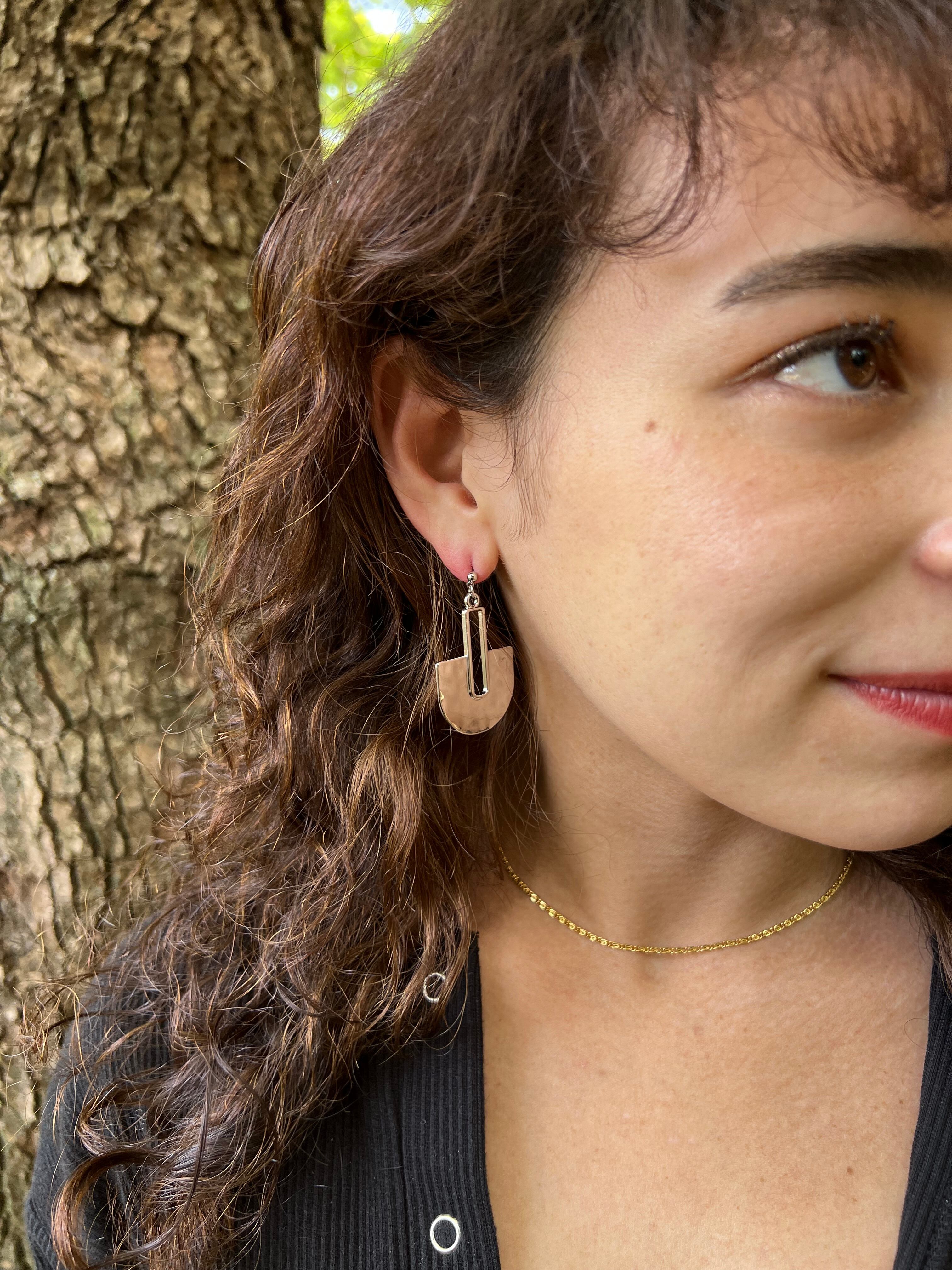 ちょっぴり個性的なシルエットの大ぶりアクセサリー。