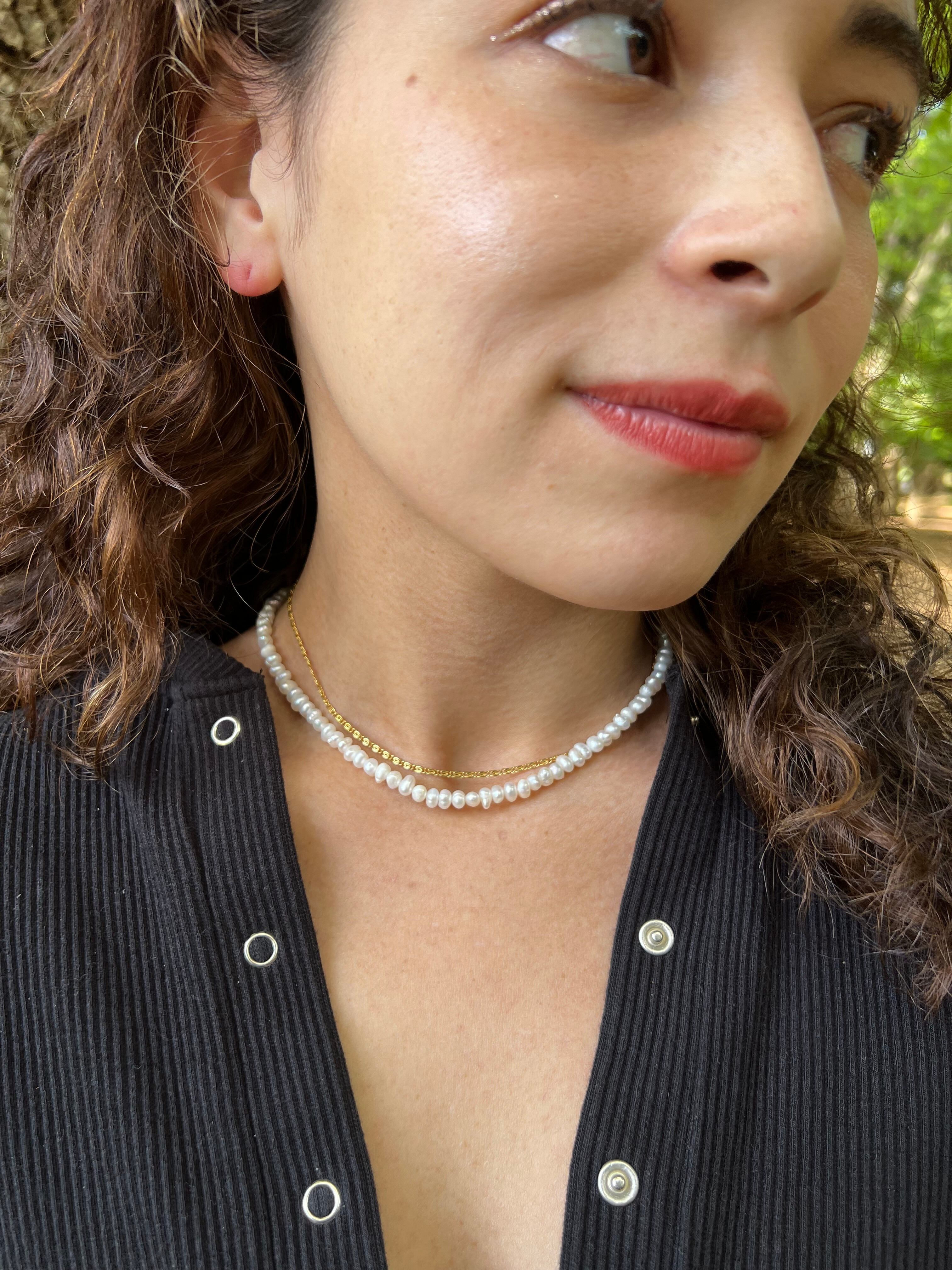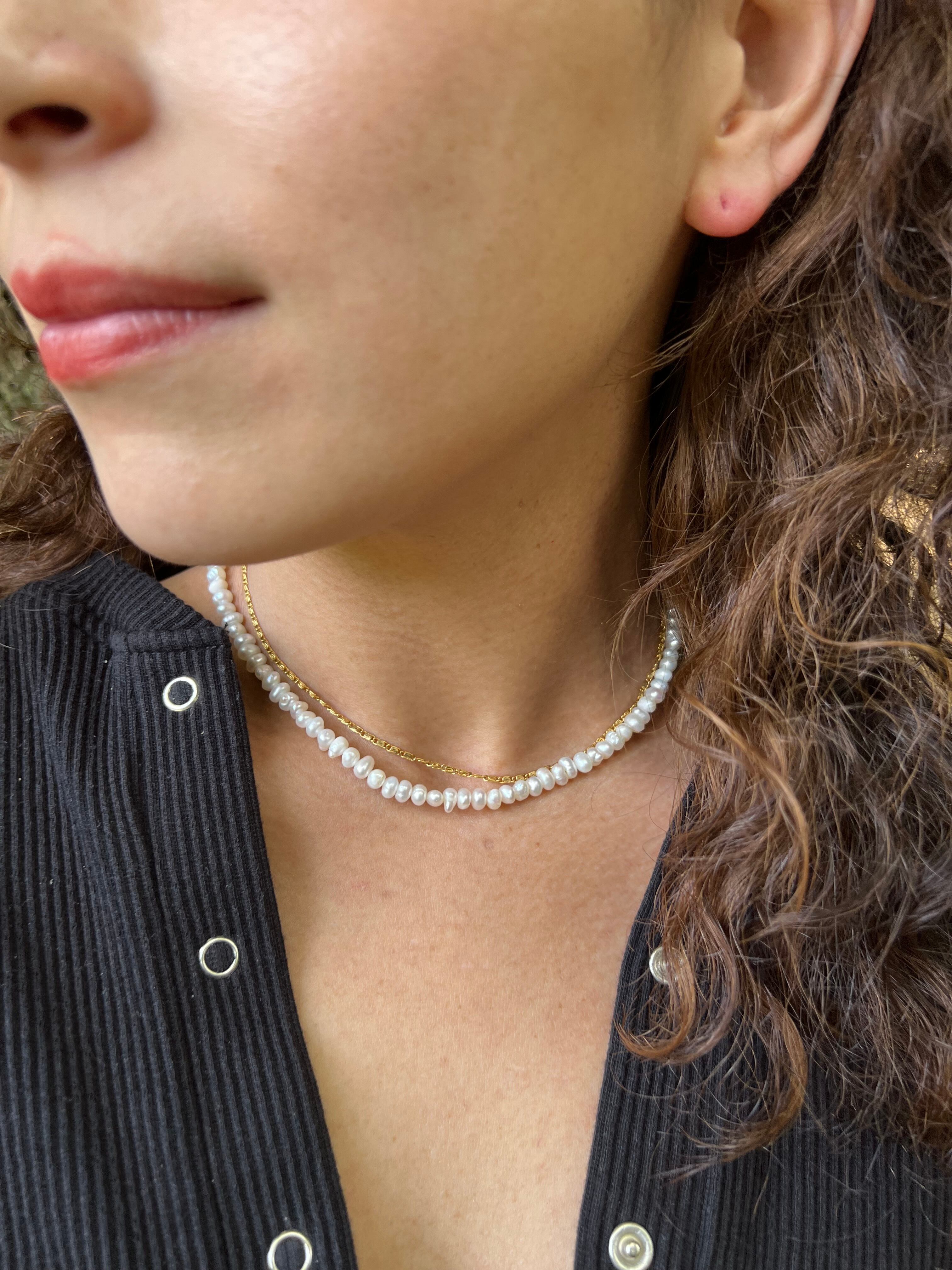 天然の淡水パールをふんだんに使用したネックレス。