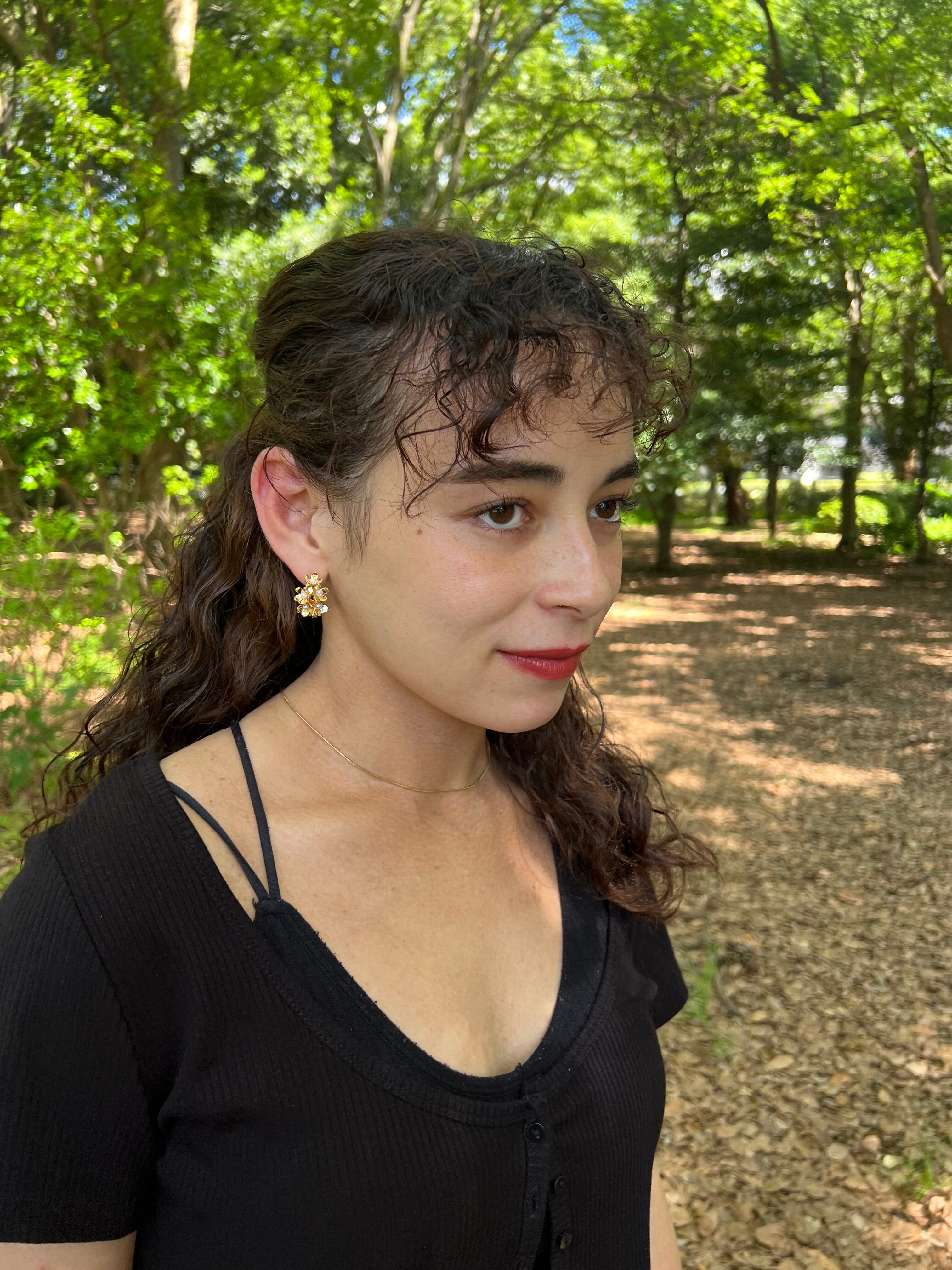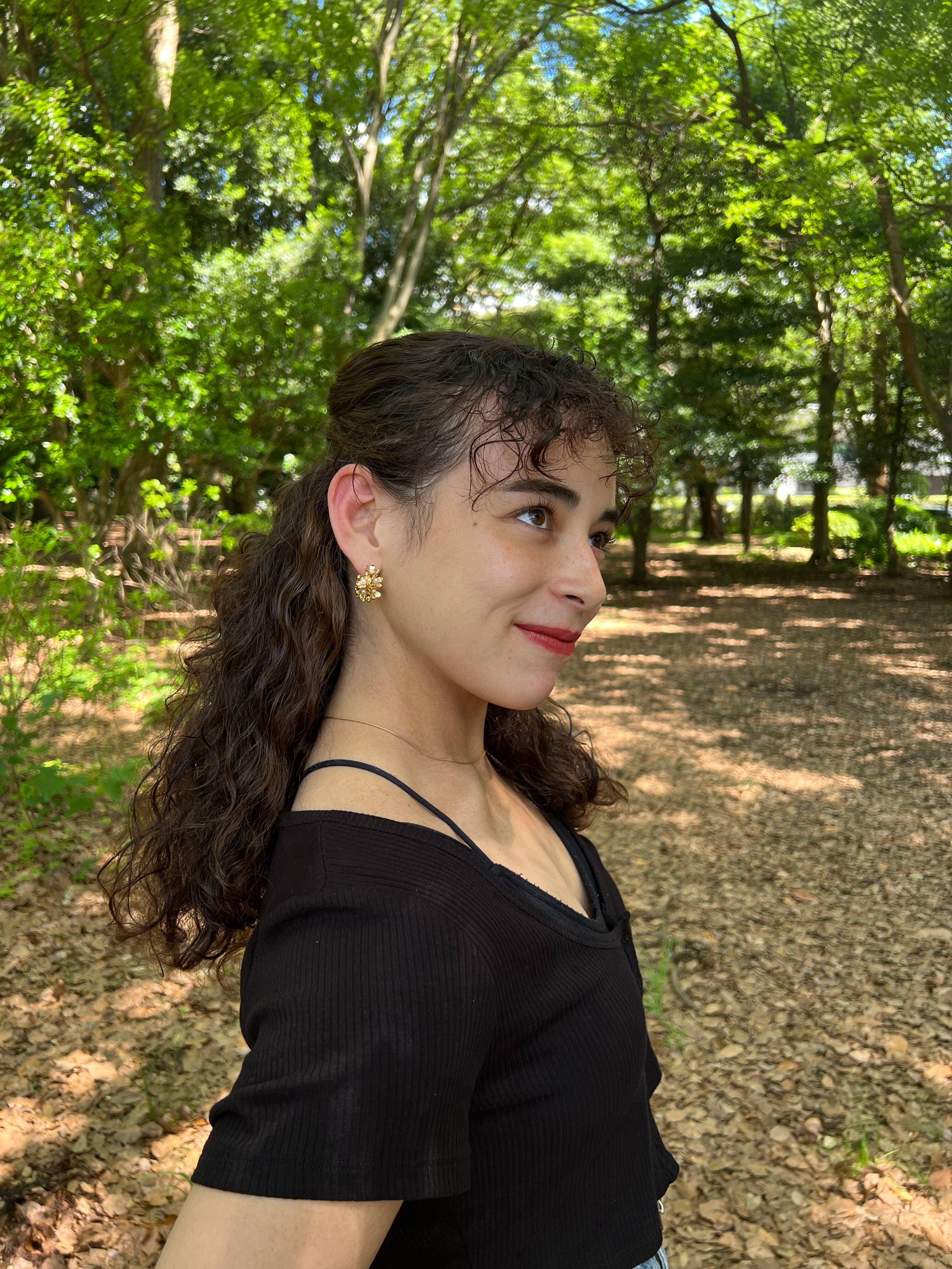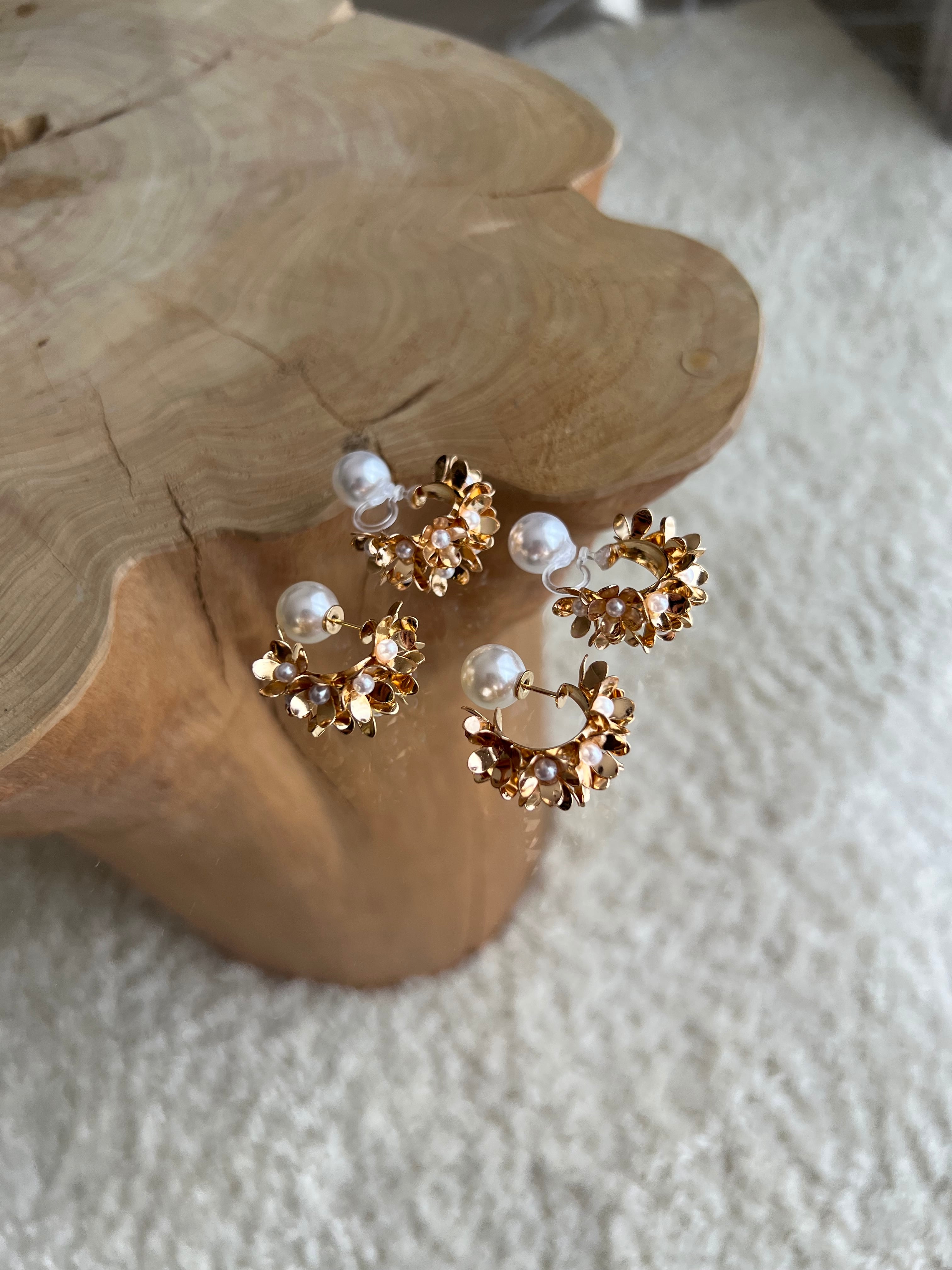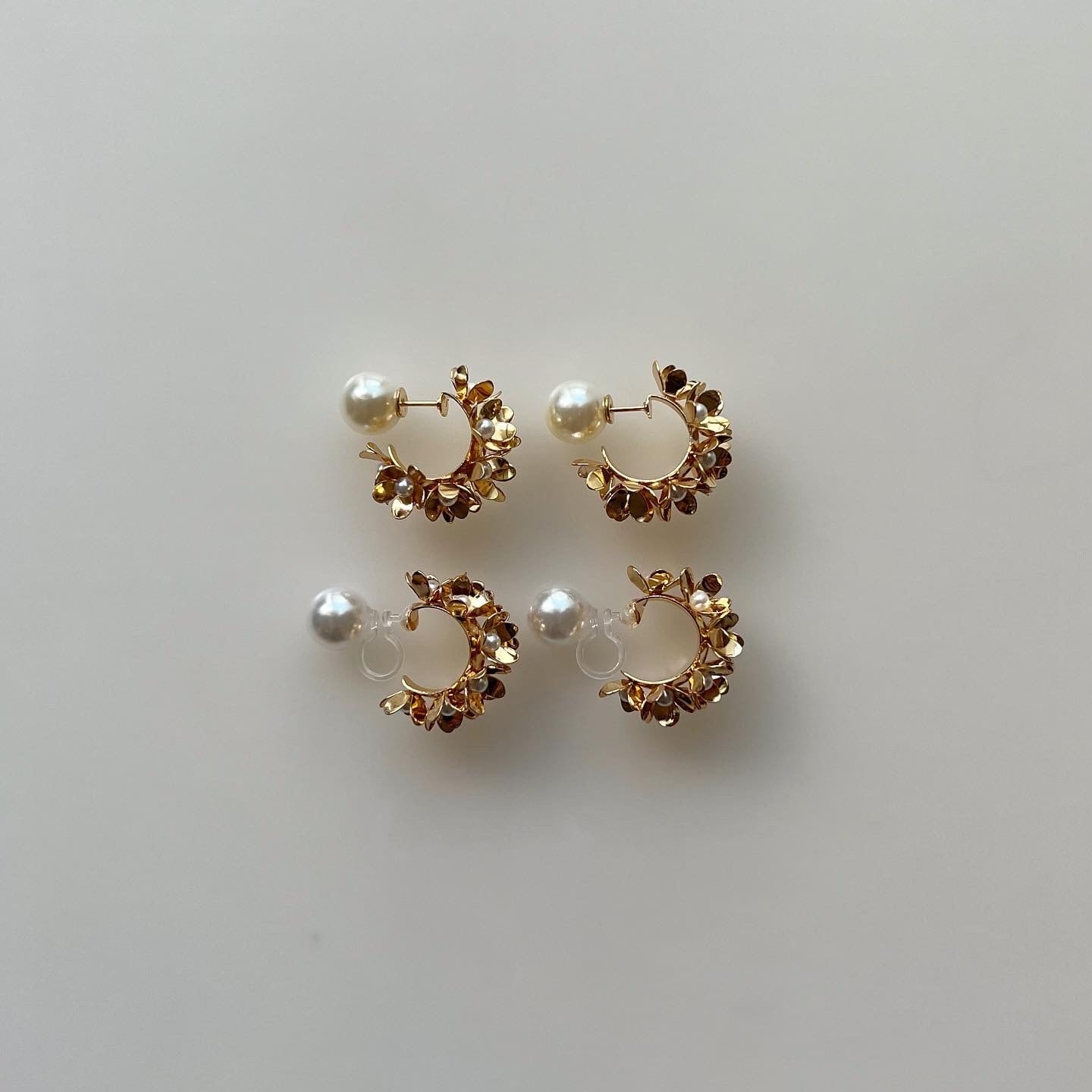 イヤリングは後ろの部分、ピアスはキャッチをパールにすることでどの角度から見ても美しいシルエットになっております。