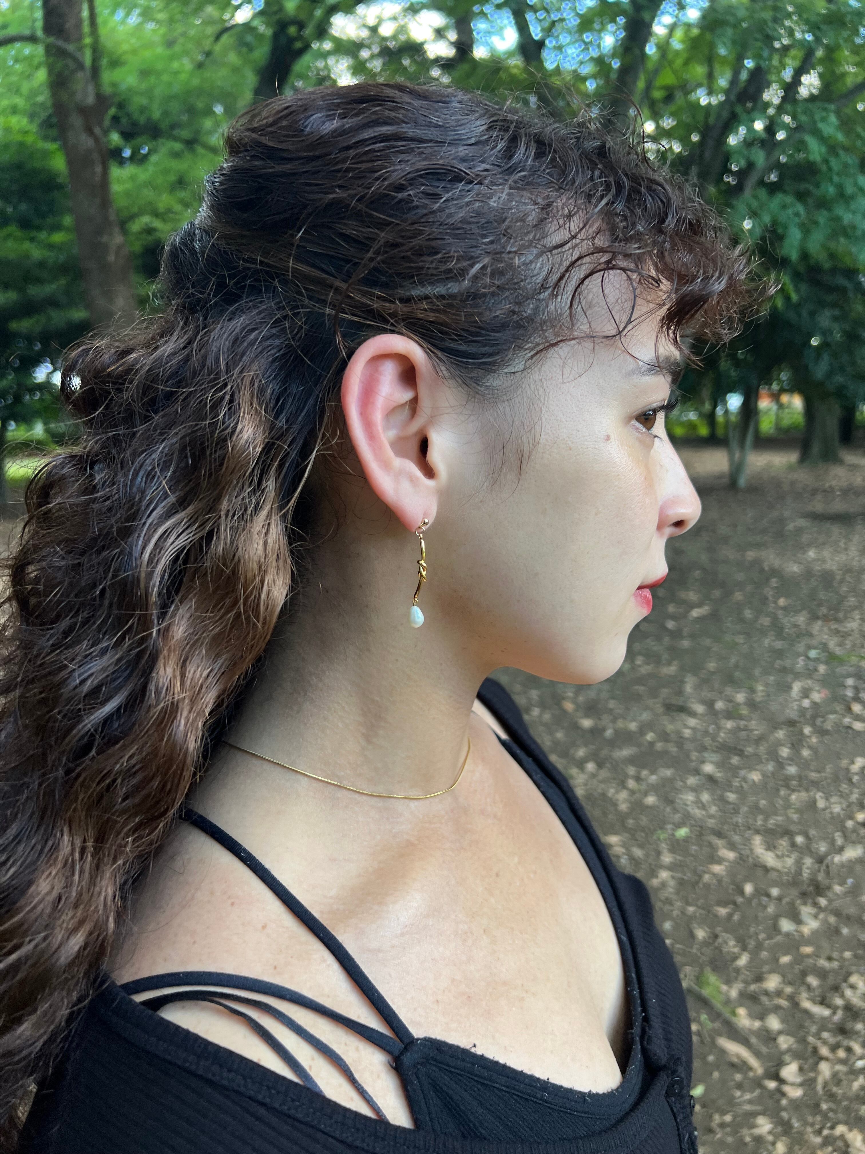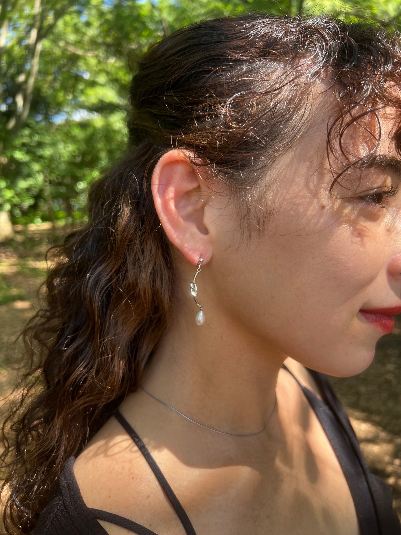 下の部分には雫型の天然淡水パールを使用し、動くたびにパールが揺れるように制作いたしました。