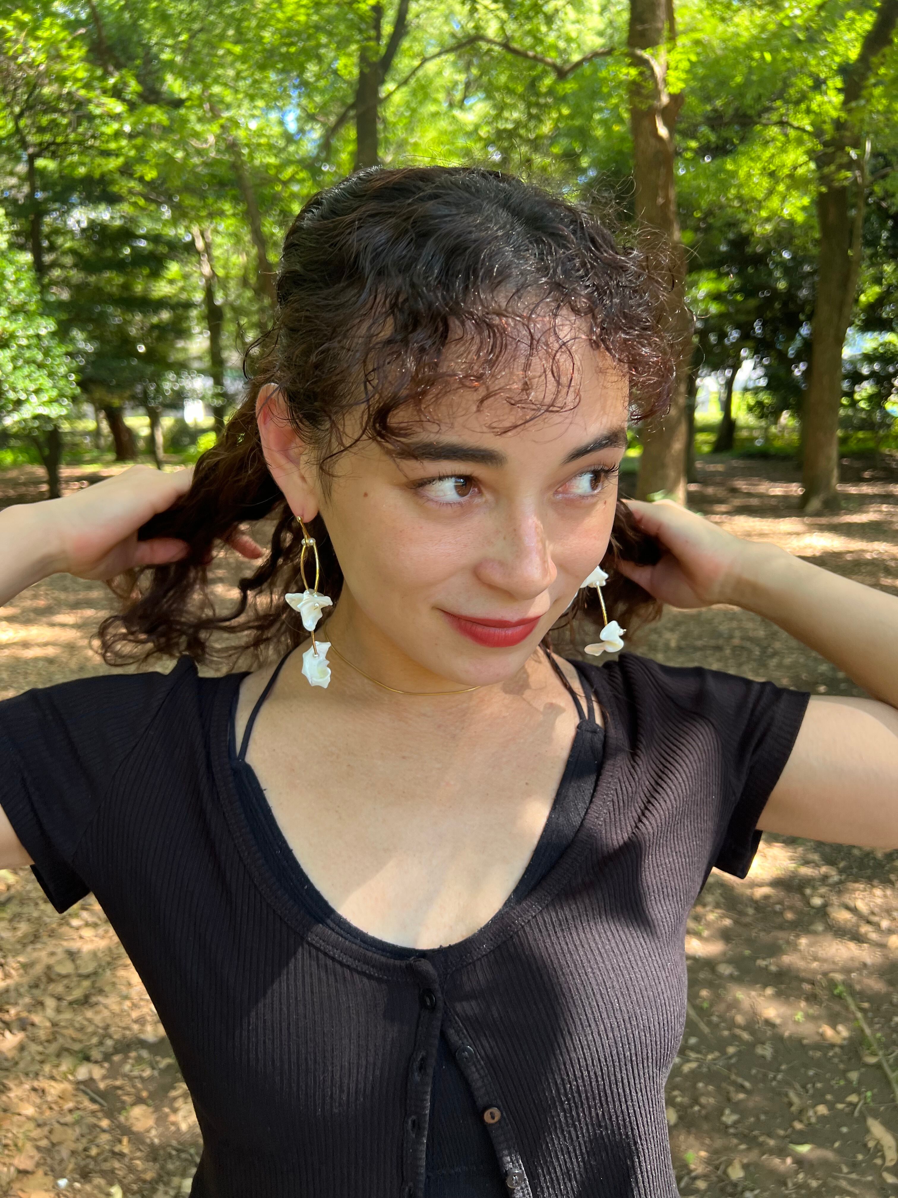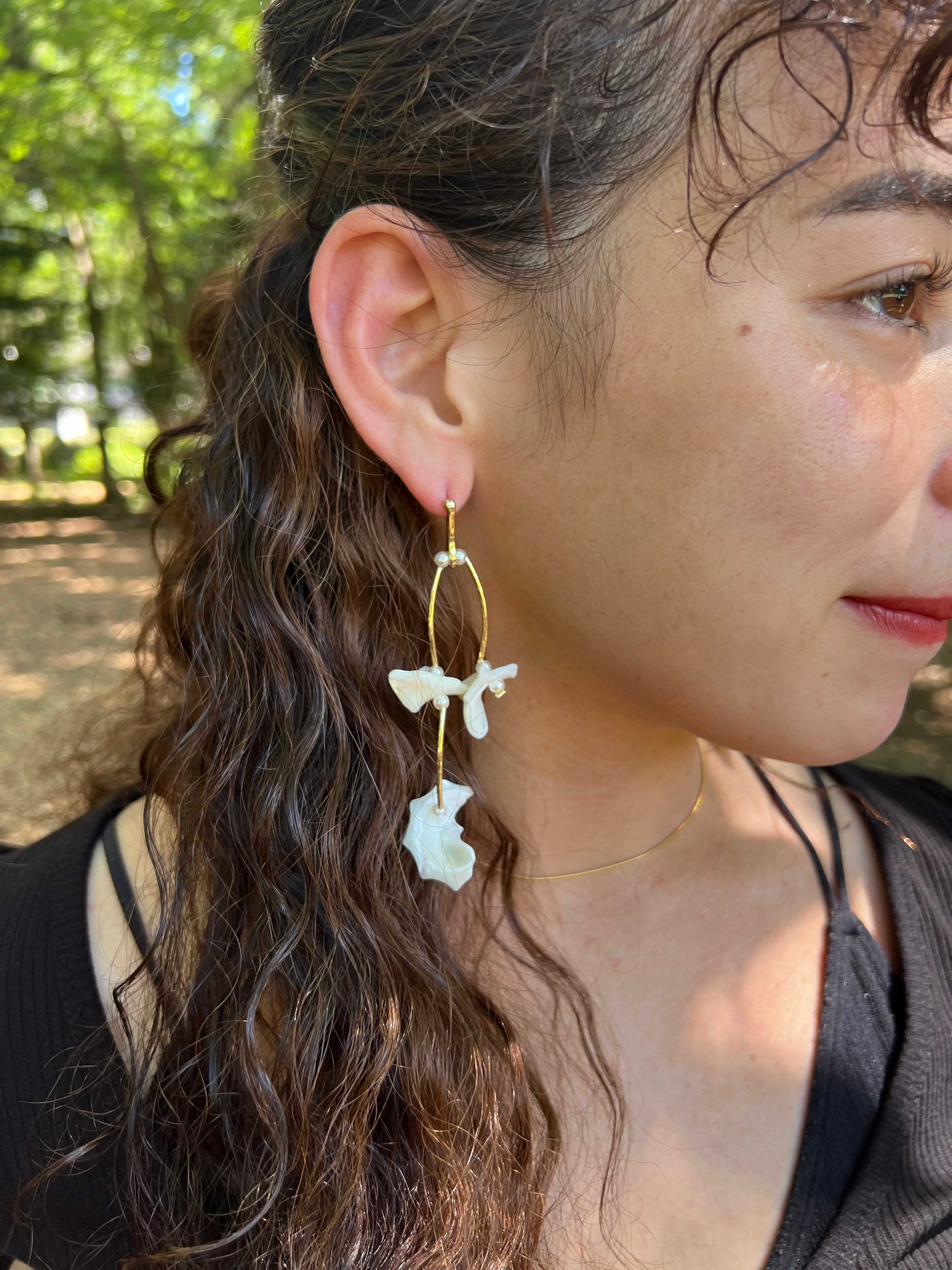 動くたびに大きく揺れ、光の反射できらっと輝くシェルが特別な日のワンポイントとして華を添えてくれます。