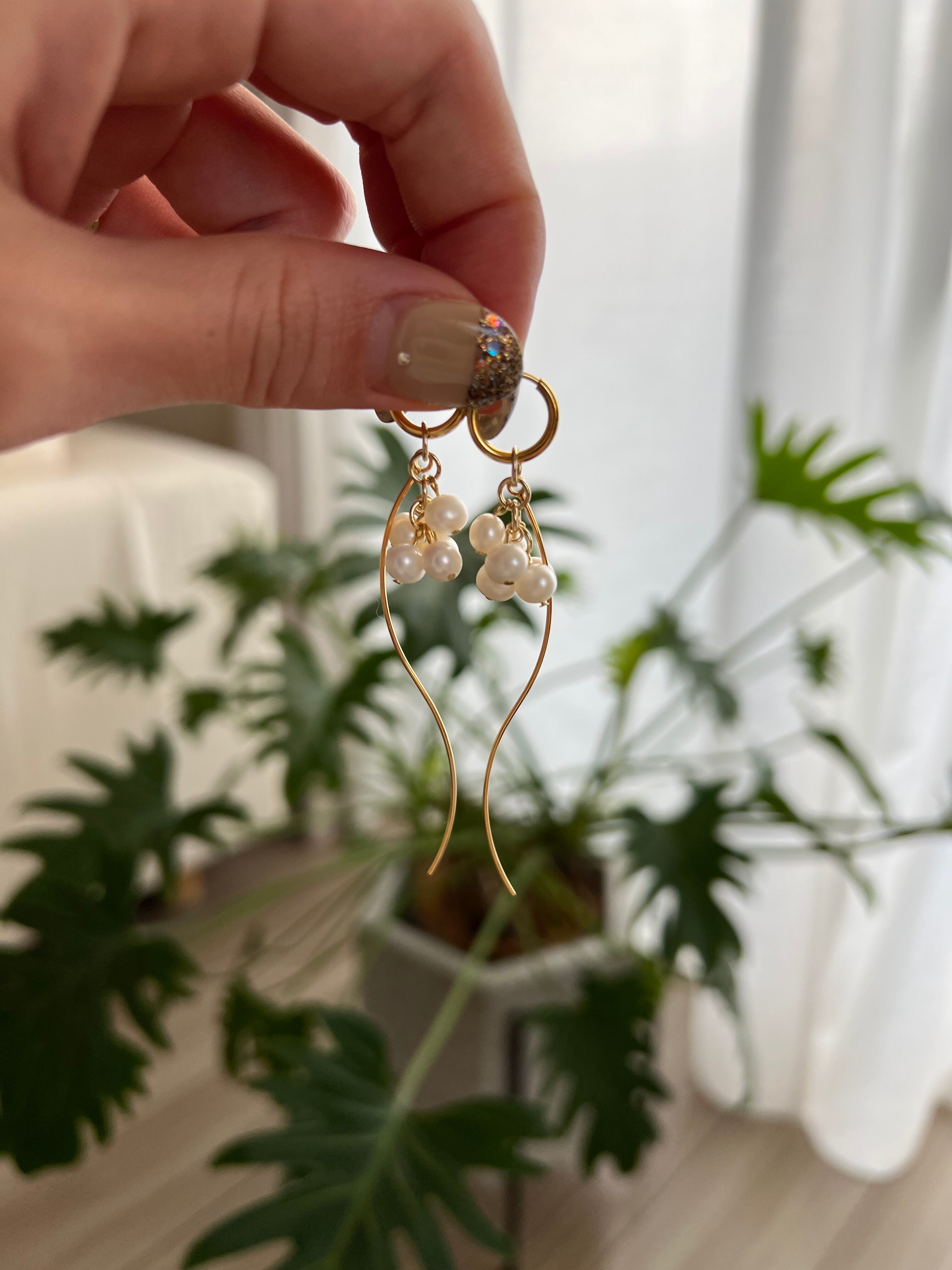 片耳に6つずつ粒淡水パールが付いていて、華やかな印象を与えてくれます。