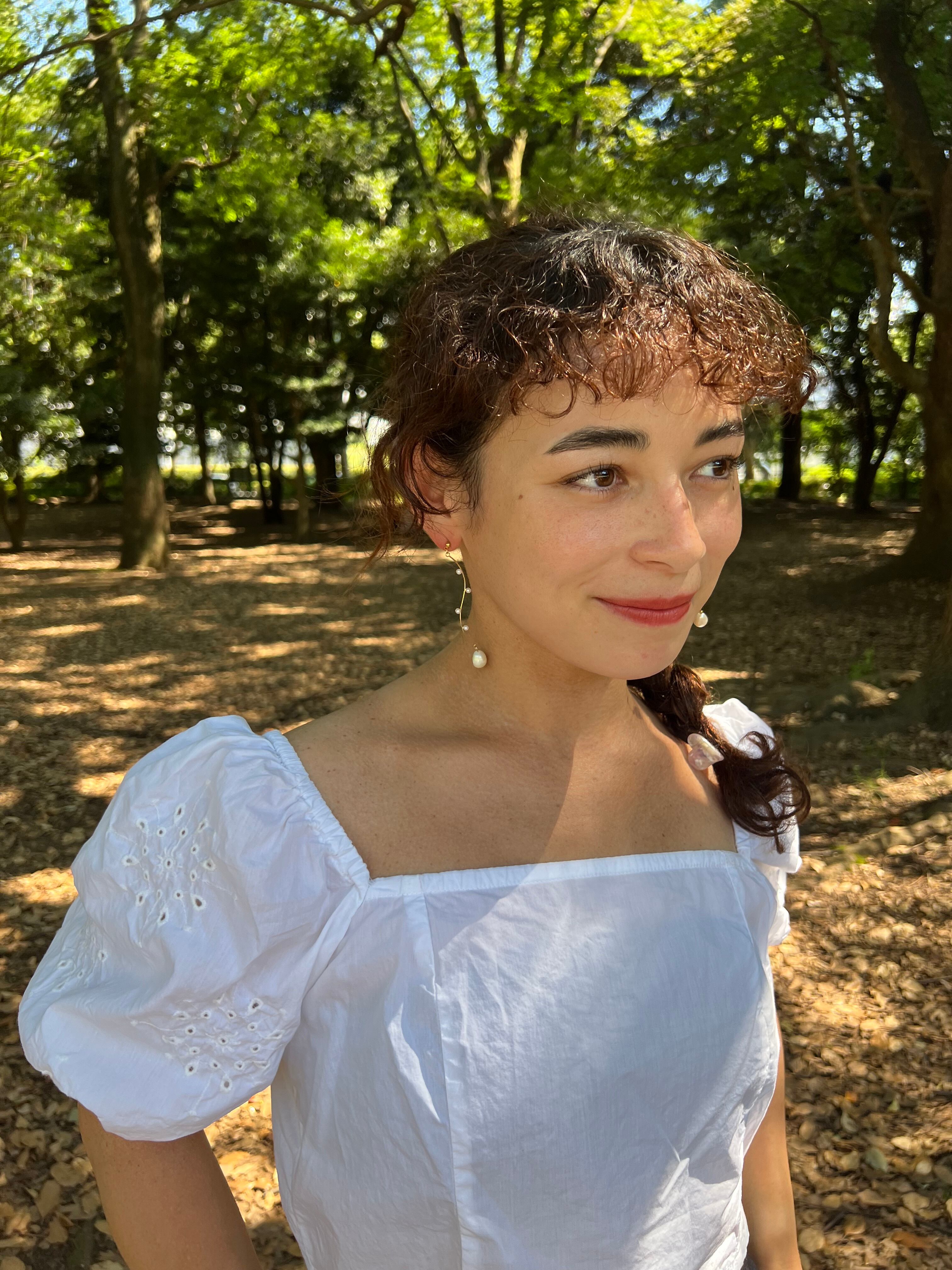髪の毛を下ろしての着用はもちろん、アップスタイルでアクセサリーを主役にするのもおすすめのコーディネートです。